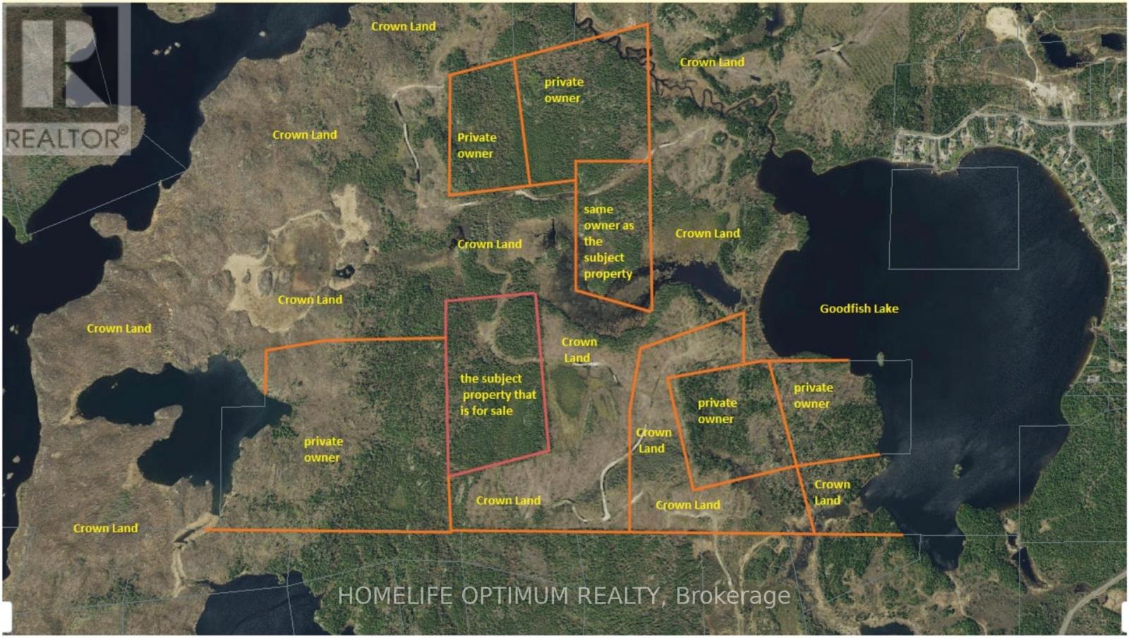 This property is located in BERNHARDT TOWNSHIP in the District of Timiskaming in NORTHEASTERN ONTARIO.Bernhardt Township is due north of the Town of Kirkland Lake.You are still quite close to town yet it seems like you are in the middle of nowhere.The property is midway between Goodfish Lake to the east and Greylava Lake to the west.Total distance from this property to The Town Of Kirkland Lake is 6.5 kilometers. Spring, Summer and Fall in northeastern Ontario are the best.Fresh air, lots of sun and long, lazy days.Especially in summer months when there is daylight up to almost 10 at night.Absolutely perfect for getting out and exploring the great outdoors.In August you should be able to see the NORTHERN LIGHTS on those clear nights. There is no access to electrical power here but you can certainly be off the grid and on solar power.If you build a cabin you can choose from wiring a cabin for a generator or for solar power or for wind power or a combination of all or some of these.You can also have propane lights and propane stove and fridge.We are told that the cell service is quite good on this property. SURFACE RIGHTS, MINERAL RIGHT COME WITH THIS PROPERTYALL TREES are reserved to the CROWN (id:64974)
