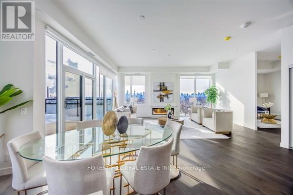Elevated living at the iconic Queen & Ashbridge Condos. This exceptional penthouse is a true trophy asset, offering a rare 3-bedroom plus den layout with soaring ceilings, expansive living spaces, and two private terraces showcasing breathtaking panoramic views of Lake Ontario and the downtown skyline.Flooded with natural light through floor-to-ceiling windows, the open-concept living and dining areas flow seamlessly outdoors creating the perfect setting for entertaining or relaxing above the city. Upgraded Miele appliances, a spa-like primary ensuite, separate his & hers walk in closets, a versatile den ideal for a home office, and premium finishes throughout complete this unique home in the sky.Includes two parking spaces and two lockers for added convenience and storage.Residents enjoy access to world-class, five-star amenities including a state-of-the-art 5,000 sqft fitness centre, yoga and spin studios, steam rooms, rooftop Sky Club with lounge and terrace, co-working and meeting spaces, multiple guest suites, bike storage, land scapped courtyard gardens and outdoor BBQ areas.Just steps to the beach, boardwalk, Ashbridges Bay, Queen Street East shops and cafés, and convenient transit at your doorstep, this is penthouse condo living at its finest! (id:64974)