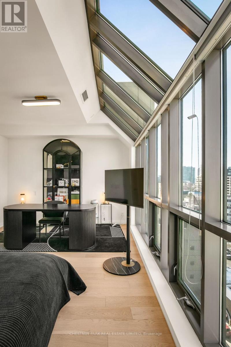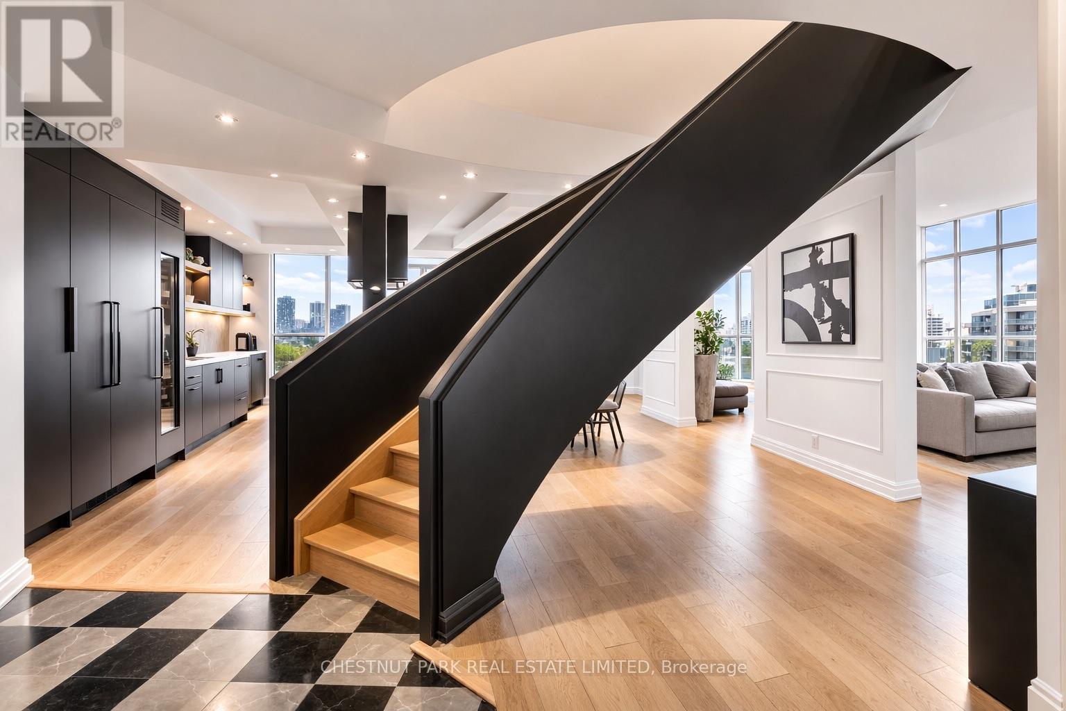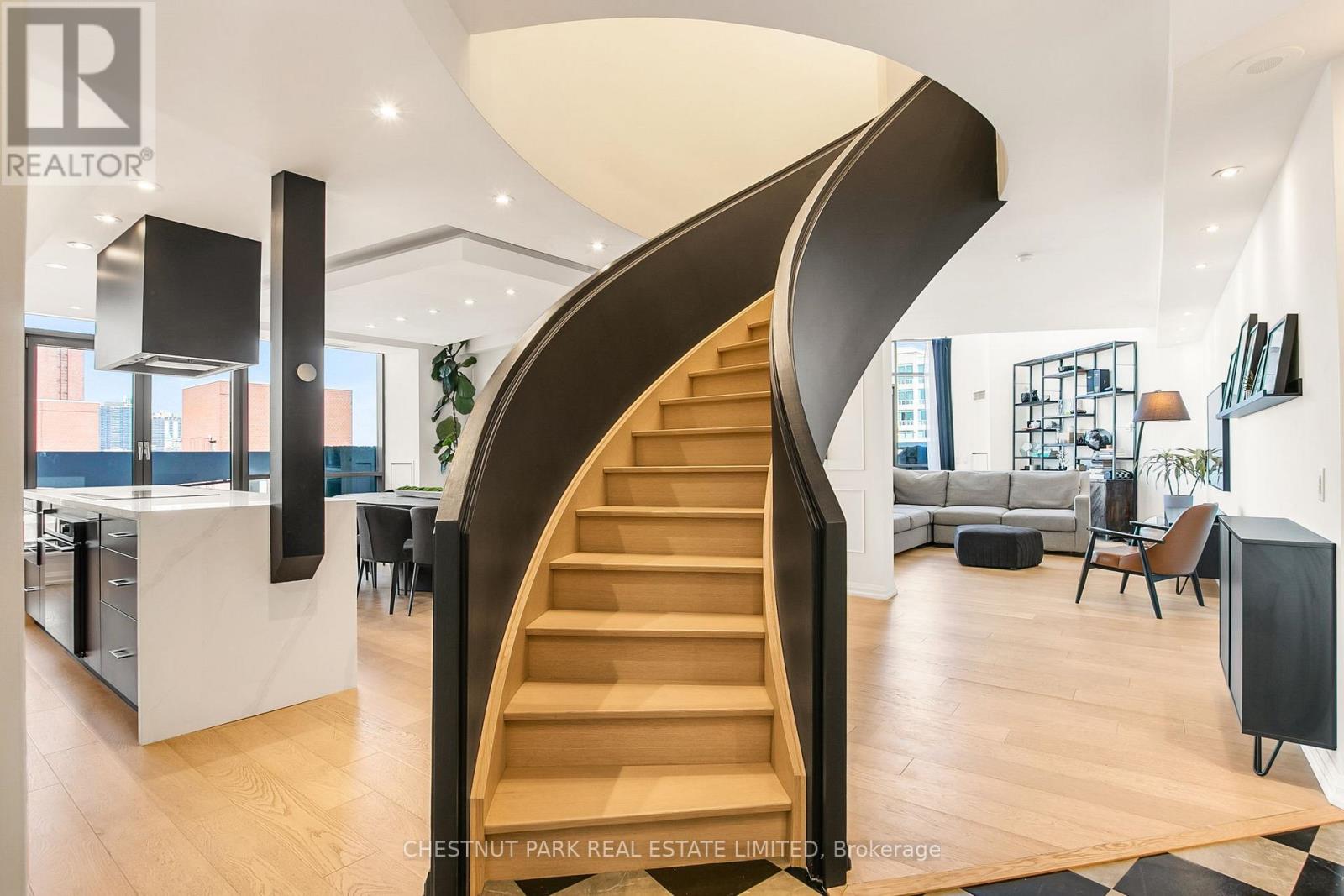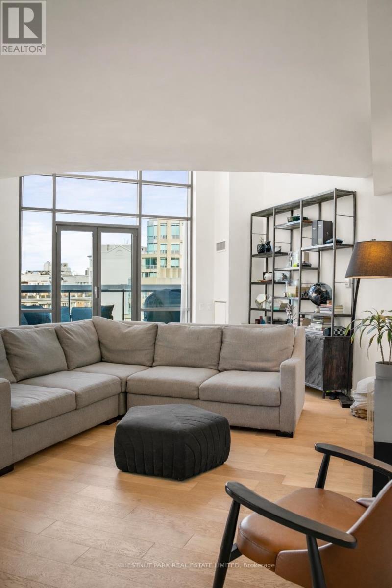 Experience luxury in this exceptionally renovated penthouse, exquisitely reimagined to evoke the refined elegance & glamour of a Manhattan home in the sky. Nestled in Yorkville -Toronto's most coveted enclave of high-end fashion &world-class dining, this prestigious suite offers an elevated urban lifestyle. Thoughtfully re-designed with an emphasis on space, light & premium materials, this expansive 2-storey penthouse with 3 bedrooms & 3 renovated bathrooms, impresses with 2,256 sq ft of sophisticated interior living space. Enter through a gracious foyer into a luminous interior where an architectural staircase makes a statement & abundant natural light create an atmosphere of calm & grandeur. Wide plank 6.5" white oak engineered hardwood floors extend throughout, enhanced by dramatic arched & floor-to-ceiling windows that frame the city skyline. The designer kitchen features Caesarstone counters, a micro cement concrete finished backsplash, top-tier appliances (Liebherr, Gaggenau & Fisher & Paykel) & custom cabinetry tailored for both culinary passion & curated entertaining. Elegant transitions between spaces make every corner feel intentional & luxurious. The family room has dramatic double height 18'6" ft ceilings, a walkout to the terrace & a separate space that could be partitioned off to create a main floor office. Upstairs, a generous primary suite features wrap-around windows, 2 walk-in closets & an oversized spa-like bathroom with a soaker tub, double vanities & a custom glass shower ensuring comfort without compromise. 2 additional bedrooms & a renovated 3 pc bathroom complete the 2nd floor. Step onto your private balconies -these outdoor living spaces provide the perfect backdrop for morning coffee or evening soirées. With 2 parking spots, a locker, & access to building amenities, this residence is an exceptional opportunity for the discerning buyer seeking turnkey elegance, architectural character & the unmistakable feel of a penthouse in the sky. (id:64974)