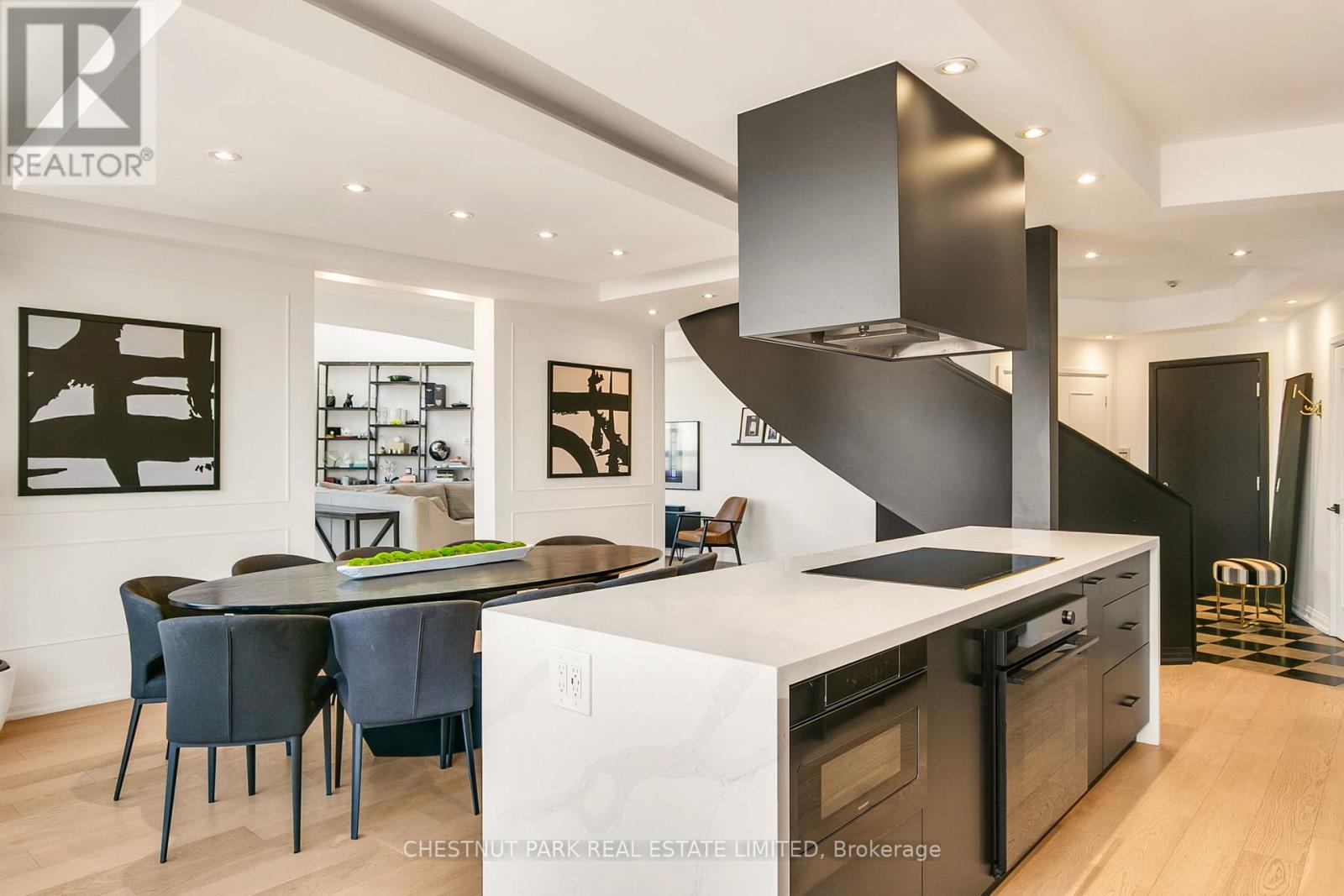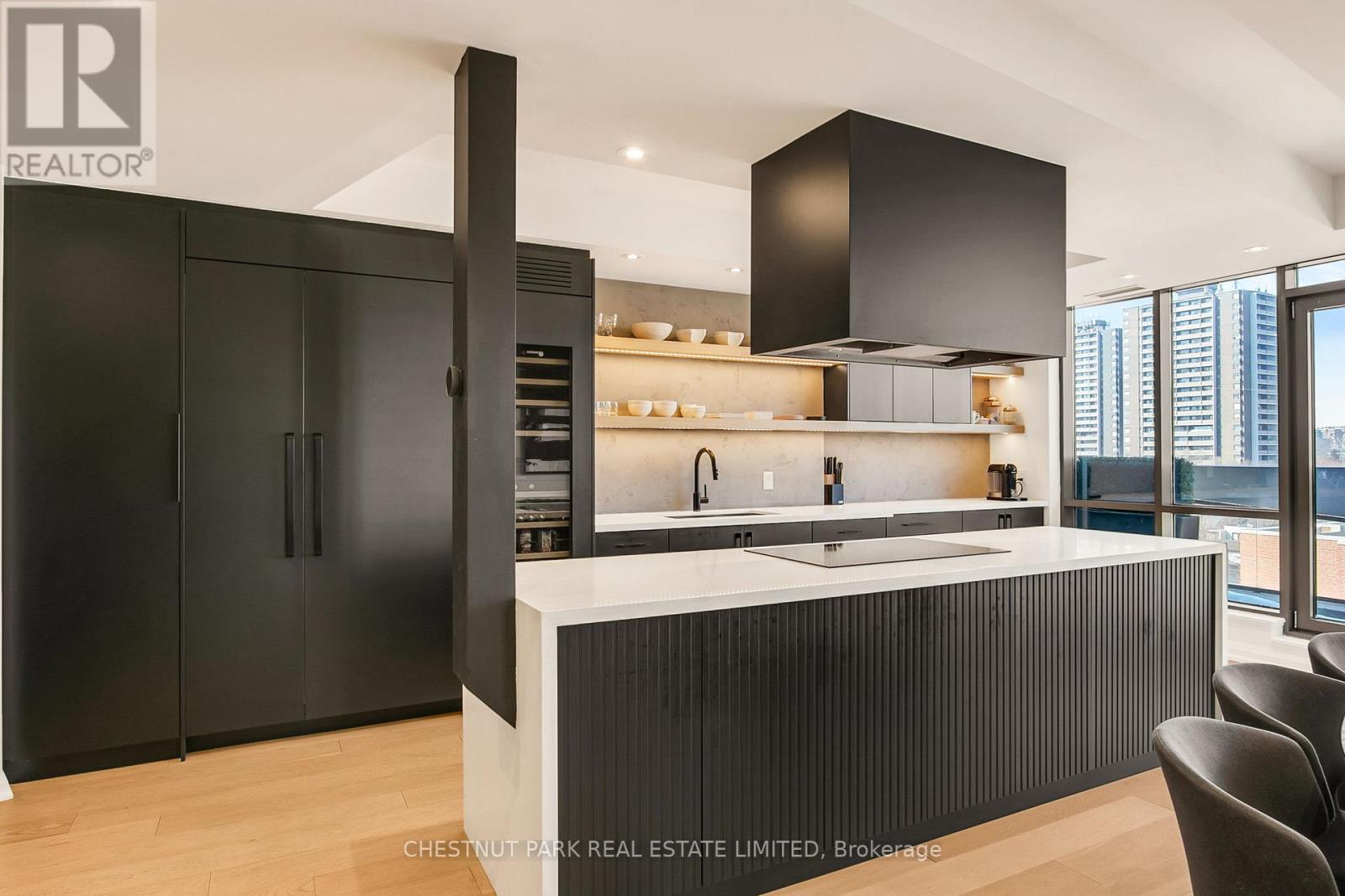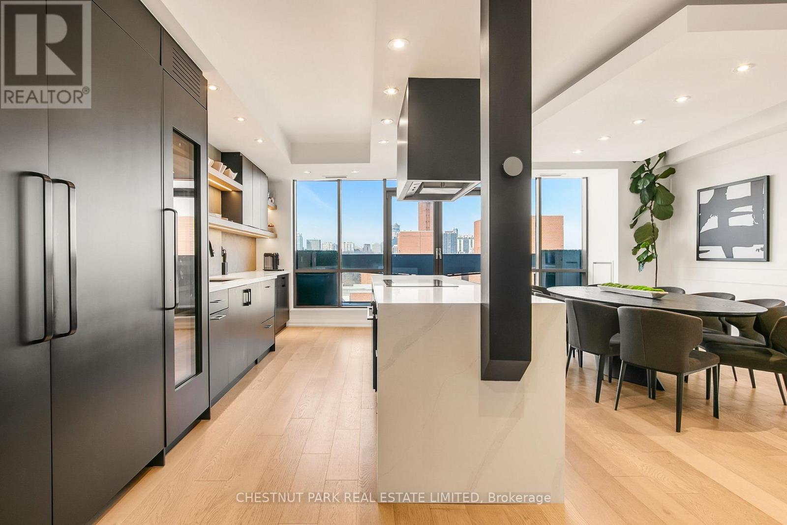 Experience luxury in this exceptionally renovated penthouse, exquisitely reimagined to evoke the refined elegance & glamour of a Manhattan home in the sky. Nestled in Yorkville -Toronto's most coveted enclave of high-end fashion &world-class dining, this prestigious suite offers an elevated urban lifestyle. Thoughtfully re-designed with an emphasis on space, light & premium materials, this expansive 2-storey penthouse with 3 bedrooms & 3 renovated bathrooms, impresses with 2,256 sq ft of sophisticated interior living space. Enter through a gracious foyer into a luminous interior where an architectural staircase makes a statement & abundant natural light create an atmosphere of calm & grandeur. Wide plank 6.5" white oak engineered hardwood floors extend throughout, enhanced by dramatic arched & floor-to-ceiling windows that frame the city skyline. The designer kitchen features Caesarstone counters, a micro cement concrete finished backsplash, top-tier appliances (Liebherr, Gaggenau & Fisher & Paykel) & custom cabinetry tailored for both culinary passion & curated entertaining. Elegant transitions between spaces make every corner feel intentional & luxurious. The family room has dramatic double height 18'6" ft ceilings, a walkout to the terrace & a separate space that could be partitioned off to create a main floor office. Upstairs, a generous primary suite features wrap-around windows, 2 walk-in closets & an oversized spa-like bathroom with a soaker tub, double vanities & a custom glass shower ensuring comfort without compromise. 2 additional bedrooms & a renovated 3 pc bathroom complete the 2nd floor. Step onto your private balconies -these outdoor living spaces provide the perfect backdrop for morning coffee or evening soirées. With 2 parking spots, a locker, & access to building amenities, this residence is an exceptional opportunity for the discerning buyer seeking turnkey elegance, architectural character & the unmistakable feel of a penthouse in the sky. (id:64974)