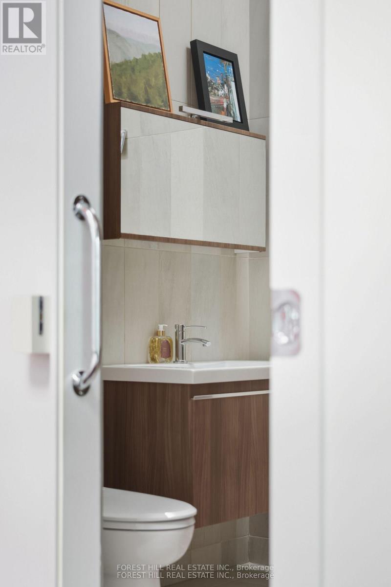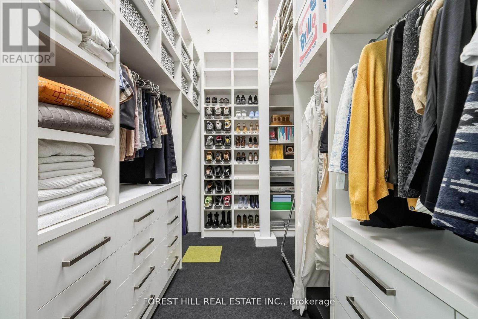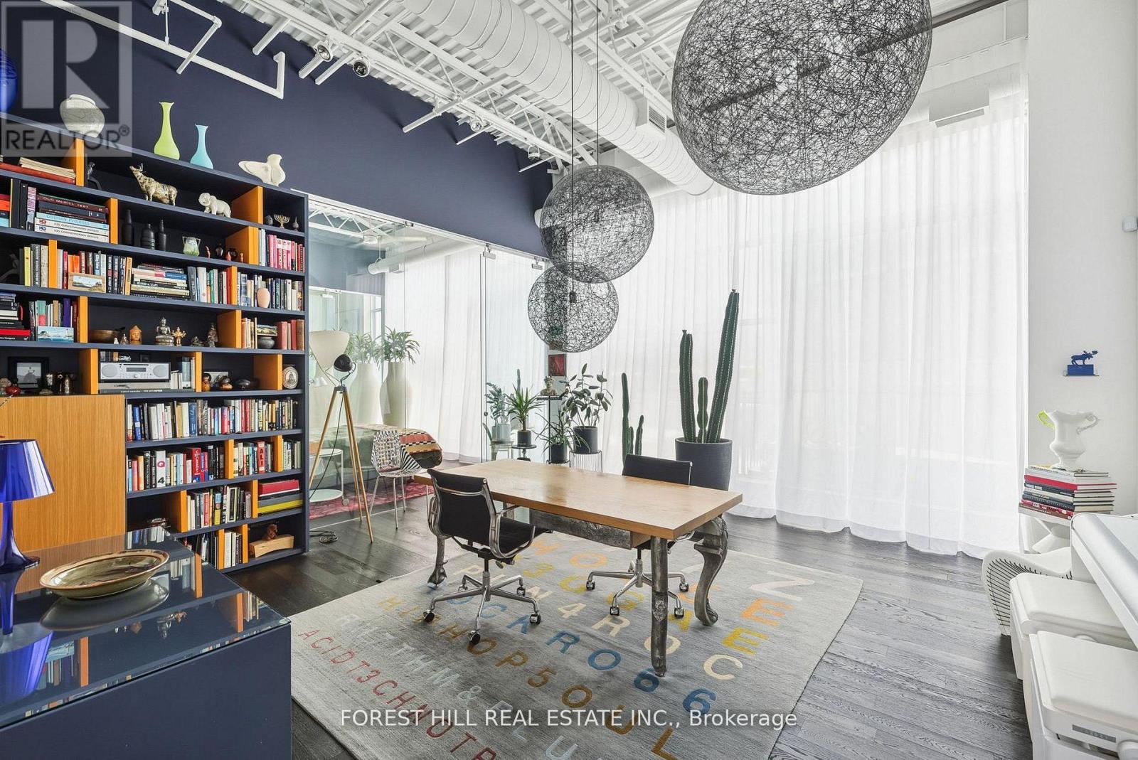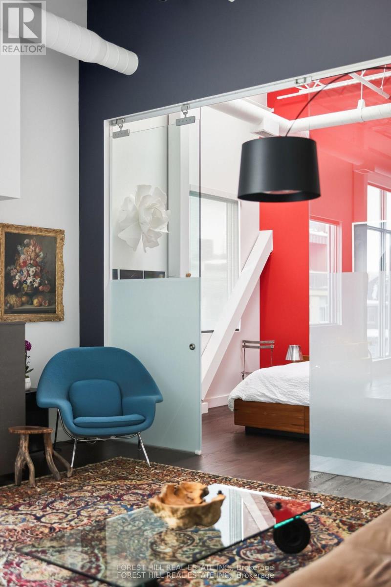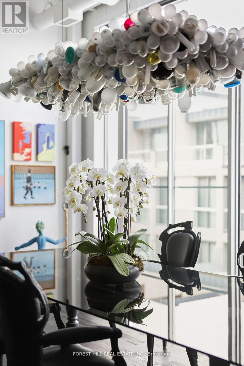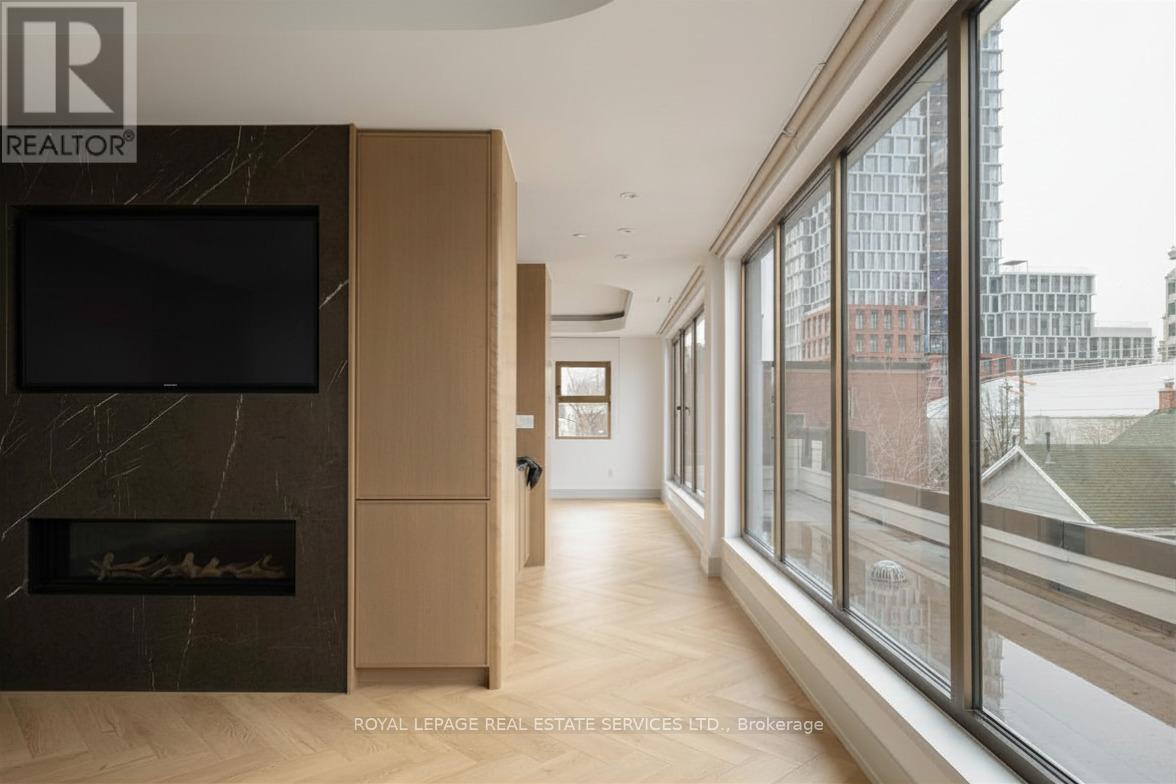 Come home to one of the city's most stunning architectural masterpieces. Set within an intimate boutique building of just seven exclusive residences, this design-driven loft offers discretion and privacy just steps from Toronto's most iconic neighborhoods, including The Annex, Yorkville, and Casa Loma.Positioned on the top floor and defined by dramatic 15-foot ceilings, this showpiece lives more like a private home than a condominium. The extraordinary space is anchored by a sleek gas fireplace and wrapped in floor-to-ceiling windows that flood the interior with natural light. Clean lines, voluminous proportions, and an effortless open-concept layout create an atmosphere that is both refined and inviting.The Schiffini chef's kitchen is contemporary and functional, featuring an oversized island with extensive integrated storage and a full suite of top-of-the-line Miele appliances. Designed for both elevated entertaining and everyday living, it seamlessly anchors the main living area.Two generously sized bedrooms each feature a private ensuite, providing rare symmetry and privacy. The primary suite is a true retreat, complete with a large walk-in closet and a spa-caliber bath featuring a deep soaker tub, steam shower, and floor-to-ceiling tile detailing. A beautifully appointed powder room adds convenience for guests.Outdoor living includes a private balcony plus two Juliet balconies, enhancing the indoor-outdoor flow and reinforcing the loft's airy, architectural presence. Professionally curated throughout, the residence perfectly blends authentic industrial character with elevated modern finishes. Two parking spaces and a large private locker complete this exceptional offering. For those with refined taste seeking a truly unique space to live and entertain, this property is a dream come true. (id:64974)