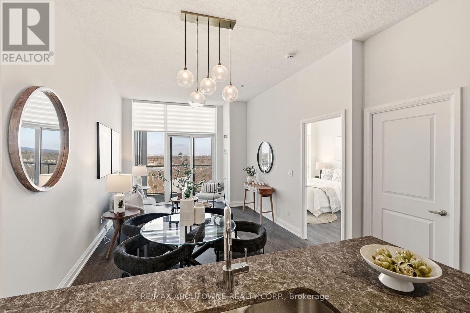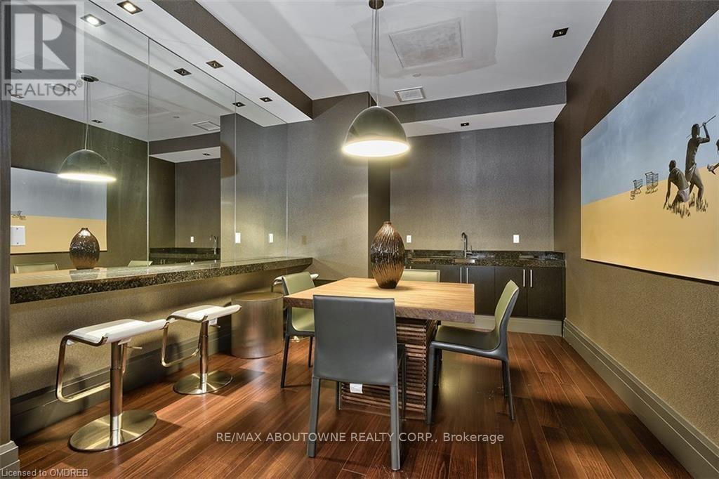 Sunny impeccable Penthouse 1 Bedroom + Den condo offering breathtaking panoramic views of the lake, 16 Mile Creek, spectacular sunrises, and Toronto skyline views on clear days. Versatile den-ideal for a home office or guest space. Exceptional building amenities include a state-of-the-art gym, yoga studio, indoor pool, hot tub, and rooftop terraces with BBQs, lounge seating, and unobstructed views. Pet-friendly building in an unbeatable location-short walk to groceries, transit, Kerr Village shops and restaurants, and only 1.4 km to the Oakville GO. Enjoy scenic biking and walking trails along 16 Mile Creek leading to Oakville Harbour, lakefront trails, and downtown Oakville. Lake views, lifestyle, and location-this one has it all. (id:64974)