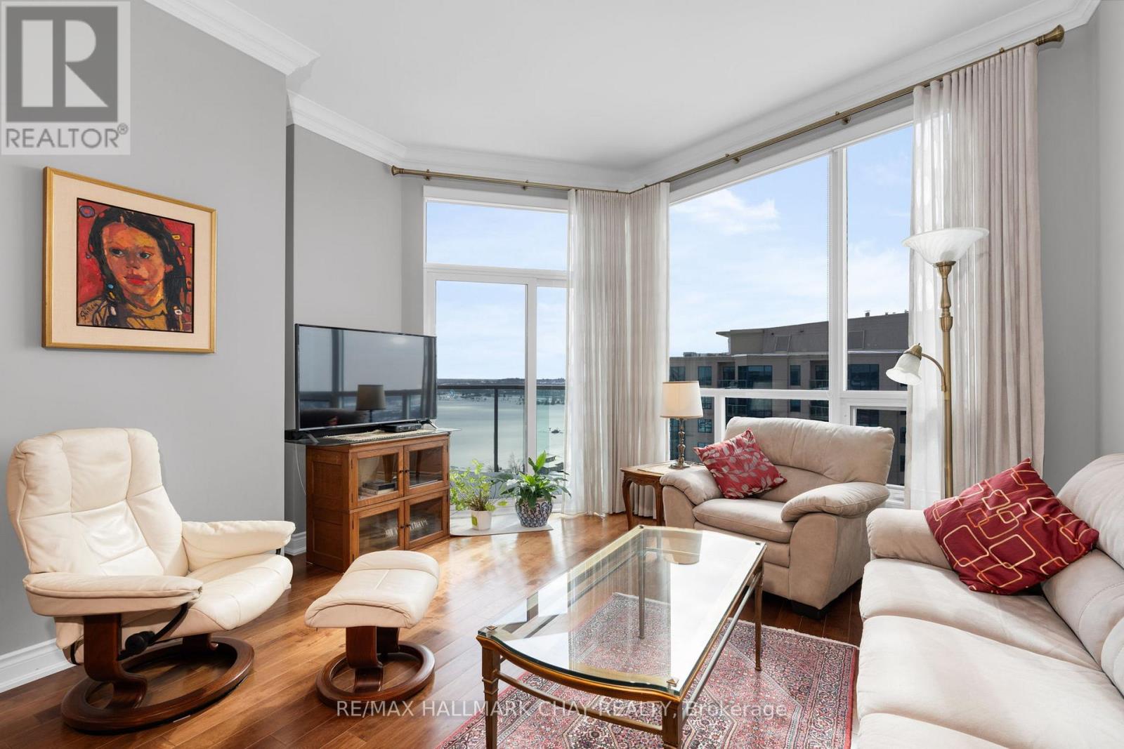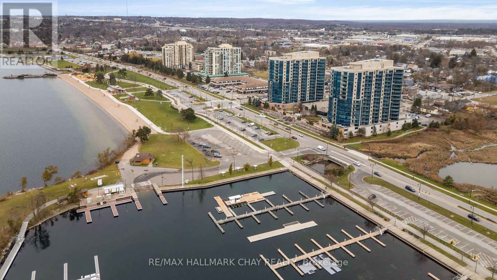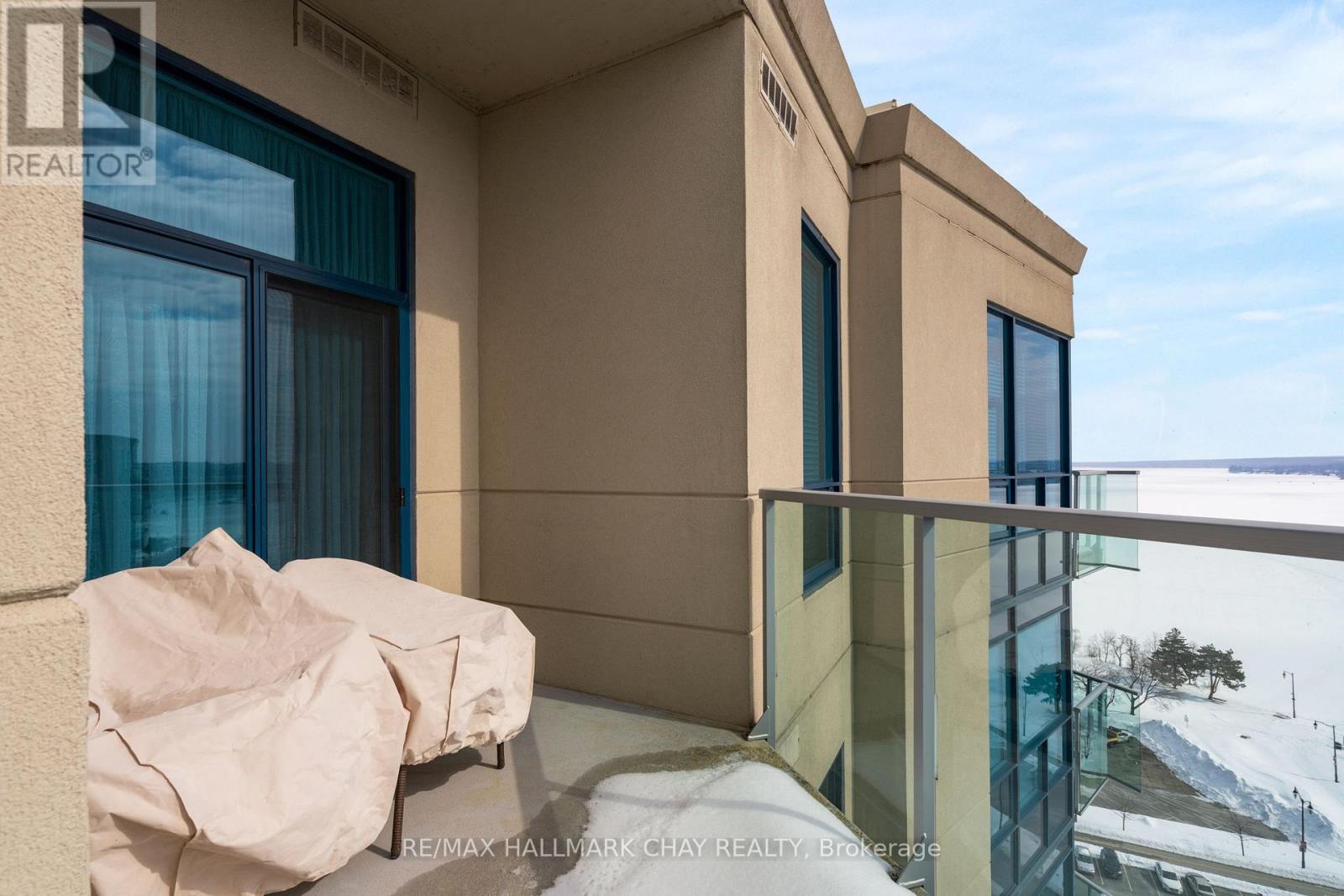 PRESENTING 33 Ellen Street - Penthouse Eight at Nautica Condominiums. This condo suite is a must see - not your average condo layout, and never before offered for sale! Welcome to one of the most highly sought-after condo floor plans in Barrie - 1,381 sq.ft. of functional living space offering 10' ceilings - two bedrooms + den, two baths, ensuite laundry - stunning views from large floor to ceiling windows! Downsizing from a home to a condo? This Bermuda model offers you the space you need, without the extra maintenance and chores of a larger home. This hotel-inspired condo community comprised of 33 Ellen Street and 37 Ellen Street is situated on the shore of Lake Simcoe's Kempenfelt Bay, with this penthouse unit facing south-east - enjoy your morning coffee and daily sunrises on your private open balcony. The Nautica condo community is an established site with many exceptional amenities. You will find timeless architectural details, and tasteful neutral decor throughout the phenomenal common areas at Nautica, as well as well-equipped spaces to enjoy like the stunning party room, well-appointed gym/exercise room, indoor pool with hot tub, sauna and change rooms, a shared library / resource centre, games room and outdoor meeting spaces for gathering al fresco with friends and family. Convenience of two guest suites and visitor parking. Step outdoors to the boardwalk at Centennial Beach, and the Simcoe Country trails for hiking, biking, walking. A few steps more takes you to Barrie's vibrant Downtown sector with many casual and fine dining options, entertainment, local shops and services. Barrie has all that and more - libraries, rec centres, RVH healthcare centre, and an abundance of municipal services. Easy access to key commuter routes - public transit, GO Train/Bus service, highways north to cottage country or south to the GTA and beyond. One parking space is included with this condo unit. Second parking space is available for purchase. (id:64974)