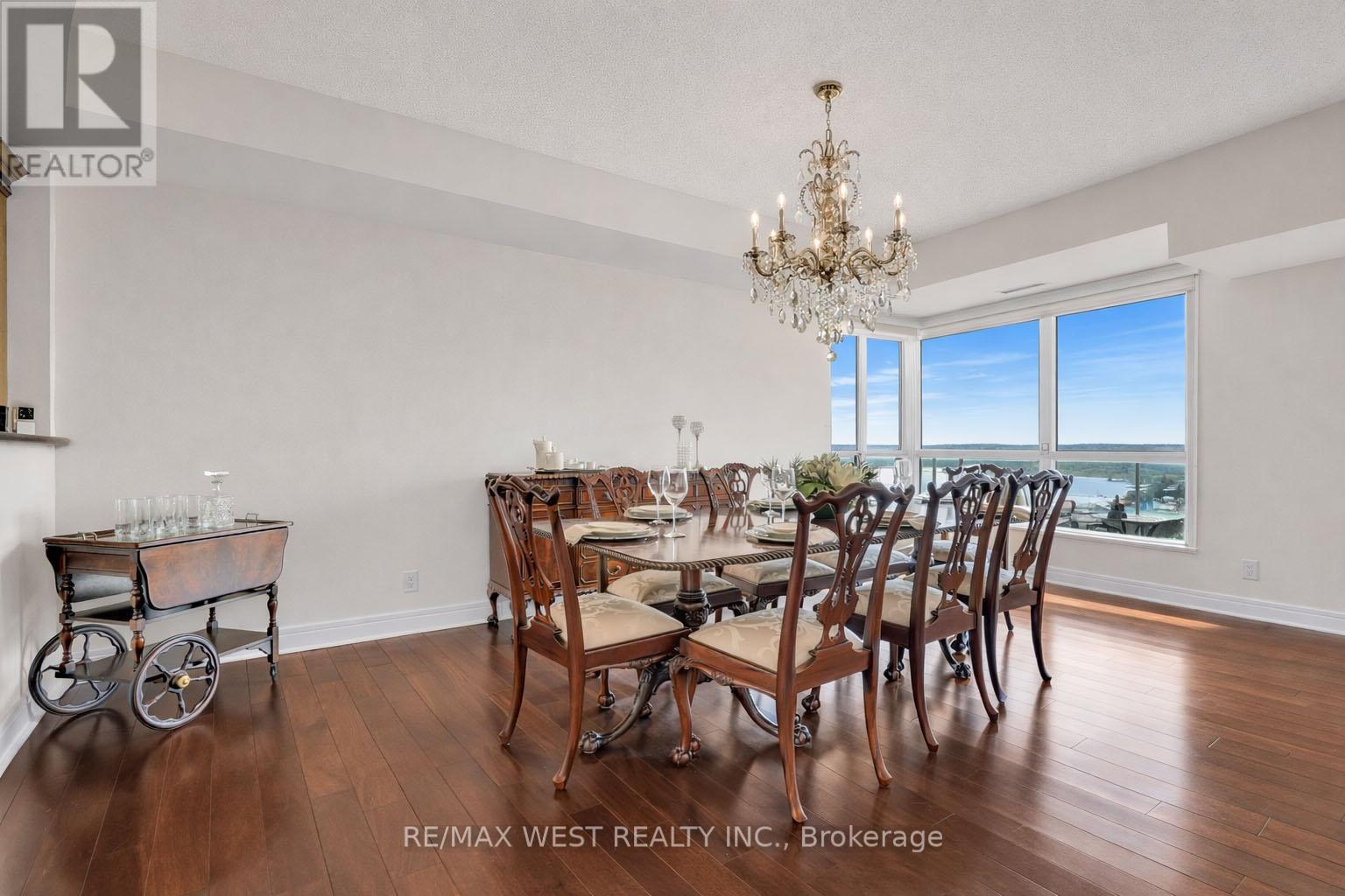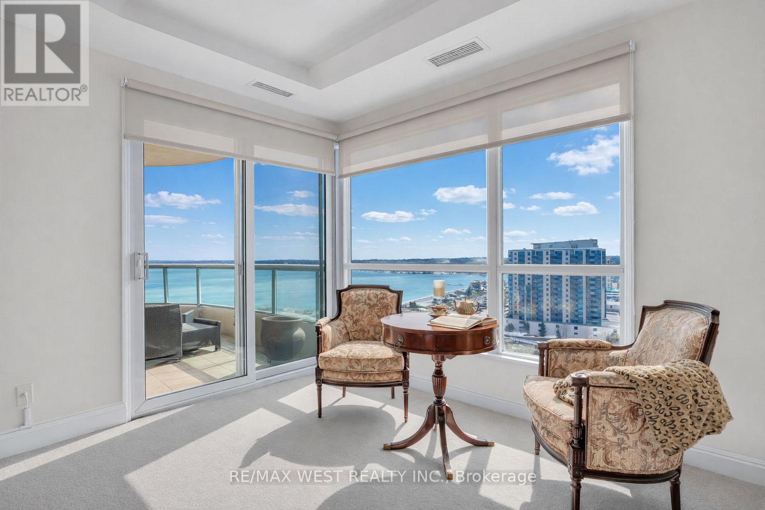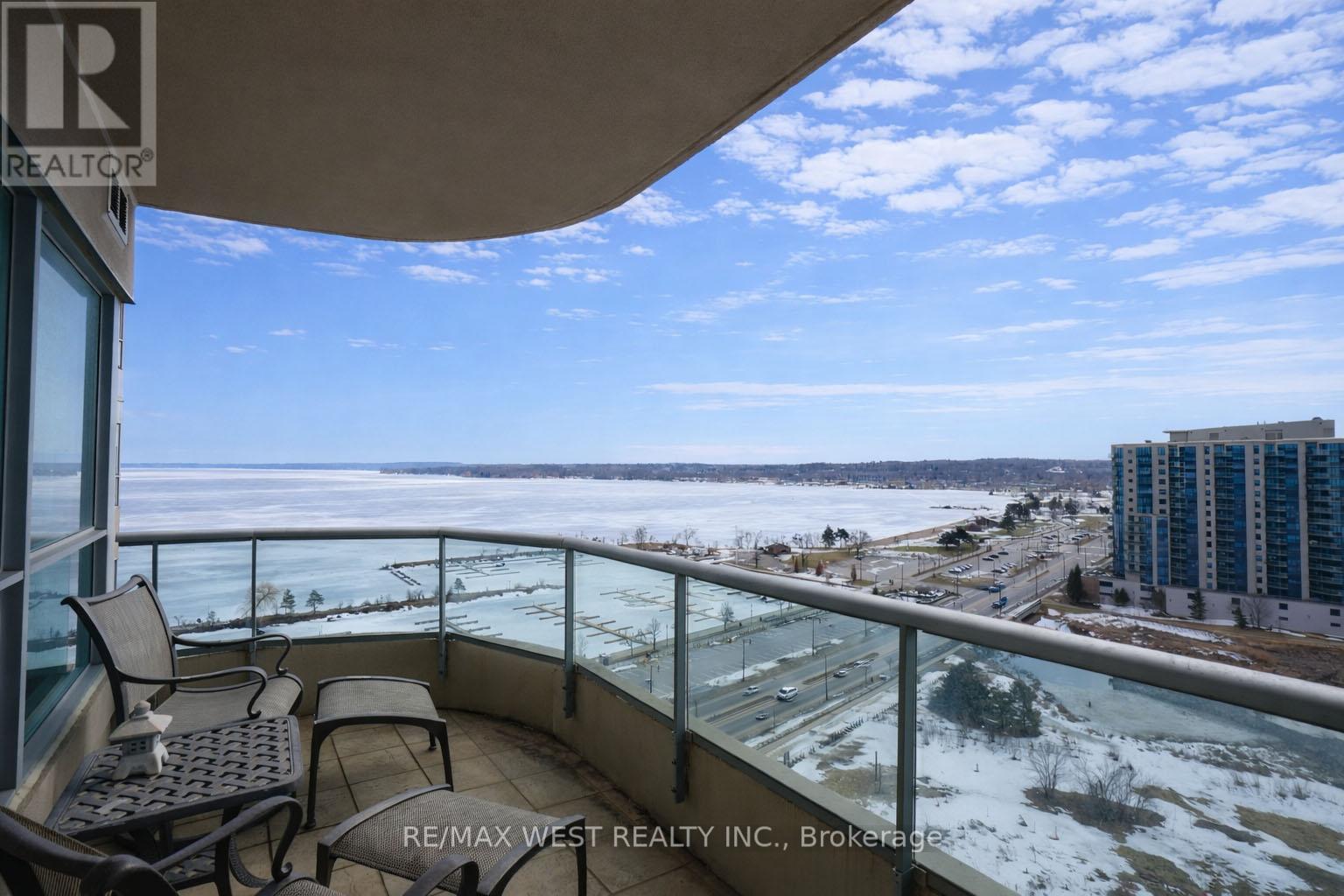 Experience penthouse living on Barrie's spectacular waterfront. Welcome to the Crown Jewel of Grand Harbour - a rare 3-bedroom, 2-bathroom penthouse residence offering breathtaking, unobstructed views of Kempenfelt Bay. Perched high above the bay, this exceptional suite is filled with natural light through expansive walls of windows that beautifully frame sweeping views across Kempenfelt Bay and the surrounding shoreline. The open-concept layout blends refined elegance with everyday comfort, creating an inviting space ideal for both entertaining and relaxing while taking in the stunning waterfront scenery. Two private balconies provide the perfect setting for sunrise coffees or evening sunsets over the bay. The spacious primary retreat features its own private balcony, walk-in closet, and spa-inspired ensuite - creating a serene sanctuary above the city. Additional features of this exceptional residence include two premium parking spaces, a large private storage unit, and access to outstanding building amenities. Ideally located just steps from Barrie's vibrant downtown, marina, waterfront trails, restaurants, and shops, this residence offers the very best of luxury waterfront living. A truly rare penthouse opportunity. (id:64974)