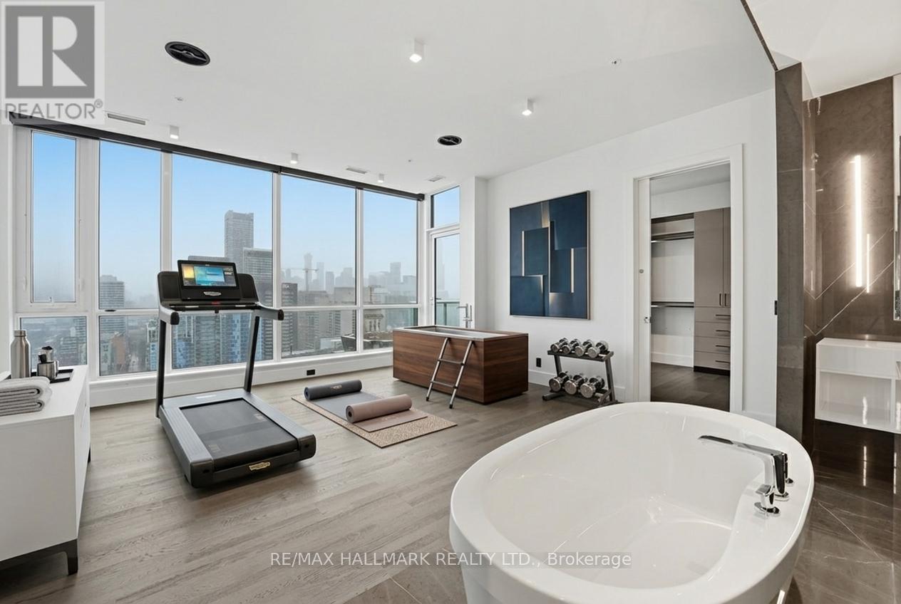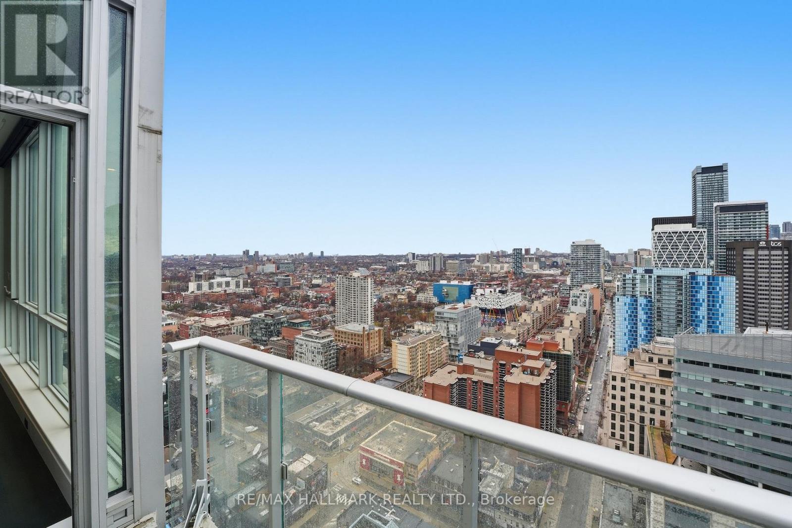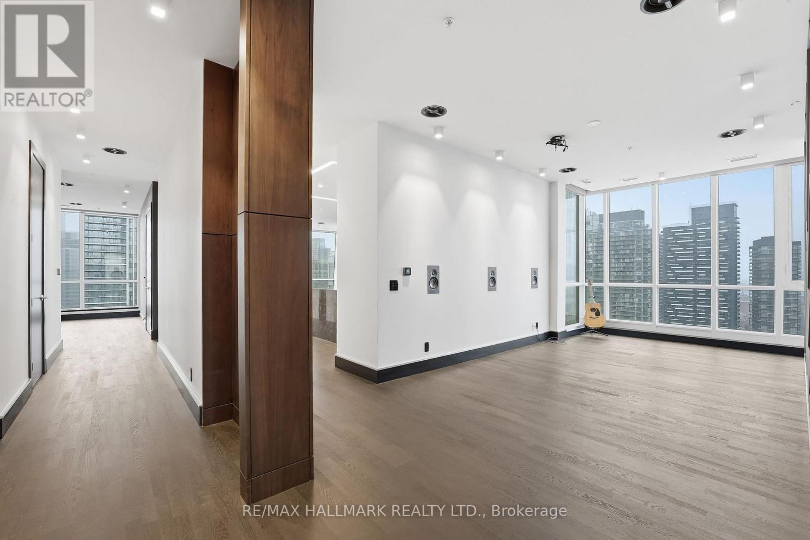 Penthouse 01 at 199 Richmond presents a rare opportunity to own one of only two penthouse residences in this exceptionally well-positioned building within the heart of the entertainment district. This three-bedroom, three-bathroom suite offers a refined layout with thoughtful upgrades throughout, combining clean contemporary design with elevated materials and finishes. The custom kitchen is designed for both function and presentation, featuring built-in Miele appliances, a waterfall island, and a combination of Caesarstone, granite, and quartz surfaces, all anchored within open-concept living and dining spaces that frame expansive city views. The primary suite is positioned as a private retreat, offering generous proportions, a walk-in closet, and a well-appointed spa-inspired bathroom, complemented by a built-in bookcase that adds both character and utility. South and west exposures provide sweeping views across the lake, the Rogers Centre, and Roy Thomson Hall, bringing natural light into the suite throughout the day. Finished with engineered hardwood flooring, marble detailing, and custom vanities, this residence presents a well-executed penthouse opportunity with direct access to the city's dining, cultural, and entertainment offerings just steps from the front door. (id:64974)