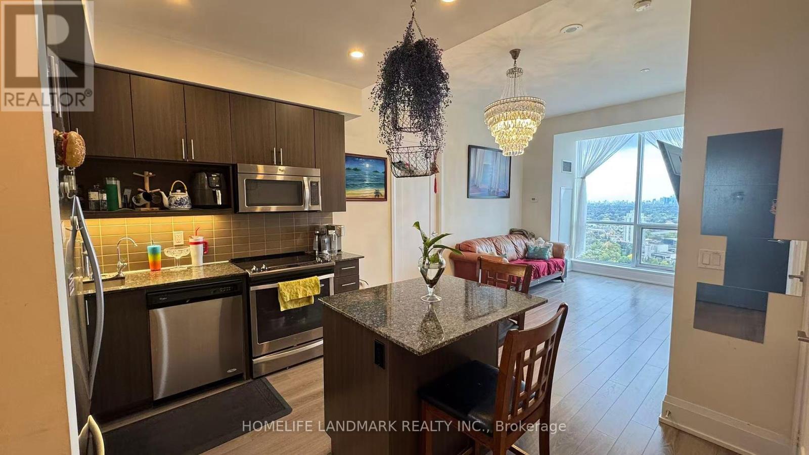 Experience Elevated Living in This Rare 2 Bed + Den Corner Penthouse at Argento by Tridel, The spacious den can be used for a bedroom. This stunning penthouse offers 12-foot ceilings and an unobstructed 180 south-facing view, creating a bright and airy atmosphere throughout. Designed with sleek, contemporary finishes, the suite features full-height kitchen cabinetry with under-cabinet lighting, a ceramic backsplash, a kitchen island with granite countertops, and a modern under-mount stainless steel sink. Premium laminate flooring flows seamlessly through the space, complementing the open-concept layout. Enjoy the convenience of easy access to major highways, top restaurants, Fairview Mall, and nearby subway and TTC stops. The building boasts first-class amenities including a 24-hour concierge, state-of-the-art fitness center, party and meeting rooms, theatre room, and visitor parking, internet is included with the building. A new laundry setup adds everyday comfort, while a premium parking space and locker on P1, steps from the elevator, provide unmatched convenience. This residence defines exceptional indoor-outdoor living one of only a few in the entire building .Located in the prestigious Graydon Hall community, minutes from the DVP, 401, 404, Don Mills subway, Fairview Mall, and scenic trails, this suite offers access to top-rated schools, lush green spaces, and world-class amenities. Welcome to elevated condo living at its finest where luxury, lifestyle, and location meet. (id:64974)