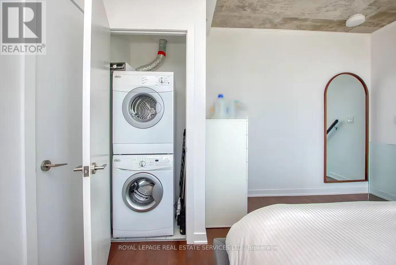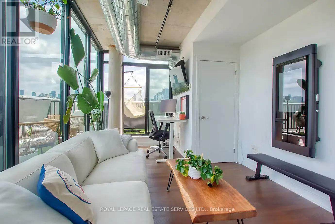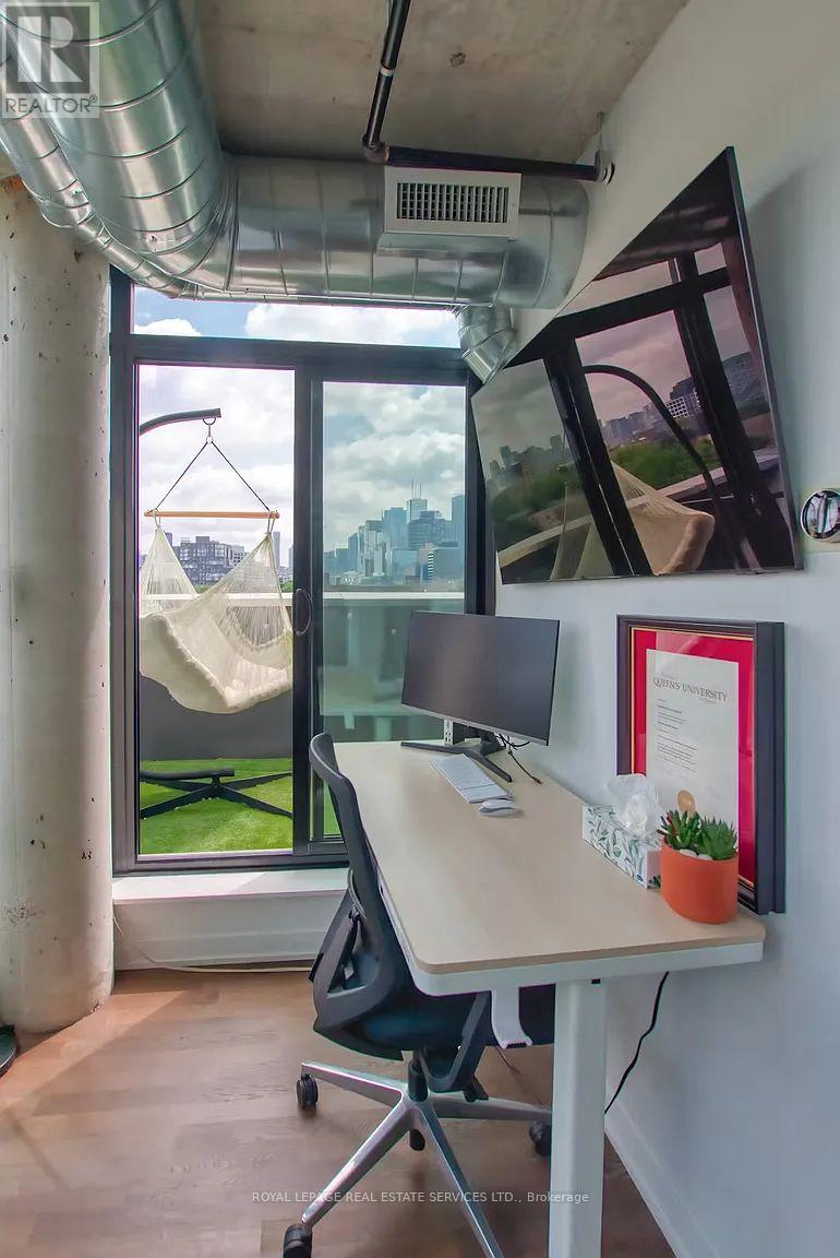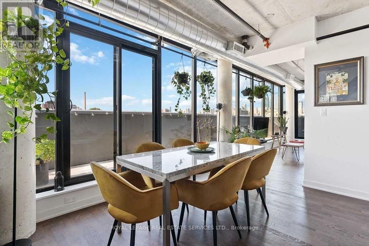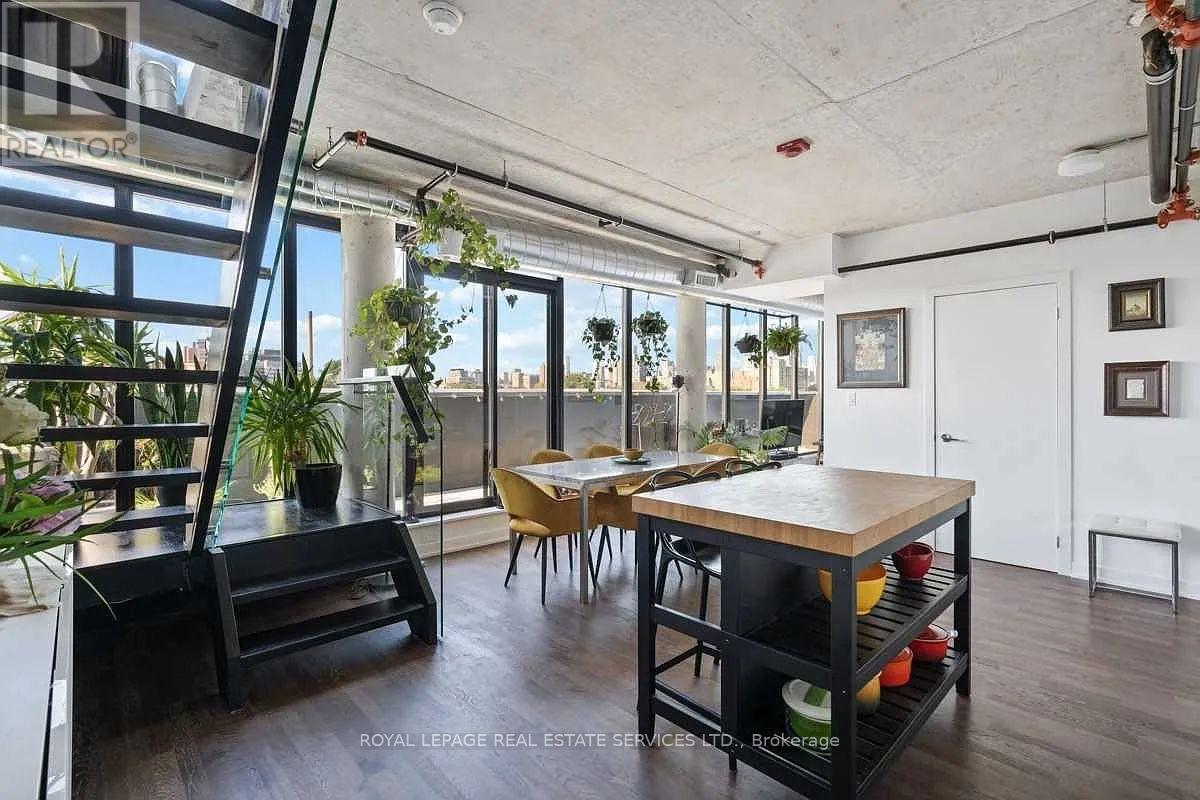 Stunning 2-Storey Penthouse Corner Unit At Origami Lofts. This Unique Unit Features 890 Interior SqFT + A 200 SqFT Wrap Around Balcony With 2 Separate Entrances. Beautiful Unobstructed East & South Views Of The City, Along With A BBQ Hookup. Stylishly Fully Furnished - With Some Flexibility. Hardwood Flooring & Concrete Ceilings Throughout. Open Concept Living/Dining Area With Updated Appliances, Walk-Out To Balcony & 2PC Powder Room. Living Area Includes Office Space & A Tonal Smart Home Gym System Integrated To The Wall With Monthly Subscription ($60/M Value) Included. Walk Up To The Upper Level Bedroom Area With Floor To Ceiling Windows, Bright East Views & Updated Automated Blinds. Convenient 3PC Ensuite, Spacious Walk-In Closet & Washer/Dryer Area. Unit Includes Garage Parking & 1 Locker. Steps To Vibrant Queen West, Public Transit, Trinity Bellwoods & Much More. (id:64974)