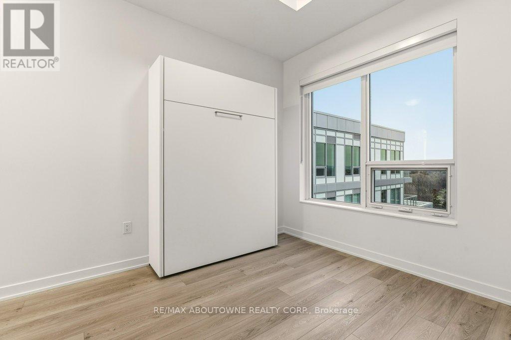 Welcome to Northshore Condos, where modern lakeside living meets refined sophistication. This stunning Penthouse Unit 3 offers a thoughtfully designed one-bedroom plus den layout with bright southern exposure and breathtaking, unobstructed views of Lake Ontario and the Burlington Golf & Country Club. Soaring 10-foot ceilings and wide-plank flooring create an airy, elegant feel throughout. The sleek kitchen features quartz countertops and integrated appliances for a seamless, contemporary look. The primary suite is enhanced with a custom Murphy bed and a beautifully upgraded 3-piece ensuite. A versatile enclosed den provides the ideal work-from-home space, with another 3-piece bathroom conveniently located nearby for guests. Residents enjoy exclusive access to the amenities, including a fitness centre, pet shower, and meeting room. Perfectly positioned just minutes from Aldershot GO Station, LaSalle Park, and the QEW, this exceptional penthouse blends urban convenience with serene natural surroundings. (id:64974)