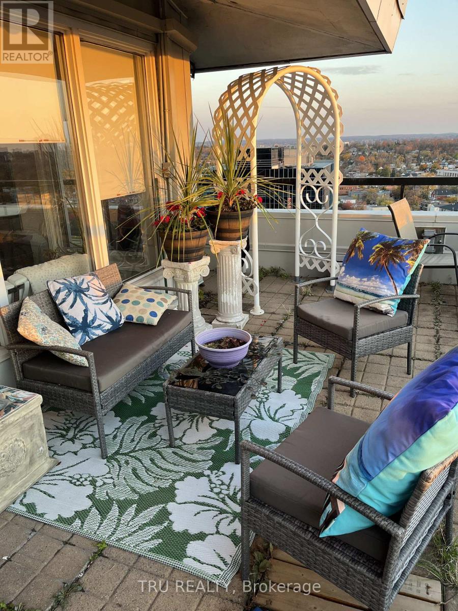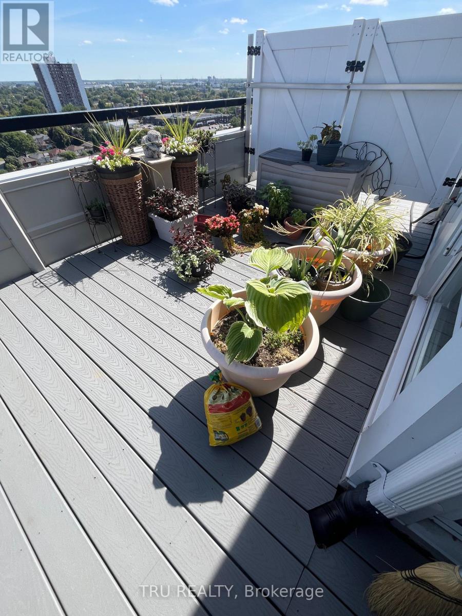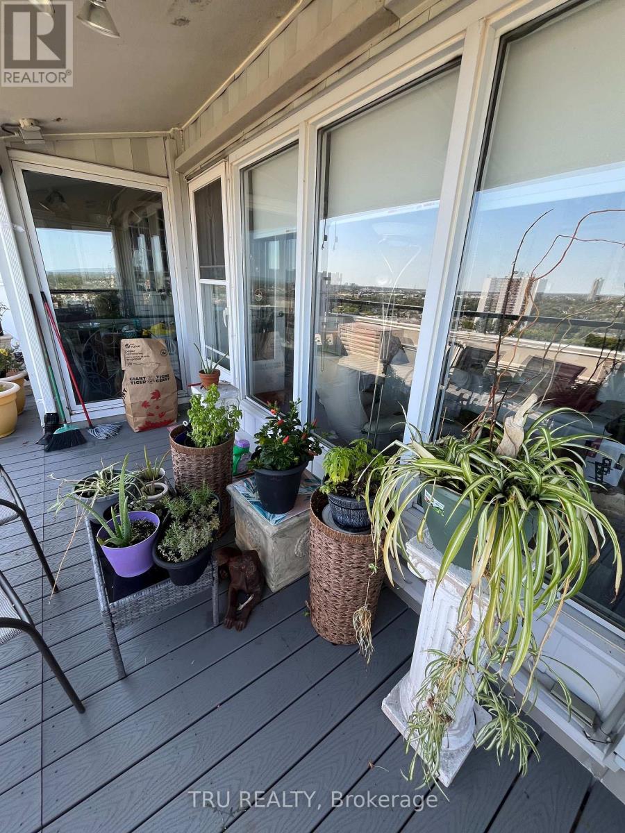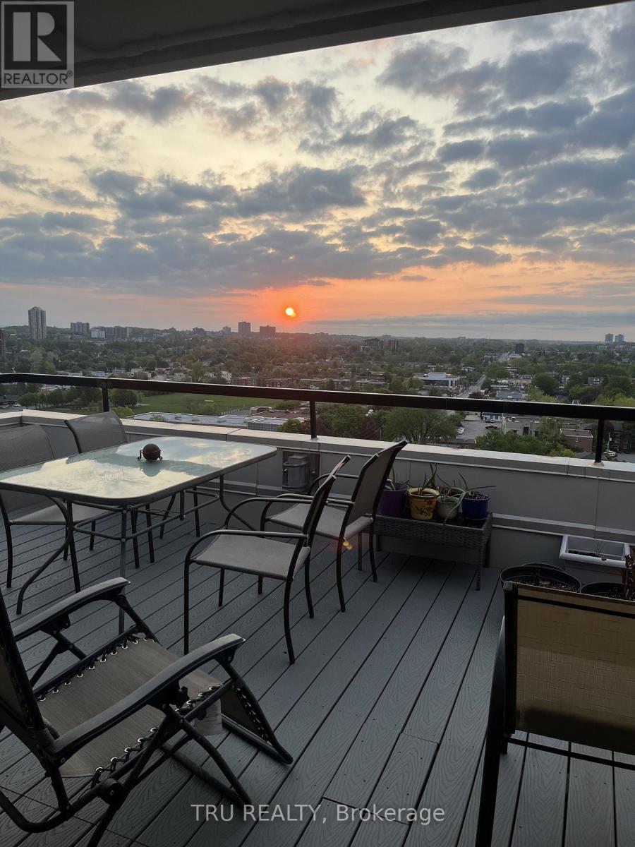 Must see - rare exceptional offering: a true 3 bedroom / 2 full bathroom penthouse in a class of its own. This pristine corner top floor suite with wrap around deck feels like a bungalow in the sky. The customized living spaces with vaulted ceilings bring drama & volume into every room. Great room design: living, dining & kitchen surrounded by windows create a fabulous entertaining space - opening onto the 400+ sq ft terrace. Calling chefs & gardeners! The custom high-quality kitchen with stainless appliances/glass backsplash is designed with pot drawers, pantry, an island, custom storage spaces & lit showcase tower. The bathrooms feature built-in storage, one with jet tub and one with shower. Main light fixtures have been upgraded to LED pot lights on dimmers. Enjoy your new HVAC mini split (b/board heat still in place). The second bedroom includes a rich built-in desk and Murphy bed, providing exceptional flexibility. Bedrooms have big closets and main closets have mirrored doors. Enjoy the seasons (new deck) from your private & partially covered terrace - dramatic sunrises & sunsets & sweeping views of the Gatineau hills, Ottawa river at St. Patrick St bridge, overlooking beautifully treed surroundings. Gardening is easy with hose hookup. This unit also has a large private locker conveniently located immediately above unit, and one underground parking space. The complex features gorgeous gardens, visitor parking; the resort lifestyle amenities include large salt water pool, sauna, gym, party/meeting rooms, library, on-site management & superintendents - plus convenience store, personal services shops such as nail, hair and barber studios, cleaning service, & computer firm. Situated within blocks of Beechwood shops, Riverain Park & Rideau River biking trails & tennis club, bridge to Sandy Hill, & across the street from Loblaws & Green Fresh with public transit at the door. Make a statement! Discover downtown living at an affordable price! (id:64974)
