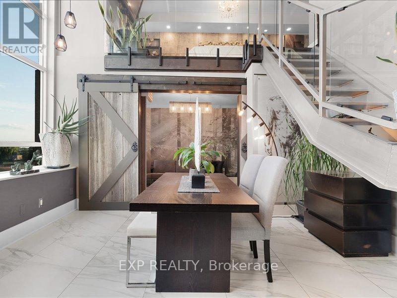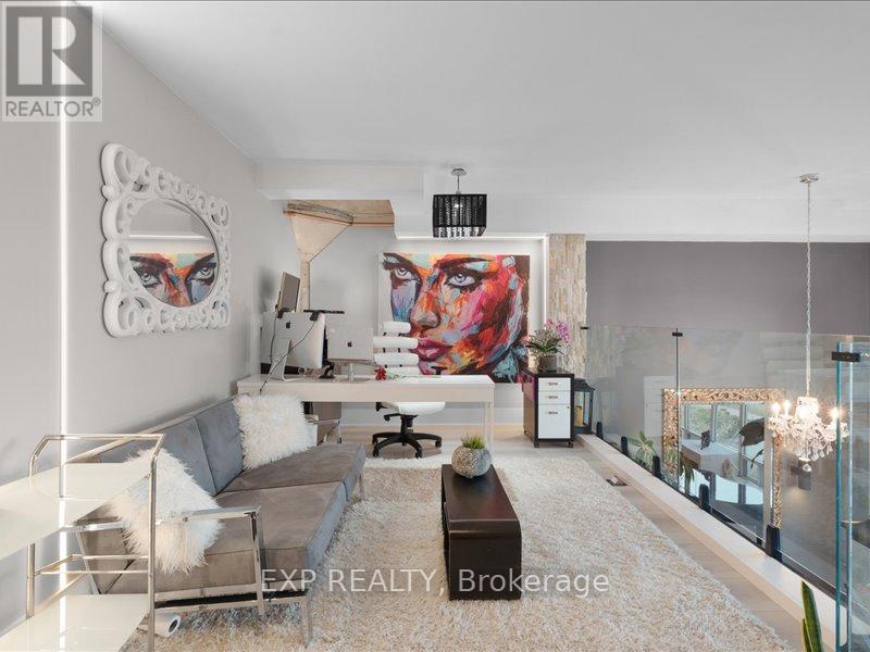 LIVE Loft Life! If you want Bold, Bright & Unique, then welcome to this really offered fully transform NYC-Style Hard Loft perched on the penthouse level of MYSTIC POINTE in Mimico. Formally the McGinness Distillery, this 2-story Penthouse w/ 17ft ceilings showpiece blends Industrial Charm w Modern Luxury offering over +1200SF of brilliantly redesigned floor plan living space. South facing Floor-Ceiling windows, & one of the only handful of Lake view units in the building. The Sun drenched space was crafted to Impress & Entertain. Professionally reimagined by an Interior Designer, it features 3 Spacious Bedrooms, 2 Spa inspired Bathrooms, Sleek Open-Riser Stairs, Dramatic Glass Railing, exposed columns and hidden Wall Lighting accents that elevate every corner. The Chefs Kitchen boast a Large eat-in-island. Newer appliances & ultramodern Ceiling lighting throughout. A massive walk-in Closet enough to support any Shoe Enthusiasts, additional large Storage, Gas Fireplace, & a Massive Ceiling Fan on Smooth 17'ceilings add to its Unique Character. Parking + Premium XL Locker both conveniently located on the same floor as unit!!! No Need to Use Elevator After A long Shopping Day! Perfect for a Style-Forward Couple or Remote Working Professionals who Value & Crave Ample Space, Light, & Bold Design Statements with Luxury in Mind. This is your Ultra Rare Opportunity to Own a True NYC Style HARD Loft with a Toronto Address. Seller is RREA. Fully Remodelled in 2025, including 1yr Furnace & AC. Seller open to VTB options with low rates. (id:64974)