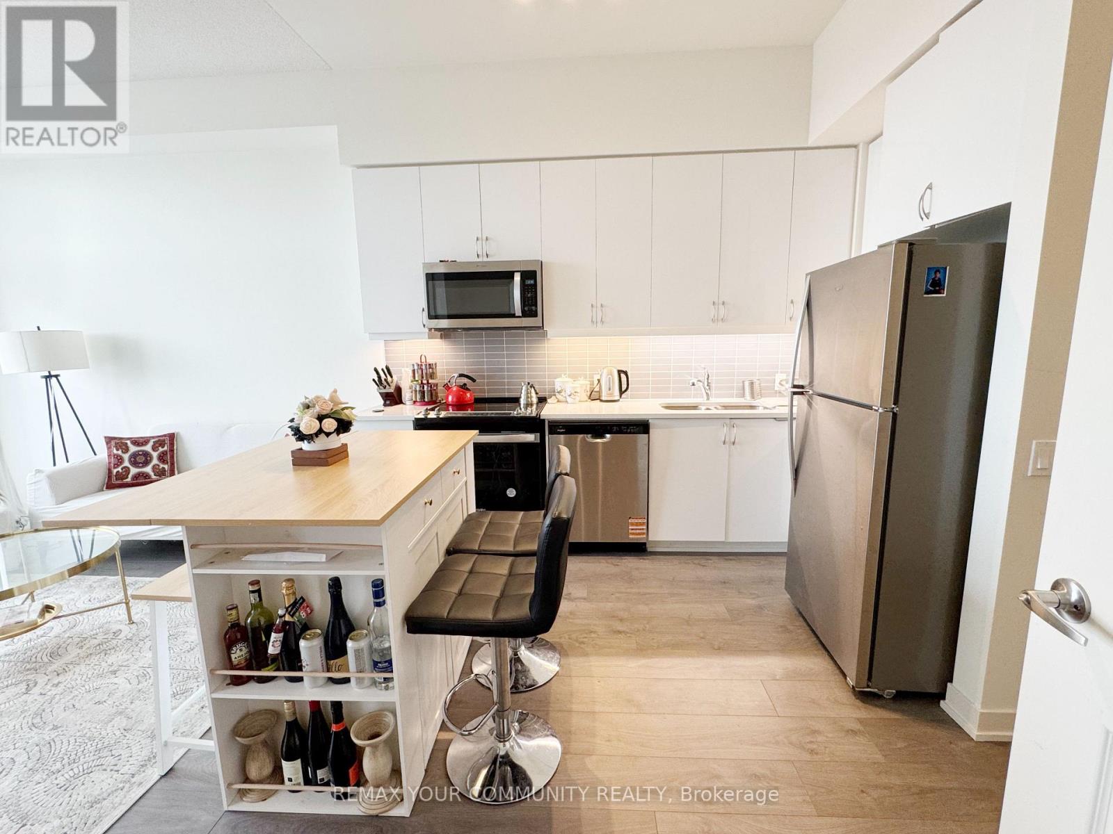 Stunning Penthouse in the Best Location!Bright and spacious 1+1 bedroom penthouse with city and lakeshore views, subway. Features an open-concept living area, balcony.just steps from the 9-foot ceilings, hardwood floors, and a large Enjoy amenities like a gym, sparkling pool, stylish party room and rooftop. conveniently located near restaurants, shopping, and parks. Includes modern stainless steel appliances, one parking spot, and a locker for extra storage. (id:64974)