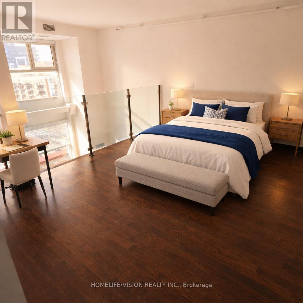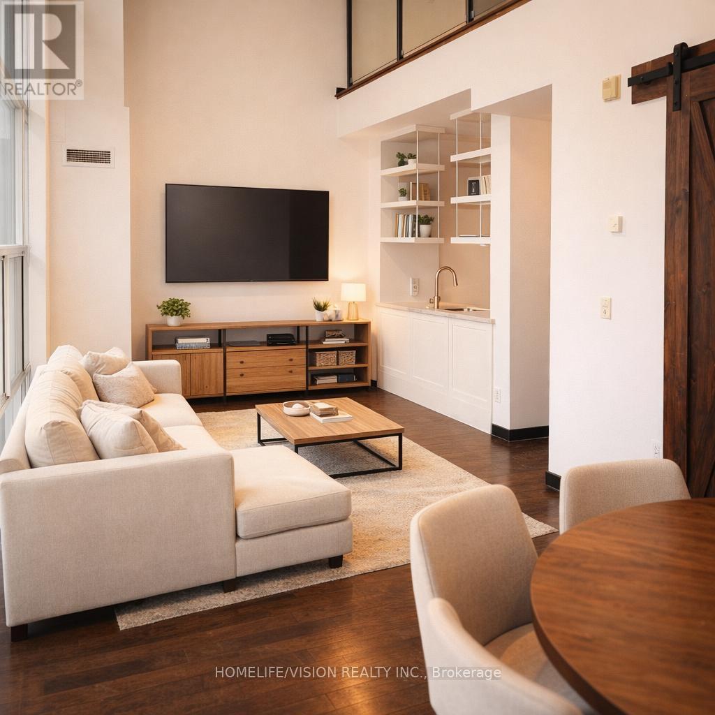Experience the Height of Urban Living in This Stunning Penthouse at the Coveted Massey Harris Lofts. This Rare Two-Storey Hard Loft Features Soaring 18-foot Ceilings and Floor-to-Ceiling Windows That Flood The Space With Natural Light. Nestled In The Heart Of The City, This Penthouse Offers A Massive West Facing Private Terrace Overlooking The Park, Hardwood Floors With Radiant Heating, Sliding Barn Doors, Custom Hardwood Staircase, 1 Bed + Den, two Full Baths and Storage Locker. The Den Can Be Used for Guests/Office/Nursery. Spacious Master With Separate Bathtub And Glass Shower. Parking is Located at 100 Strachan Ave. Some Images Virtually Staged. (id:64974)