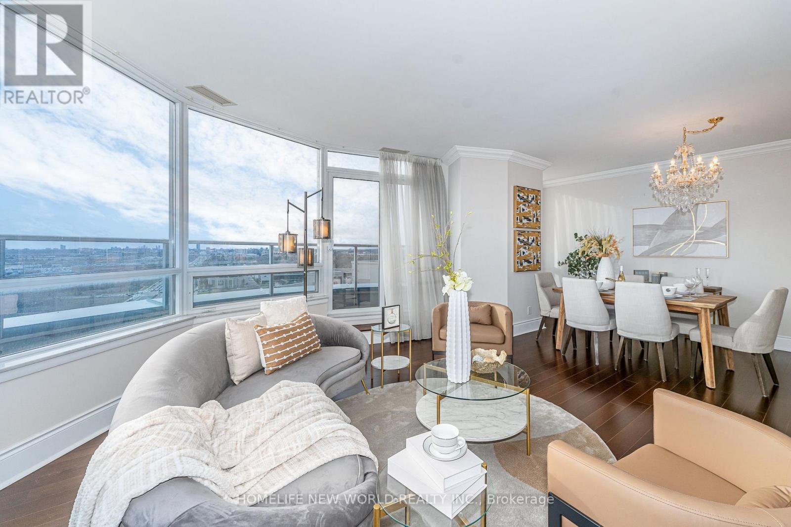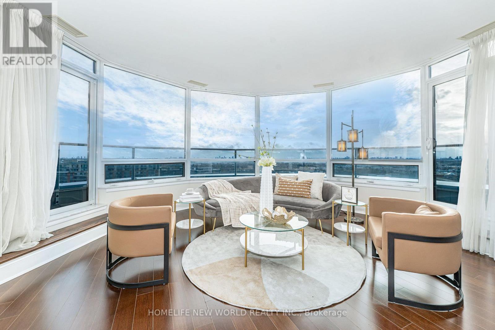 Prime Location! Prestigious Tridel Dorsay's Circa 2 At Markham Town Centre Boasts, Beautiful Penthouse Suite W/9 Ft Ceiling! Luxury Signature Suite W/Unobstructed Panoramic South View, Wrap Around Terrace, An angle of 270 Balcony, Crown Molding, Quartz Countertop, The Kitchen Features A Large Skylight. Hardwood Flooring Throughout, Bright And Sunny Filled. Large Laundry Rm. Lots Of Storage Space. Grand 2 Storey Lobby W/$$$ Amenities. Within Walking Distance To Coledale Public School & Unionville High Schoo, Parks, Restaurants, 24 Hr Concierge, Indoor Pool, Gym, Virtual Golf, Theatre, Guest Suites, Party Room Etc. Close To Hwy407 & 404. A Must See! (id:64974)