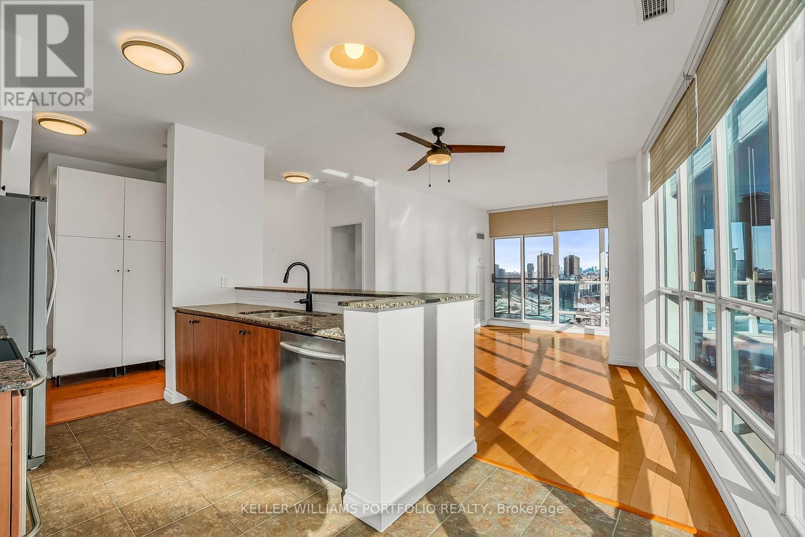 Set high above the city, this stunning 1315 sq ft penthouse offers an elevated lifestyle defined by light, views, and effortless sophistication. Floor-to-ceiling windows flood the space in natural light while capturing breathtaking vistas of the lake and CN Tower. Day or night, the backdrop is simply unforgettable. Open-concept living and dining areas flow seamlessly into a modern kitchen with a generous breakfast bar, perfect for entertaining or quiet mornings. The primary suite is a serene retreat featuring a walk-in closet and a spacious ensuite designed for true relaxation, while the second bedroom offers ideal flexibility for guests, a home office, or additional living space. Residents enjoy a true resort-inspired lifestyle with an outdoor pool, sundeck and track, full fitness centre with yoga and cycling studios, sauna and squash court, along with business, entertainment and social spaces-plus the added value of heat, hydro, and water included in the maintenance fees. Thoughtfully finished, exceptionally bright, and impressively private, this penthouse delivers a rare sense of openness in a vibrant waterfront community just moments away from trails, transit, and city conveniences. A must-see for those seeking expansive views, sun-filled interiors, and a lifestyle at the very top. (id:64974)