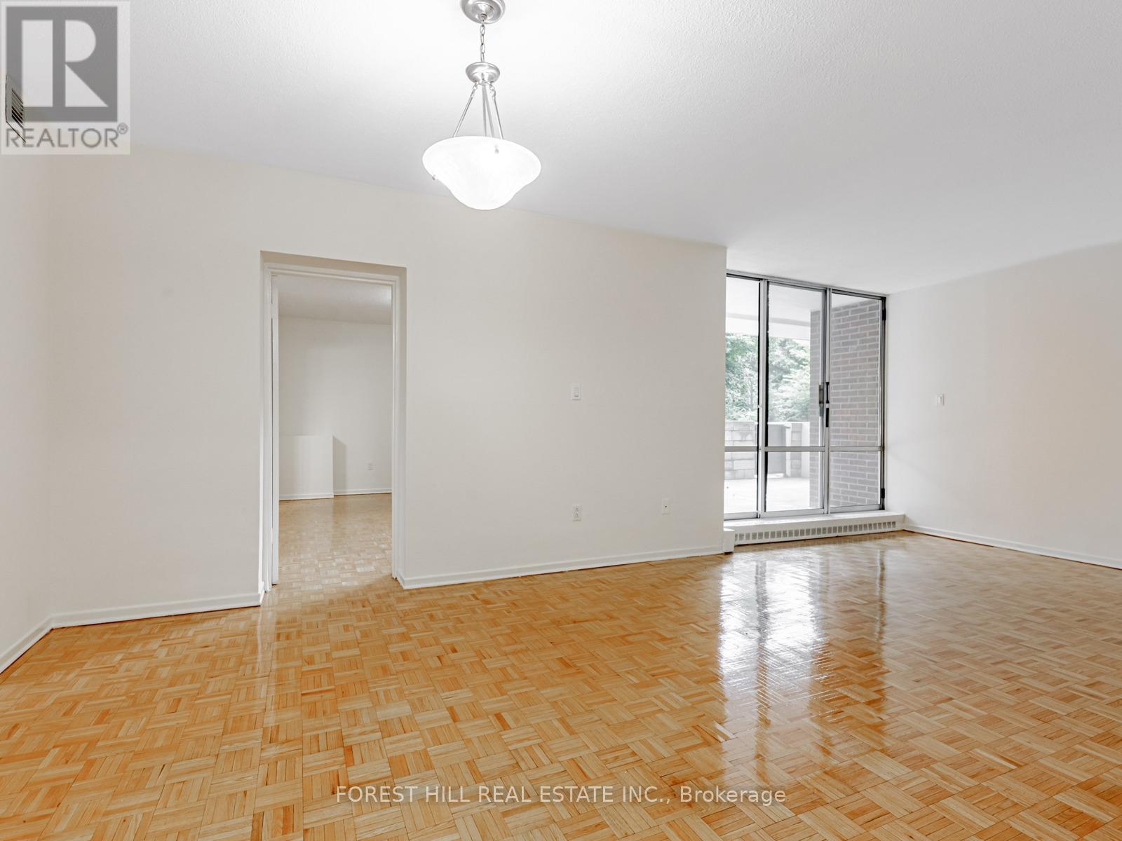 "Gates Of Bayview." This recently renovated 1124 Sq. Ft. unit includes a walk out to a a 263 sq. ft. Patio. Gleaming parquet floor throughout with lots of storage space. Amenities Include Indoor Pool, Fitness Centre, Jacuzzi, Sauna, indoor tennis court, pickle ball, Billiards, Golf Centre, Convenience Stores And 3 Party Rooms. 24 Hr security at main entrance. Close to TTC and shopping. Included in the rent is Rec Centre membership, heat, water and a locker. Parking if needed $120 per month per car. A must see! (id:64974)