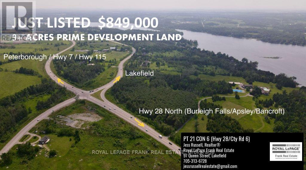 9+ acres of prime development land on Highway 28 at the gateway to cottage country. Huge potential for this level lot with incredible highway visibility attracting up to 6,000 vehicles/day. This property is currently zoned Commercial and Rural and will benefit from Employment Designation under the incoming Official Plan, clearing the way for a vast array of permitted uses. Entrance may be permitted from County Road 6 or 5th Line. Convenient access to Highway 28, Hwy 7, Hwy 115 leading to the 407 and 401. (id:64974)