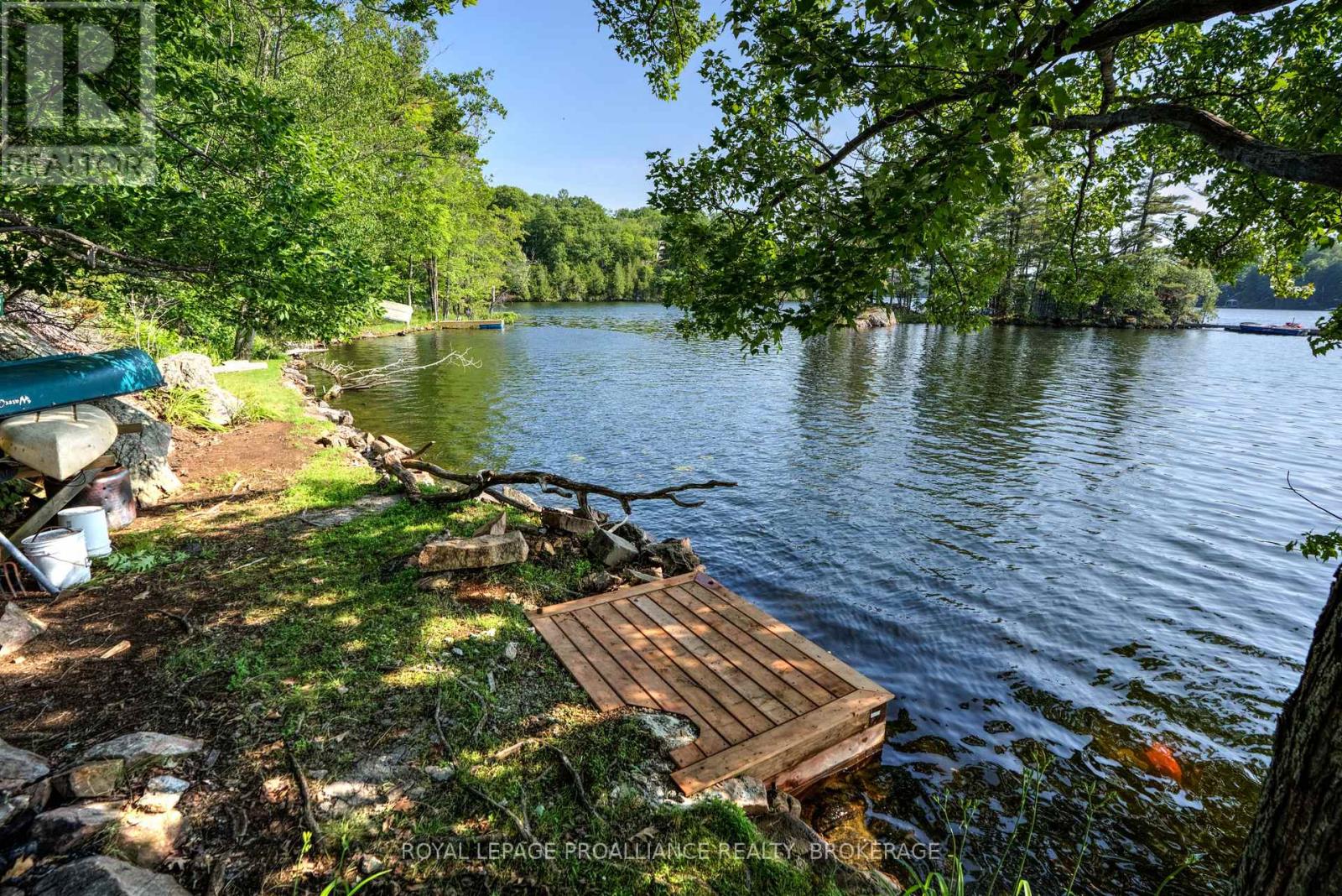Waterfront lot with beautiful westerly views on Bobs Lake. This water access lot offers approximately 130 feet of water frontage and 0.7 acres of land. The property features level shoreline with deep, clean water frontage that is ideal for swimming and docking your boat. The lot rises steeply from the shore and transitions into a rugged, classic Canadian Shield landscape. The steep terrain does give some building challenges but the elevated rear portion of the lot provides a picturesque setting that could accommodate a cottage or serve as an exceptional private camping retreat. Convenient boat access is available from a deeded boat launch and lane. Bobs Lake is one of the largest lakes in our area with many islands and inlets to explore and great fishing, boating and swimming opportunities. This property offers a rare opportunity to own a stunning slice of Canadian Shield waterfront in Eastern Ontario cottage country. This property can be sold together with the adjacent cottage or after the sale of the cottage. Property accessed by boat. (id:64974)