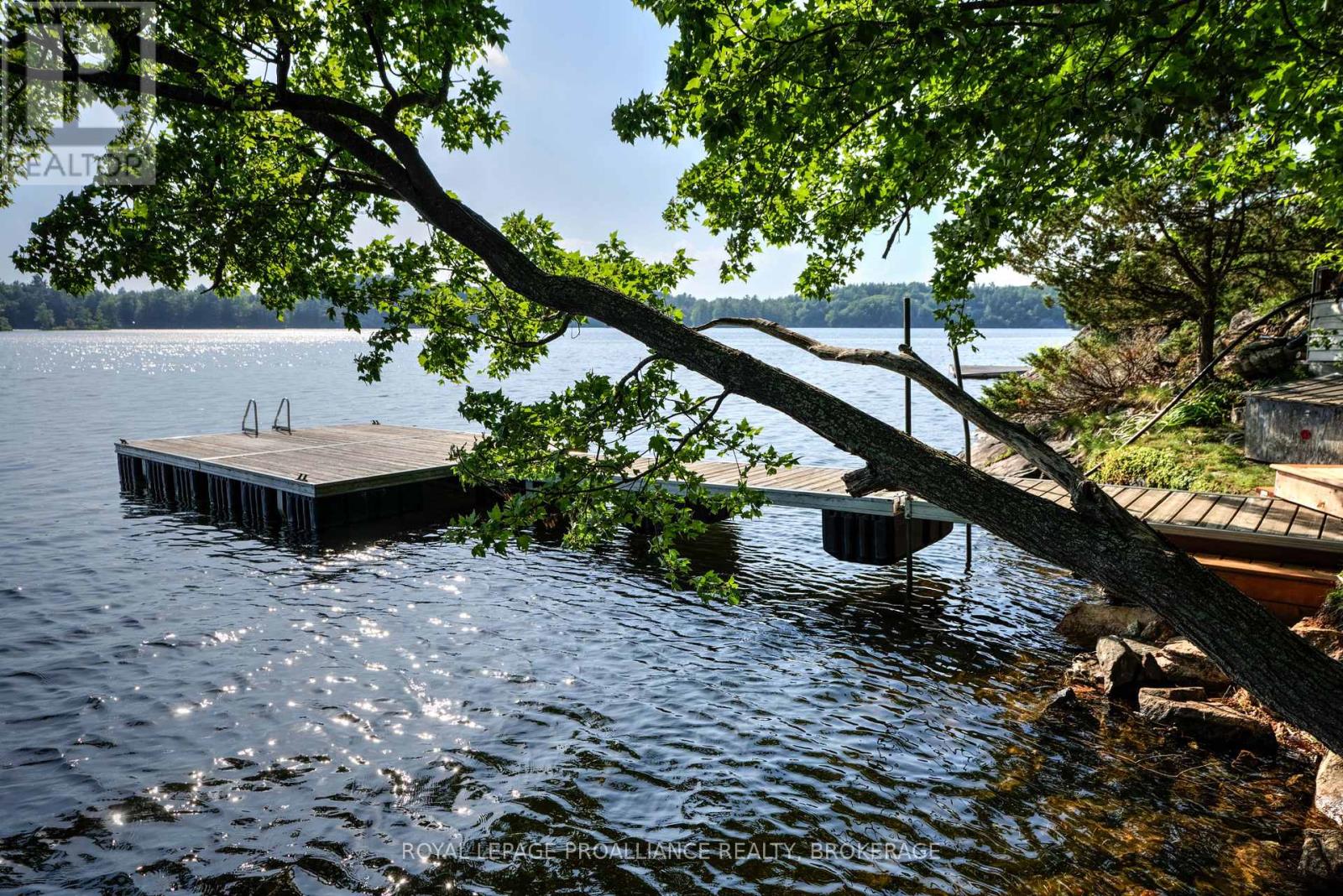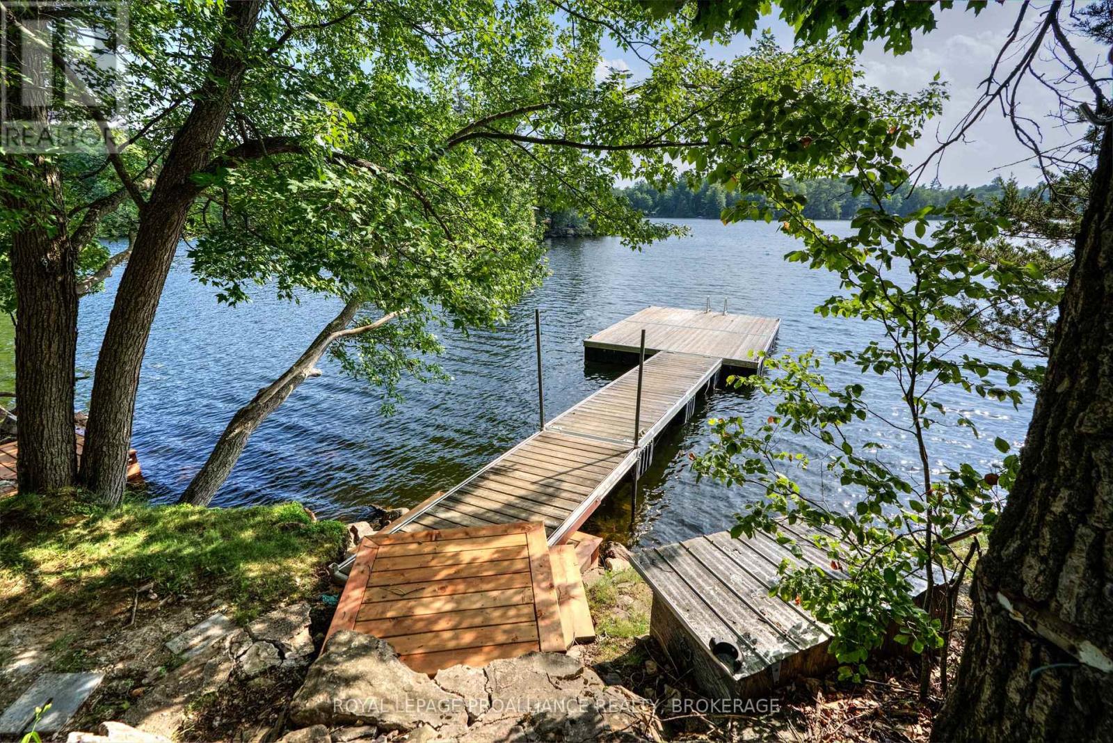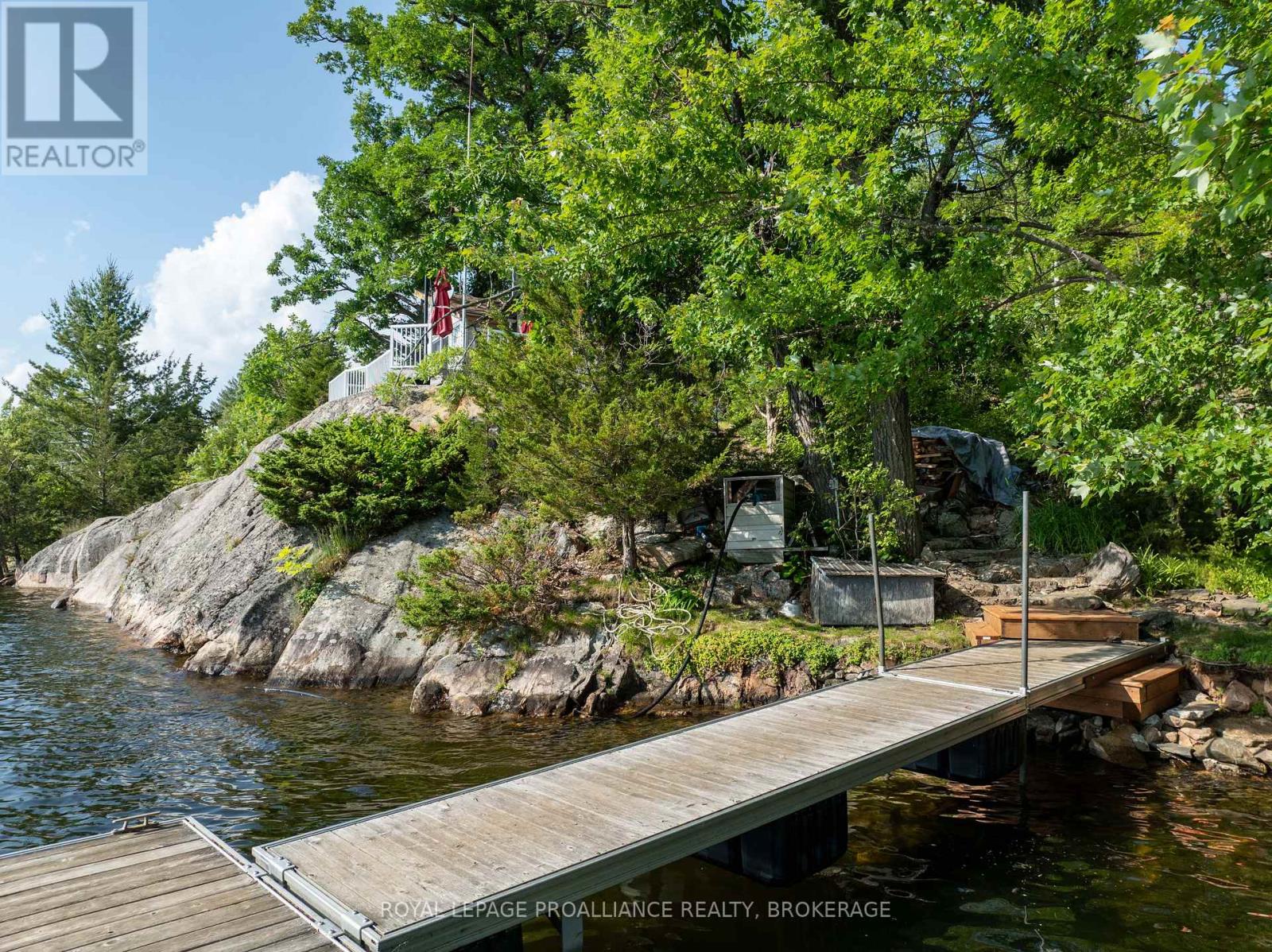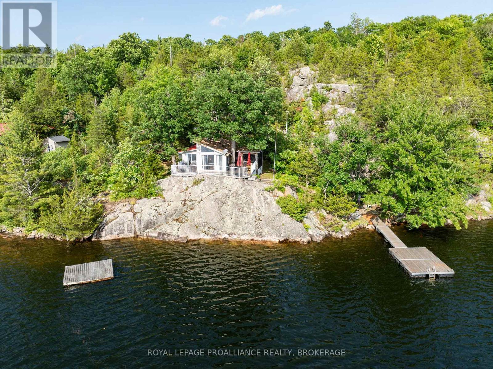 Private waterfront retreat located on Bobs Lake. This 2-bedroom cottage sits perched on a large Canadian Shield rock that overlooks deep, clean waterfrontage. The floor plan of this cottage is easy and simple - ideal for a cottage. There is a kitchen with an open living room area, a 3-pc bathroom, attached screened-in deck and a small loft with a pulldown set of stairs. This cottage has a large deck that overlooks the lake and is serviced by a lakewater system, grey water pit and a composting toilet. A few steps down from the deck and down the stone stairs and pathway is a large dock for your boat and for just hanging out at the water or swimming. Behind the cottage and just up the hill is a cute and cozy bunkie for family and guests. The cottage is being sold fully furnished inside and out, including a couple of kayaks. Start enjoying cottage life this summer! Enjoy a warm breeze while sitting on your deck with unrestricted views over the lake and take in spectacular nightly sunsets. Convenient boat access is available from a deeded boat launch and lane. Bobs Lake is a beautiful and large lake with varied topography and plenty of water to explore! Westport or Sharbot Lake are both just a short distance away. Property is accessed by boat only. No road access. (id:64974)