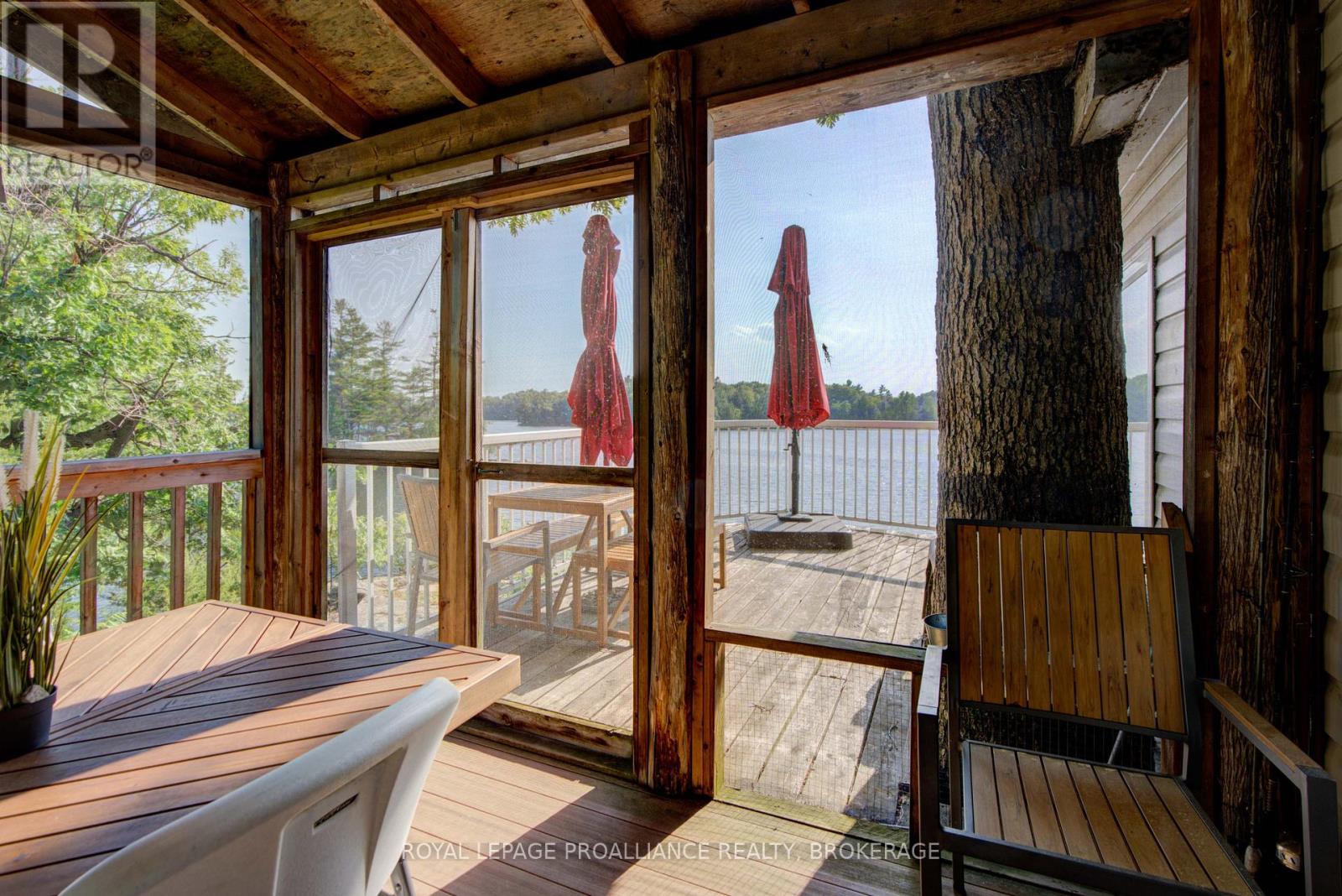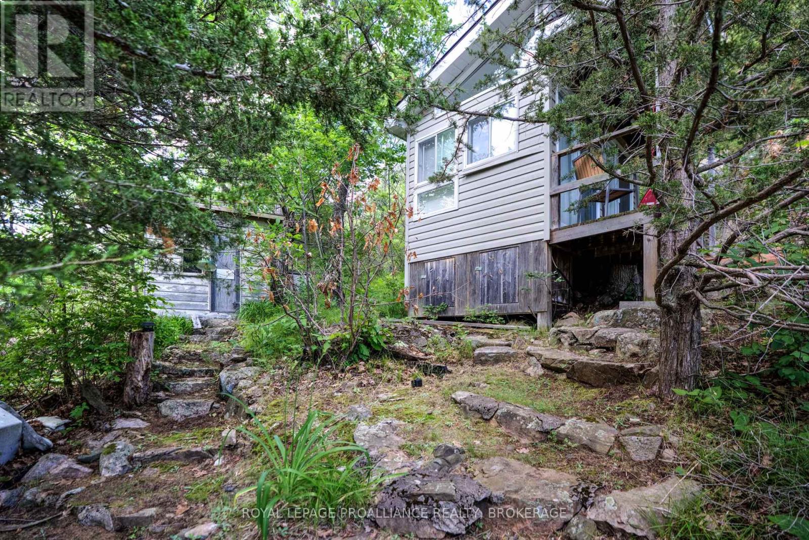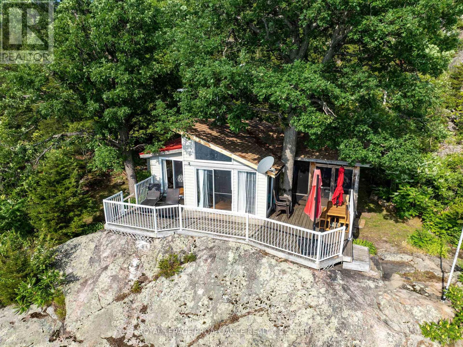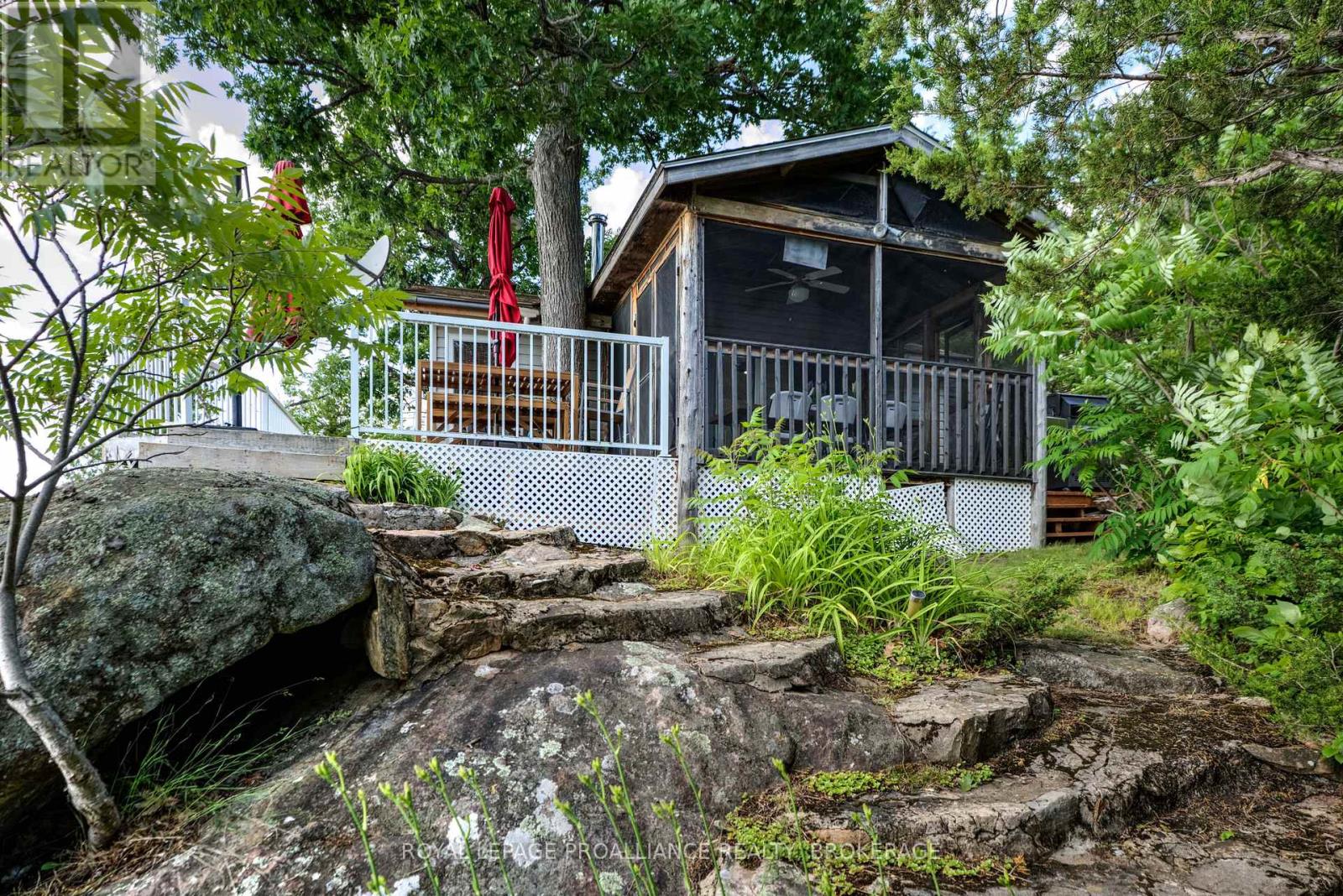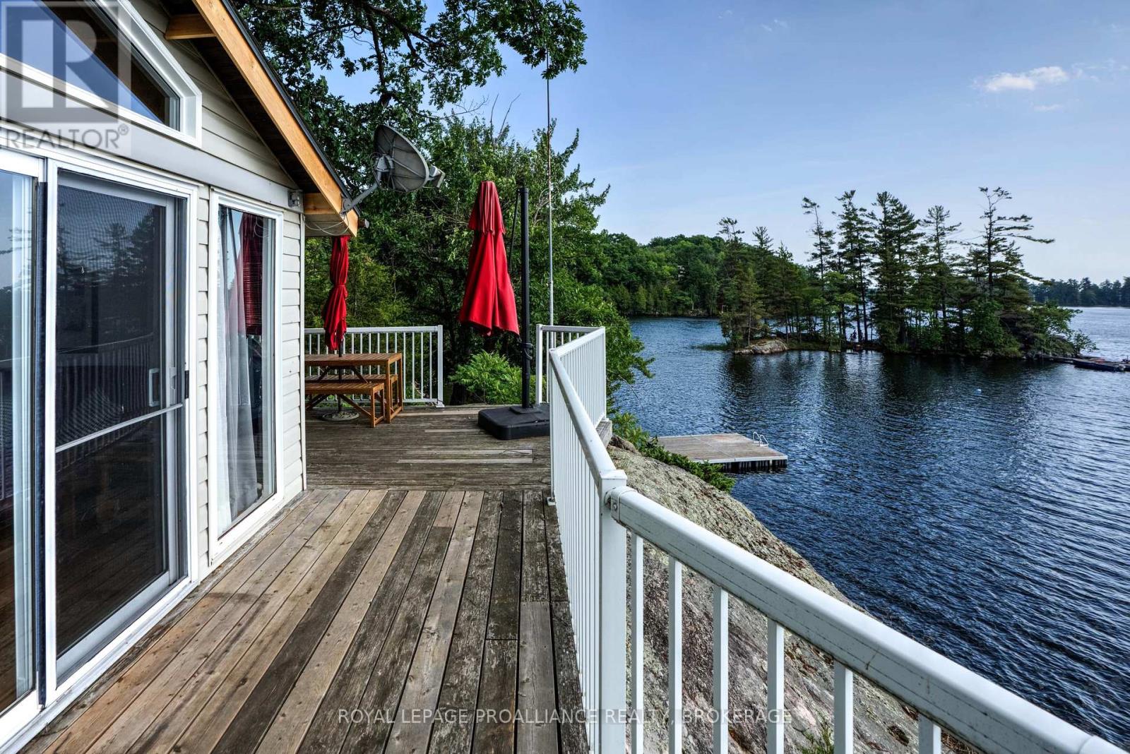 Private waterfront retreat located on Bobs Lake. This 2-bedroom cottage sits perched on a large Canadian Shield rock that overlooks deep, clean waterfrontage. The floor plan of this cottage is easy and simple - ideal for a cottage. There is a kitchen with an open living room area, a 3-pc bathroom, attached screened-in deck and a small loft with a pulldown set of stairs. This cottage has a large deck that overlooks the lake and is serviced by a lakewater system, grey water pit and a composting toilet. A few steps down from the deck and down the stone stairs and pathway is a large dock for your boat and for just hanging out at the water or swimming. Behind the cottage and just up the hill is a cute and cozy bunkie for family and guests. The cottage is being sold fully furnished inside and out, including a couple of kayaks. Start enjoying cottage life this summer! Enjoy a warm breeze while sitting on your deck with unrestricted views over the lake and take in spectacular nightly sunsets. Convenient boat access is available from a deeded boat launch and lane. Bobs Lake is a beautiful and large lake with varied topography and plenty of water to explore! Westport or Sharbot Lake are both just a short distance away. Property is accessed by boat only. No road access. (id:64974)