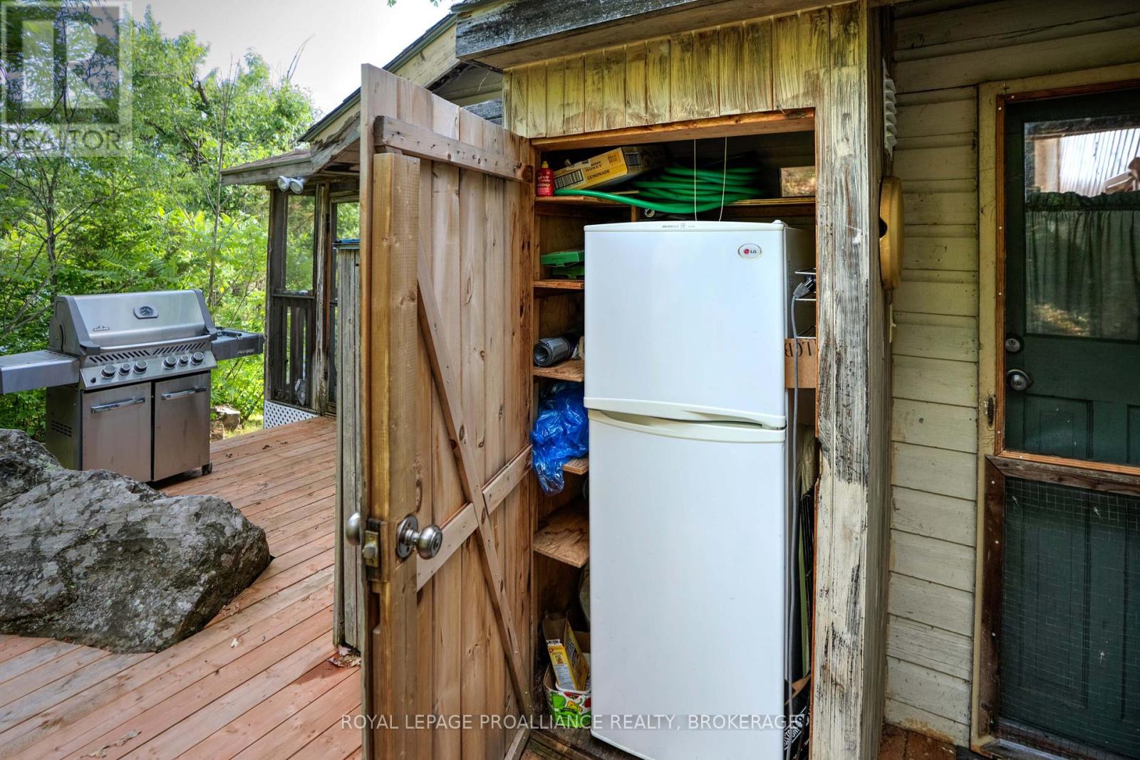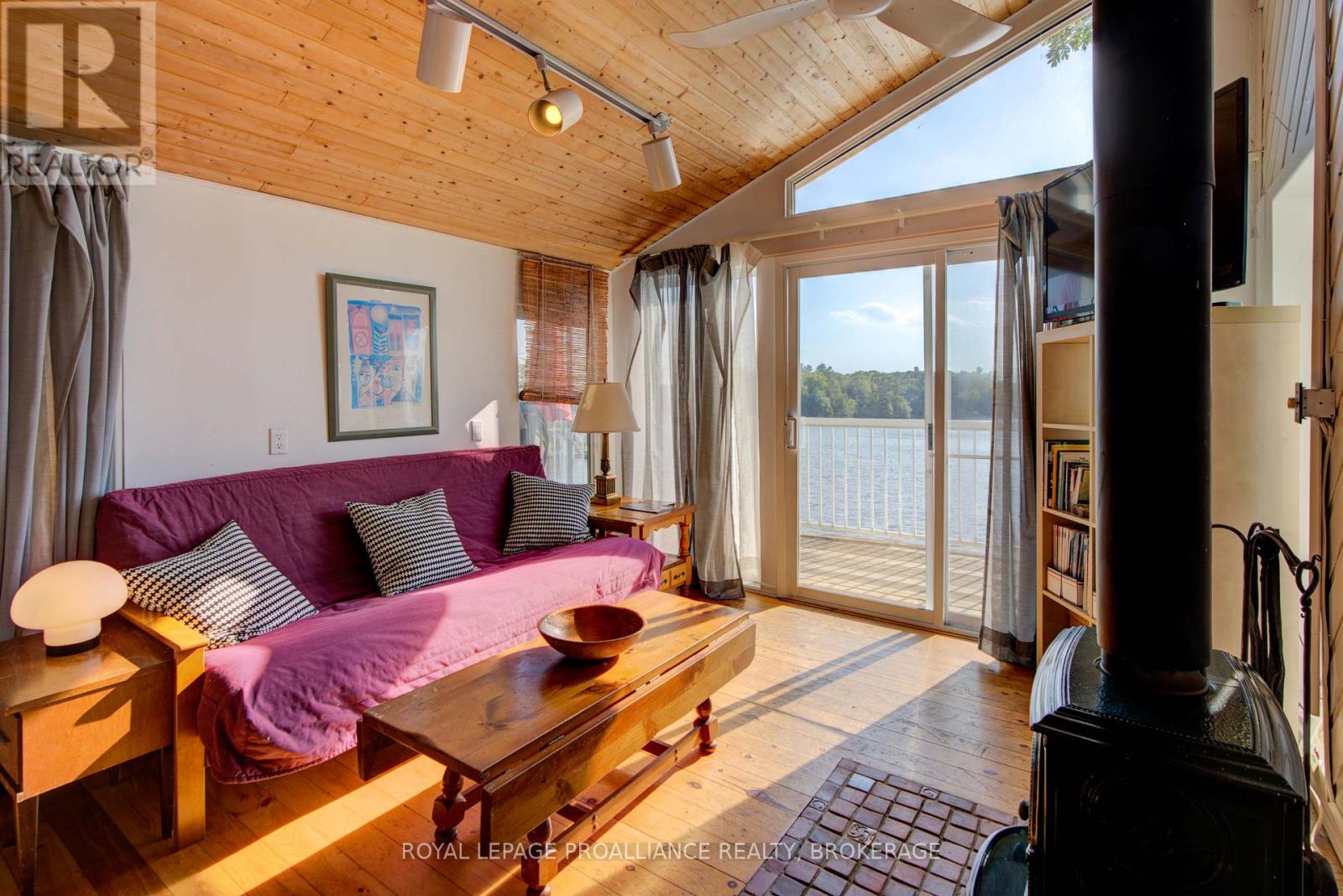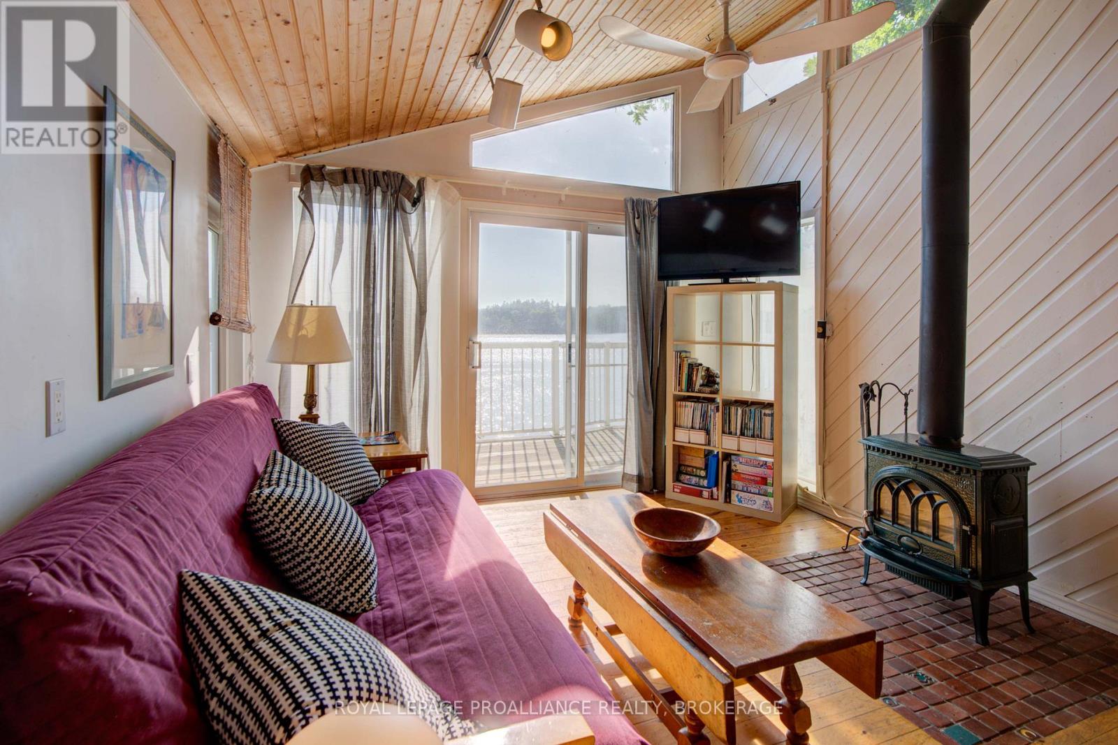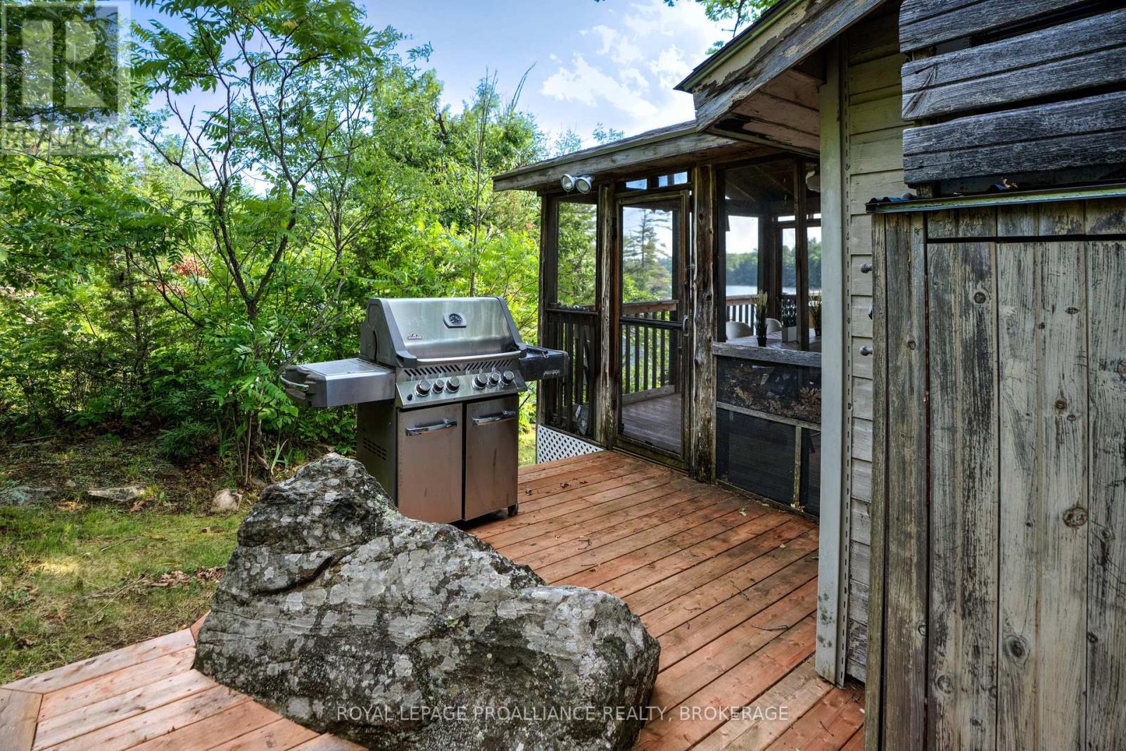 Private waterfront retreat located on Bobs Lake. This 2-bedroom cottage sits perched on a large Canadian Shield rock that overlooks deep, clean waterfrontage. The floor plan of this cottage is easy and simple - ideal for a cottage. There is a kitchen with an open living room area, a 3-pc bathroom, attached screened-in deck and a small loft with a pulldown set of stairs. This cottage has a large deck that overlooks the lake and is serviced by a lakewater system, grey water pit and a composting toilet. A few steps down from the deck and down the stone stairs and pathway is a large dock for your boat and for just hanging out at the water or swimming. Behind the cottage and just up the hill is a cute and cozy bunkie for family and guests. The cottage is being sold fully furnished inside and out, including a couple of kayaks. Start enjoying cottage life this summer! Enjoy a warm breeze while sitting on your deck with unrestricted views over the lake and take in spectacular nightly sunsets. Convenient boat access is available from a deeded boat launch and lane. Bobs Lake is a beautiful and large lake with varied topography and plenty of water to explore! Westport or Sharbot Lake are both just a short distance away. Property is accessed by boat only. No road access. (id:64974)