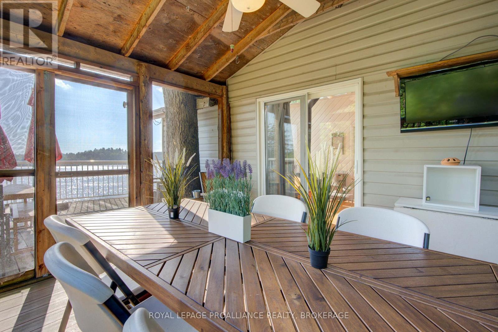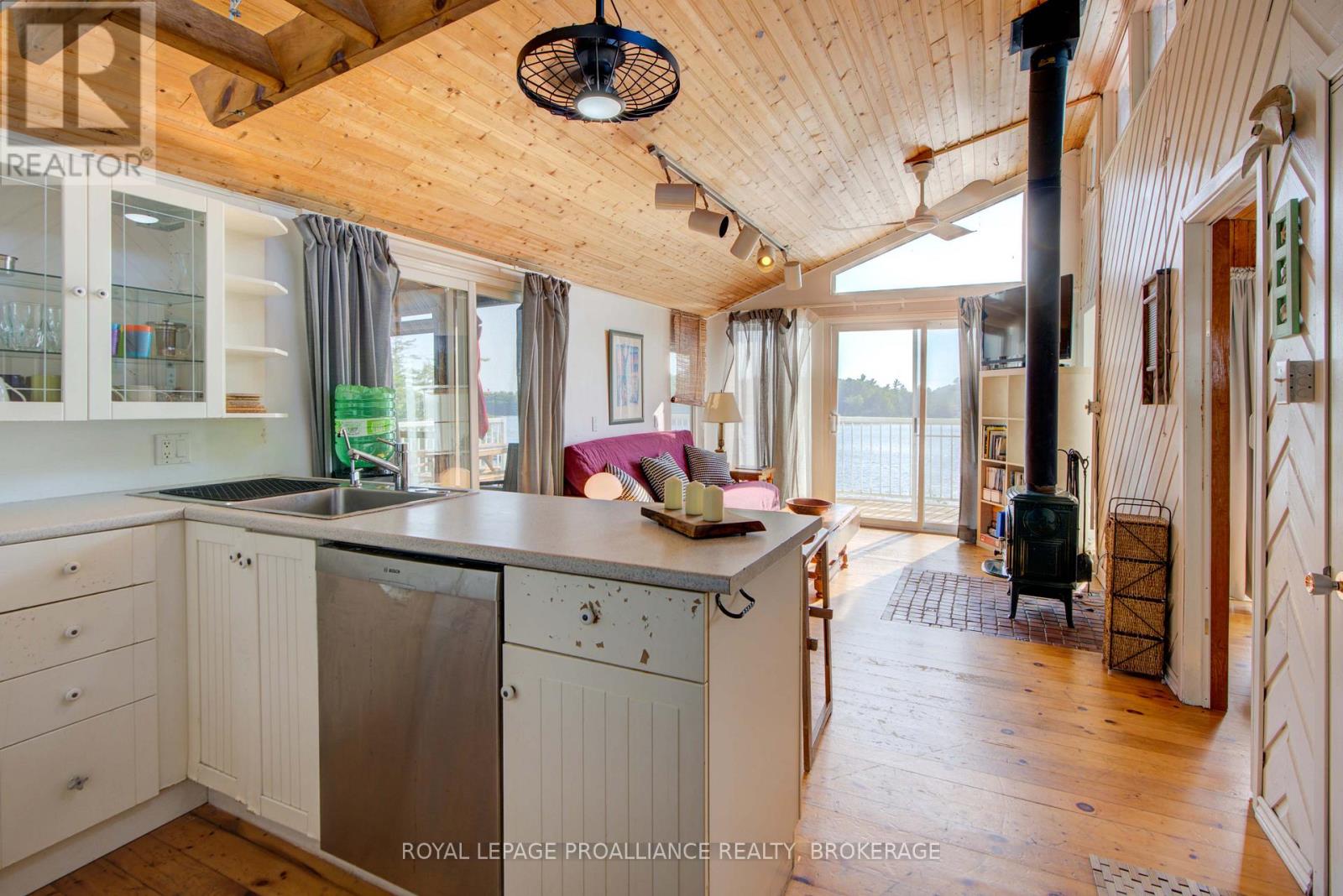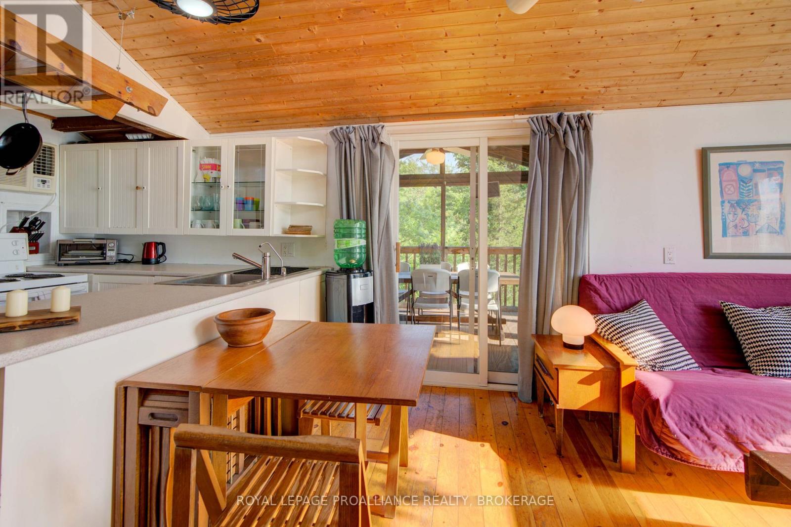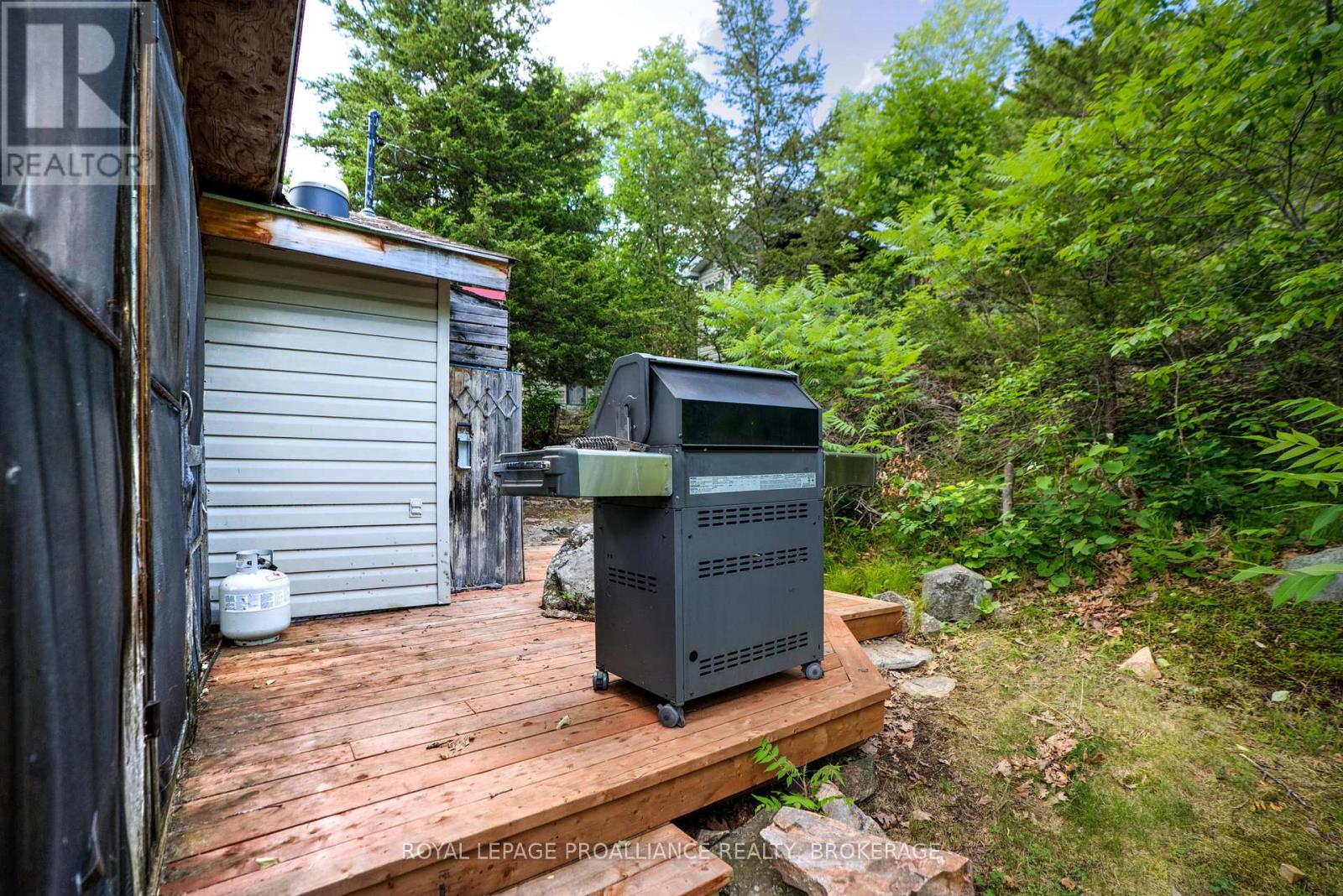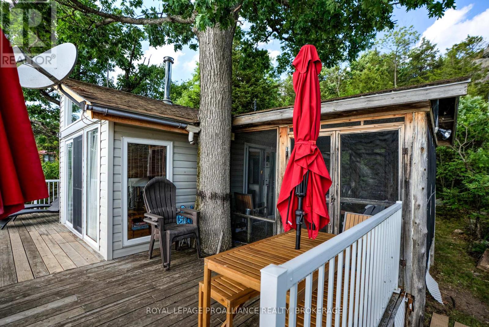 Private waterfront retreat located on Bobs Lake. This 2-bedroom cottage sits perched on a large Canadian Shield rock that overlooks deep, clean waterfrontage. The floor plan of this cottage is easy and simple - ideal for a cottage. There is a kitchen with an open living room area, a 3-pc bathroom, attached screened-in deck and a small loft with a pulldown set of stairs. This cottage has a large deck that overlooks the lake and is serviced by a lakewater system, grey water pit and a composting toilet. A few steps down from the deck and down the stone stairs and pathway is a large dock for your boat and for just hanging out at the water or swimming. Behind the cottage and just up the hill is a cute and cozy bunkie for family and guests. The cottage is being sold fully furnished inside and out, including a couple of kayaks. Start enjoying cottage life this summer! Enjoy a warm breeze while sitting on your deck with unrestricted views over the lake and take in spectacular nightly sunsets. Convenient boat access is available from a deeded boat launch and lane. Bobs Lake is a beautiful and large lake with varied topography and plenty of water to explore! Westport or Sharbot Lake are both just a short distance away. Property is accessed by boat only. No road access. (id:64974)