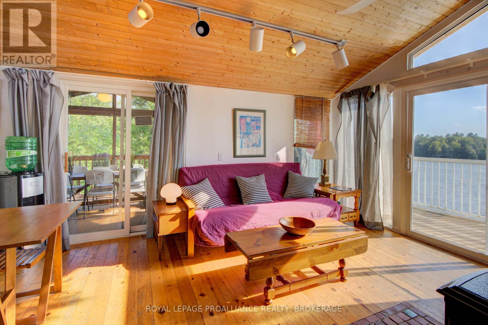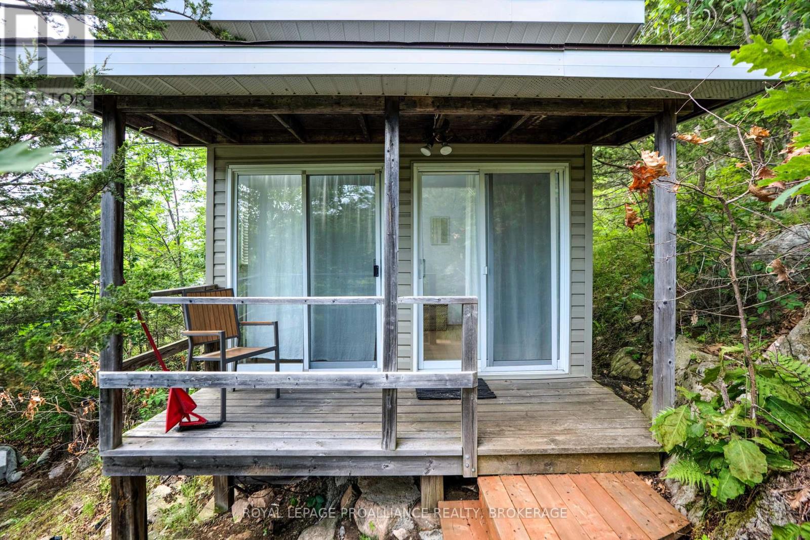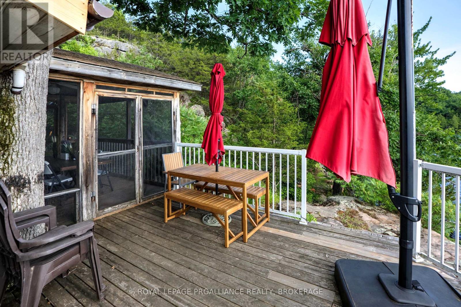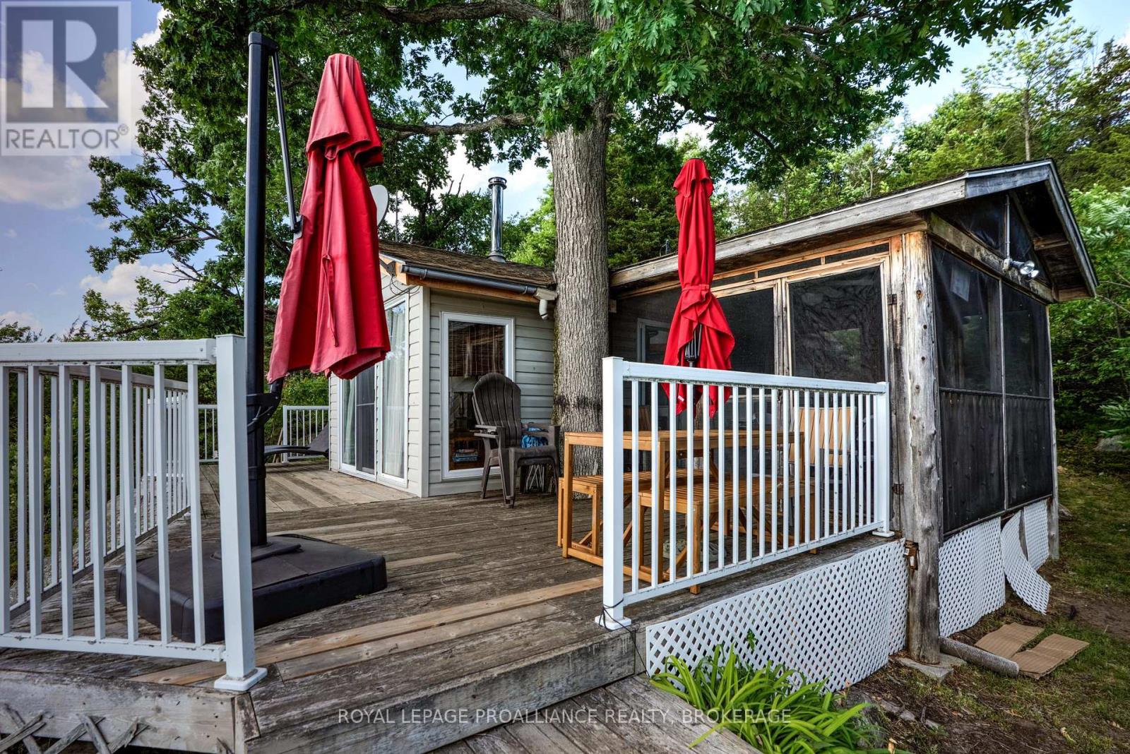 Private waterfront retreat located on Bobs Lake. This 2-bedroom cottage sits perched on a large Canadian Shield rock that overlooks deep, clean waterfrontage. The floor plan of this cottage is easy and simple - ideal for a cottage. There is a kitchen with an open living room area, a 3-pc bathroom, attached screened-in deck and a small loft with a pulldown set of stairs. This cottage has a large deck that overlooks the lake and is serviced by a lakewater system, grey water pit and a composting toilet. A few steps down from the deck and down the stone stairs and pathway is a large dock for your boat and for just hanging out at the water or swimming. Behind the cottage and just up the hill is a cute and cozy bunkie for family and guests. The cottage is being sold fully furnished inside and out, including a couple of kayaks. Start enjoying cottage life this summer! Enjoy a warm breeze while sitting on your deck with unrestricted views over the lake and take in spectacular nightly sunsets. Convenient boat access is available from a deeded boat launch and lane. Bobs Lake is a beautiful and large lake with varied topography and plenty of water to explore! Westport or Sharbot Lake are both just a short distance away. Property is accessed by boat only. No road access. (id:64974)