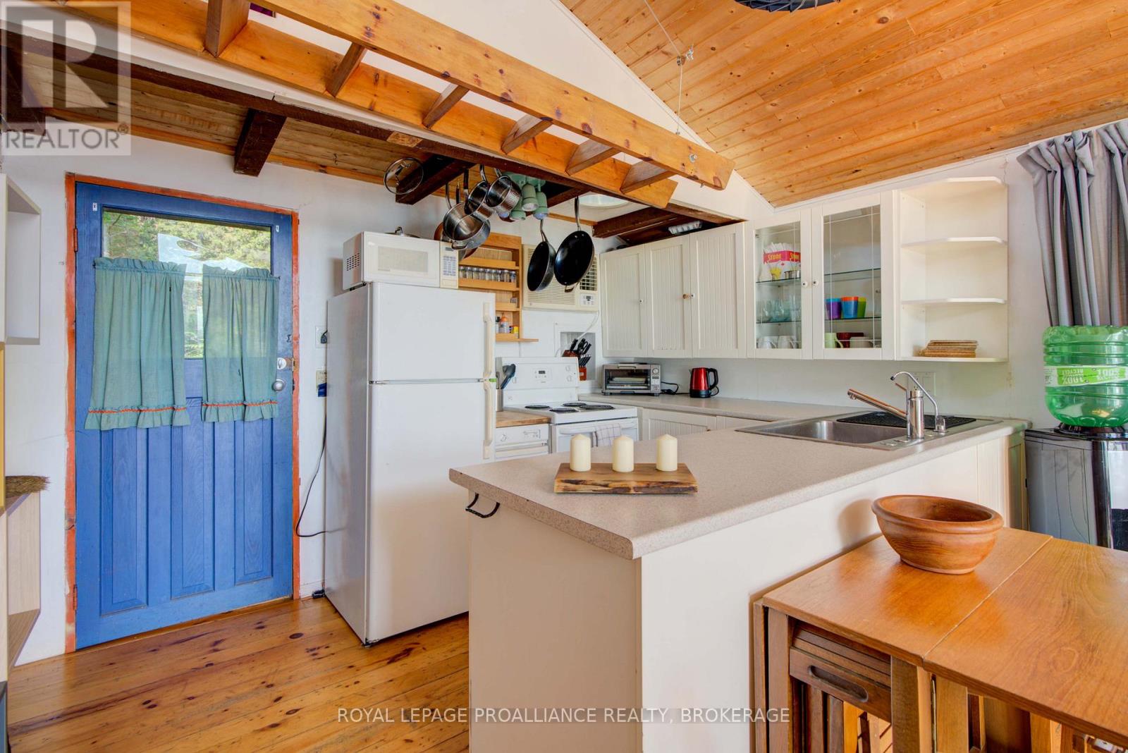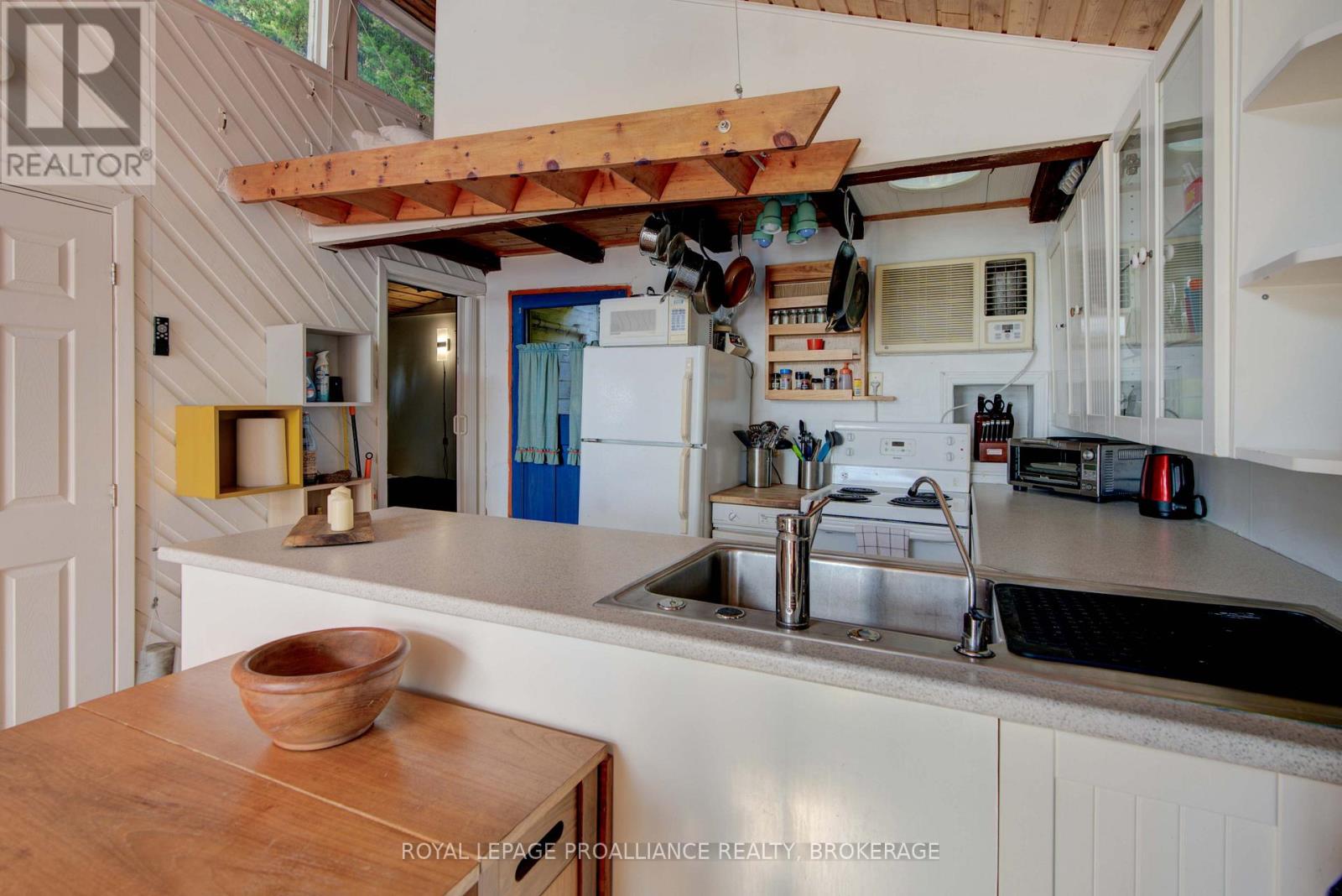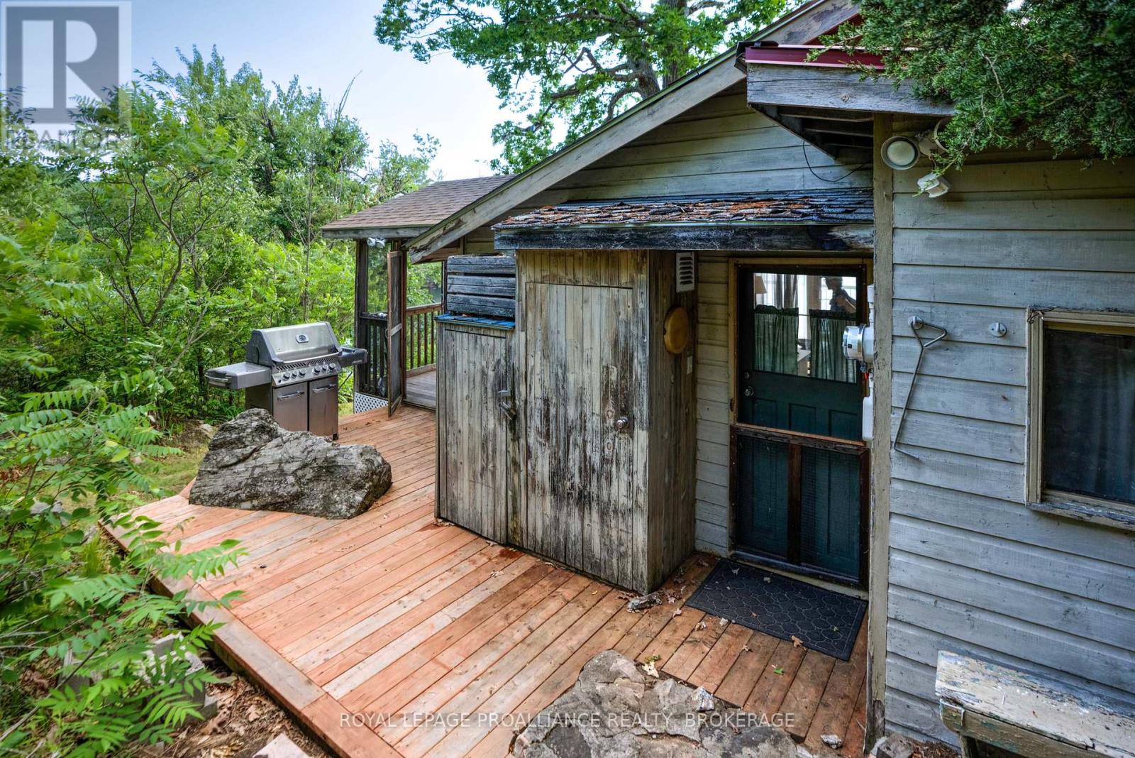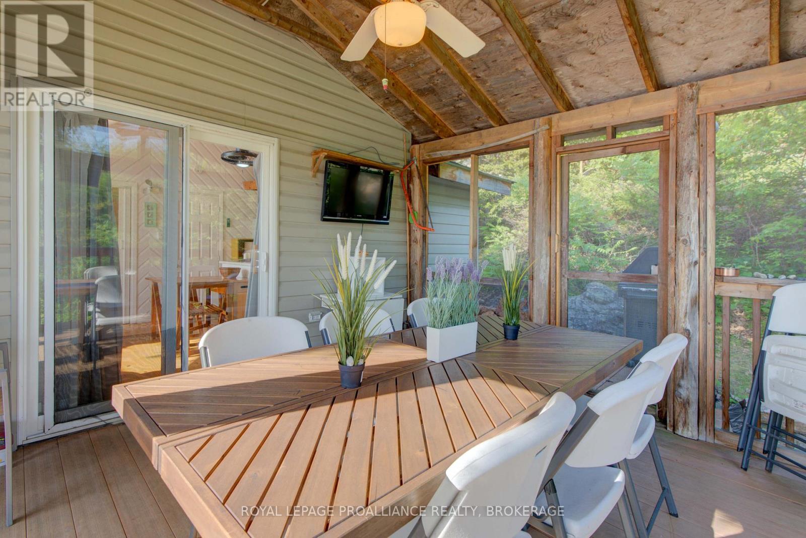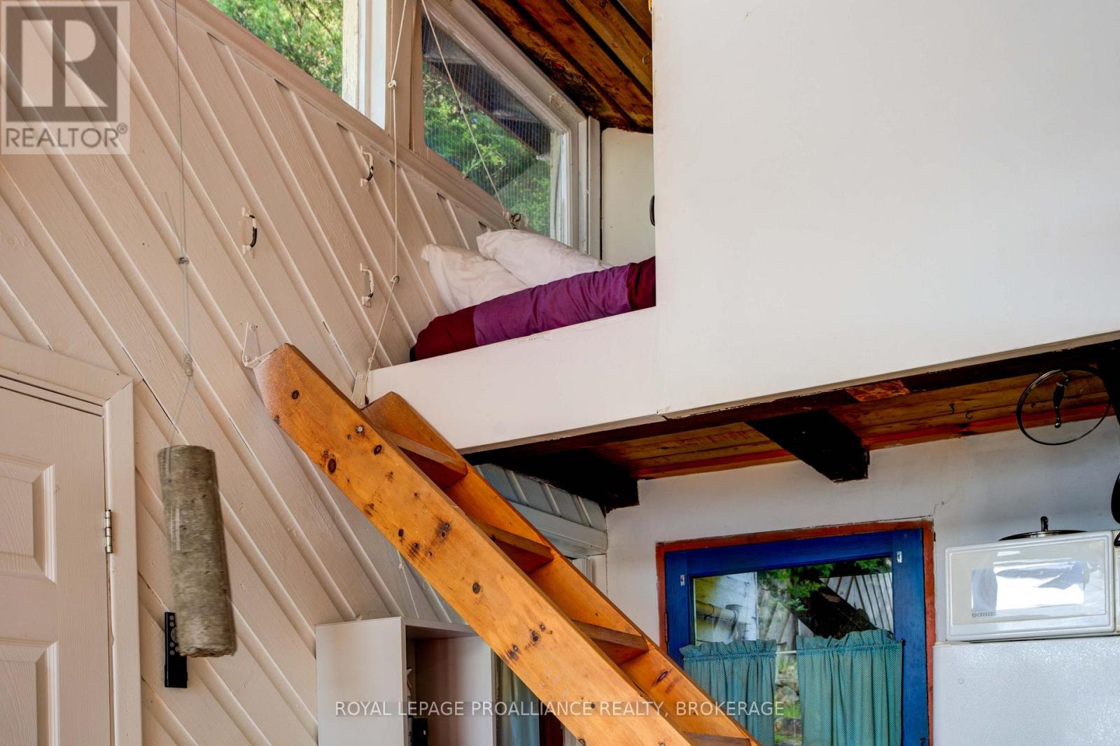 Private waterfront retreat located on Bobs Lake. This 2-bedroom cottage sits perched on a large Canadian Shield rock that overlooks deep, clean waterfrontage. The floor plan of this cottage is easy and simple - ideal for a cottage. There is a kitchen with an open living room area, a 3-pc bathroom, attached screened-in deck and a small loft with a pulldown set of stairs. This cottage has a large deck that overlooks the lake and is serviced by a lakewater system, grey water pit and a composting toilet. A few steps down from the deck and down the stone stairs and pathway is a large dock for your boat and for just hanging out at the water or swimming. Behind the cottage and just up the hill is a cute and cozy bunkie for family and guests. The cottage is being sold fully furnished inside and out, including a couple of kayaks. Start enjoying cottage life this summer! Enjoy a warm breeze while sitting on your deck with unrestricted views over the lake and take in spectacular nightly sunsets. Convenient boat access is available from a deeded boat launch and lane. Bobs Lake is a beautiful and large lake with varied topography and plenty of water to explore! Westport or Sharbot Lake are both just a short distance away. Property is accessed by boat only. No road access. (id:64974)