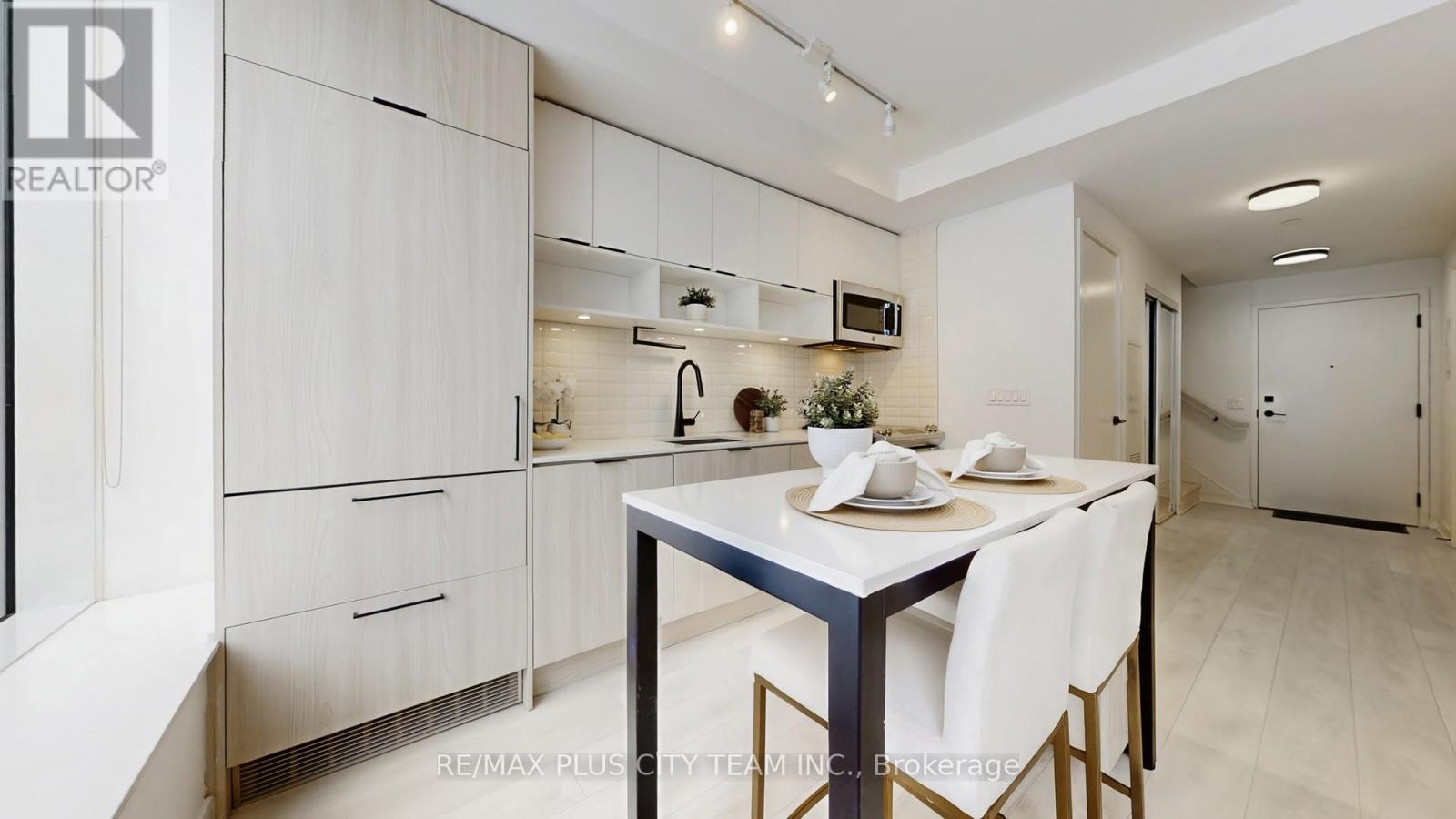 Welcome to Canary Commons, where contemporary design meets community living in Toronto's vibrant Canary District. This sun-filled south-facing 3-bedroom + den, 3-bathroom townhouse offers a spacious, modern layout perfect for urban families or professionals seeking extra room to grow. The main level features light oak flooring, an open-concept living and dining area, and a modern kitchen with full-sized built-in stainless steel appliances, quartz countertops, and a breakfast bar-ideal for both cooking and entertaining. Upstairs, three well-proportioned bedrooms provide privacy and comfort, including a serene primary suite with ample storage. The separate den offers additional versatility as a home office or study space. Enjoy street-level access with a private terrace, creating the perfect indoor-outdoor flow for morning coffee or evening relaxation. Residents benefit from exceptional building amenities, including a fitness centre, yoga studio, party room, rooftop terrace with BBQs, co-working lounge, and concierge service. Steps from the Distillery District, Corktown Commons Park, St. Lawrence Market, shops, cafés, and TTC transit, this townhouse delivers the best of downtown convenience in a peaceful, community-oriented setting. (id:64974)
