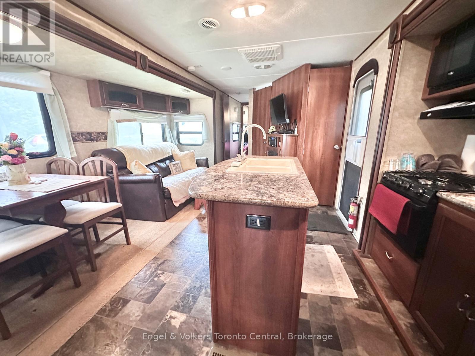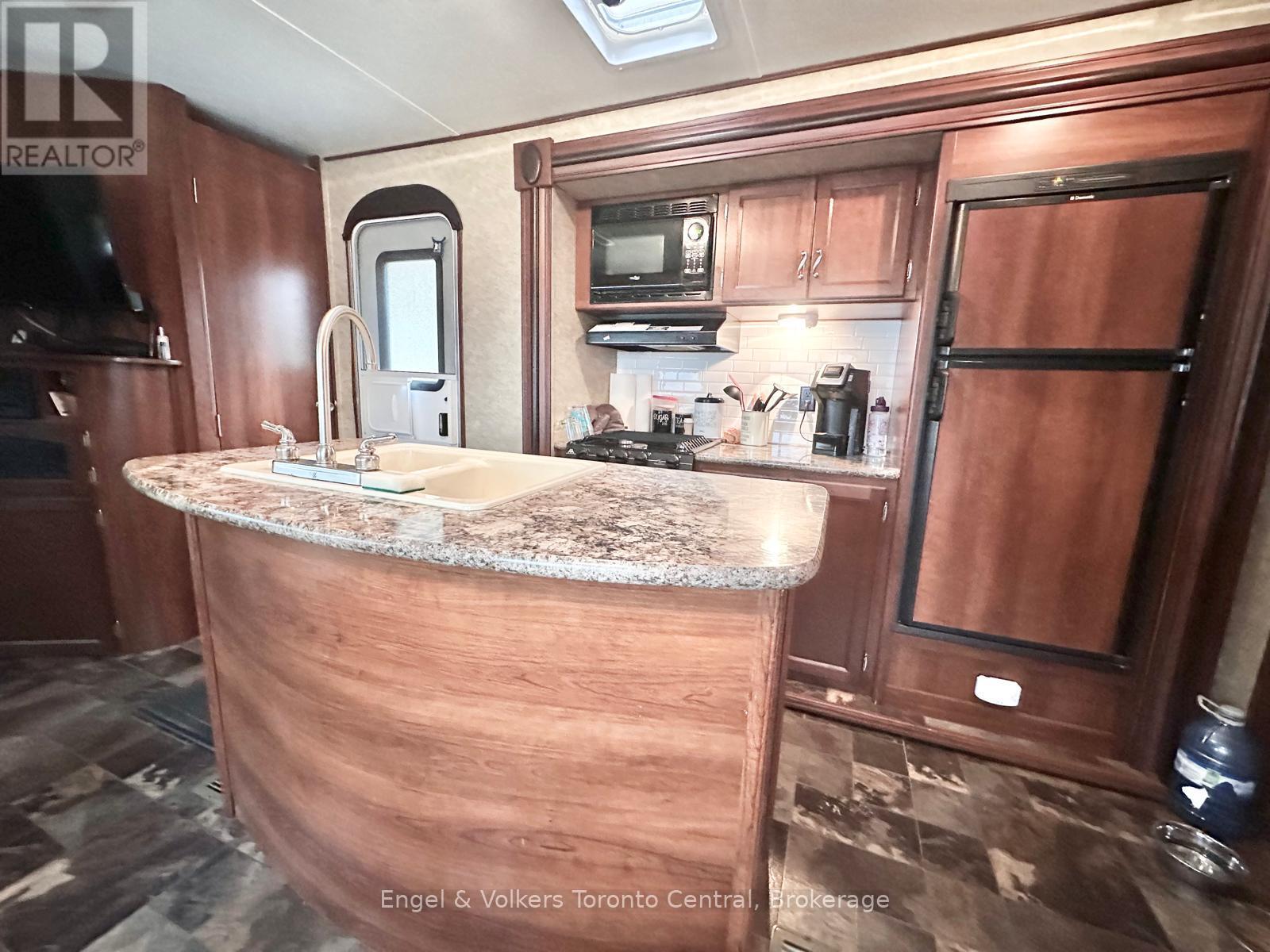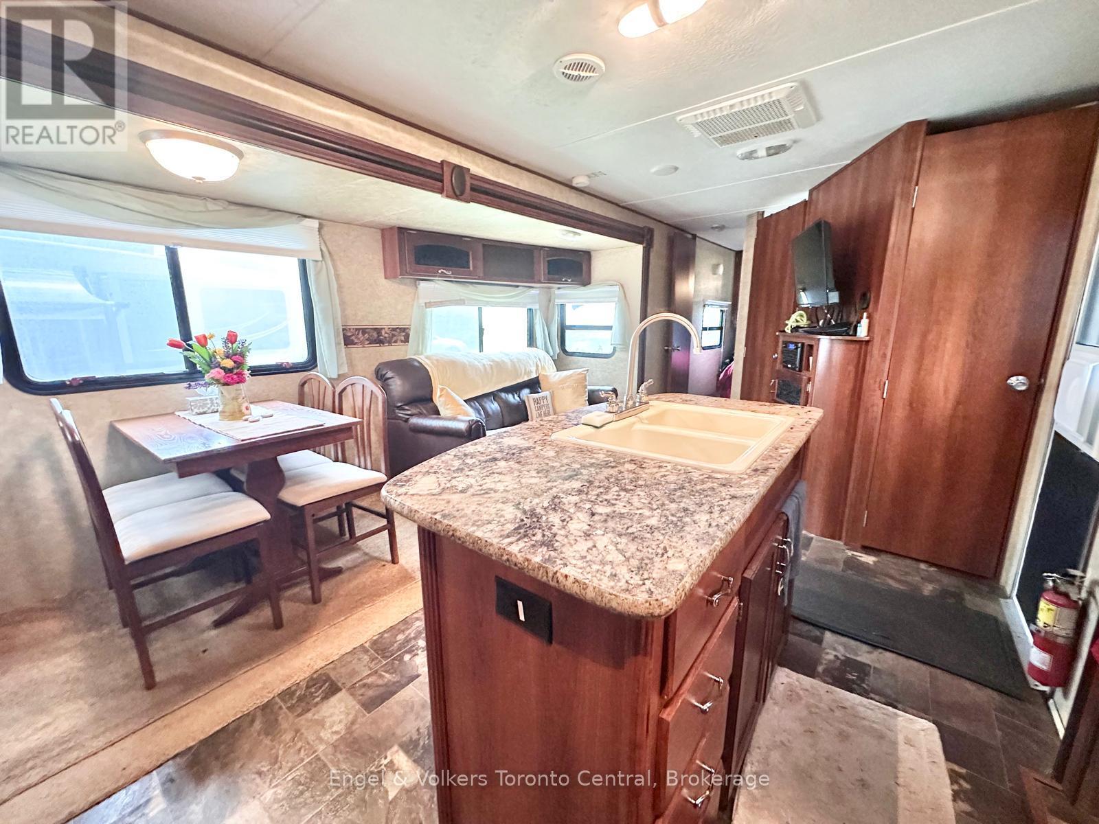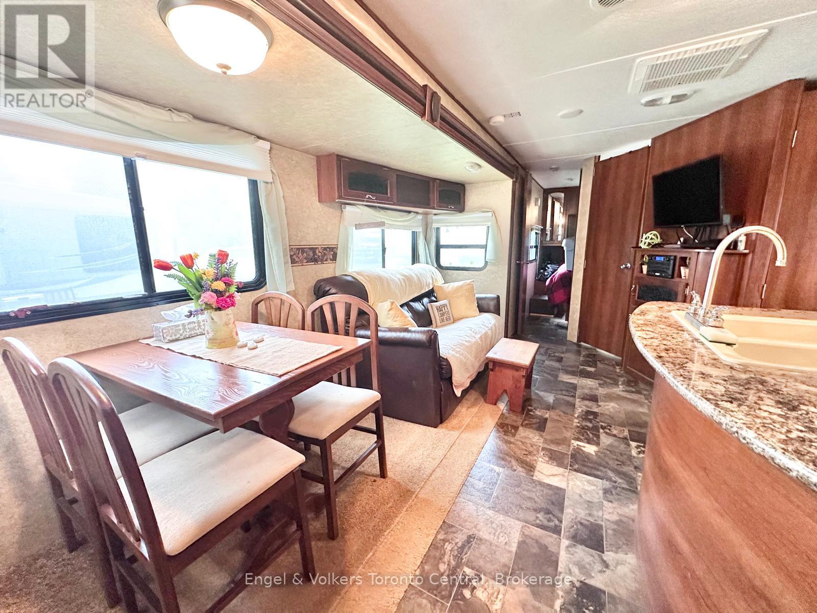 Your Ideal Summer Getaway Awaits! Escape to nature with this spacious, well-treed lot featuring a unique built-in BBQ hut and grill, perfect for outdoor entertaining. This 2014 Avenger mobile home offers a fantastic cottage alternative in the popular Parkbridge Spring Valley Resort, a seasonal resort open from the first Friday in May to the third Sunday in October. Enjoy resort-style amenities including two pools (adult and family), a beach area, mini-golf, kids' recreation programs, and a variety of adult social events such as horseshoe clubs, concerts in the park, and comedy nights. Inside, the home boasts two kitchen tip-outs, creating a bright and open living space with a freestanding dining area, kitchen island, and a futon-style couch for extra sleeping. The master bedroom features a queen bed with ample storage, while the second bedroom includes a kip-out with three bunk beds and a cozy entertainment space with a convertible table-ideal for kids or guests. An additional highlight is the convenient outdoor kitchen, perfect for summer dining. Whether you're looking for relaxation or fun-filled family time, this property has it all. Don't miss out! Schedule your private showing today! The fees for the 2026 season are $4,595.00. Note: Includes everything but your propane, hydro, and Internet if you choose to install it. There are no additional fees for water, property, taxes, visitors to the resort, etc. (id:64974)