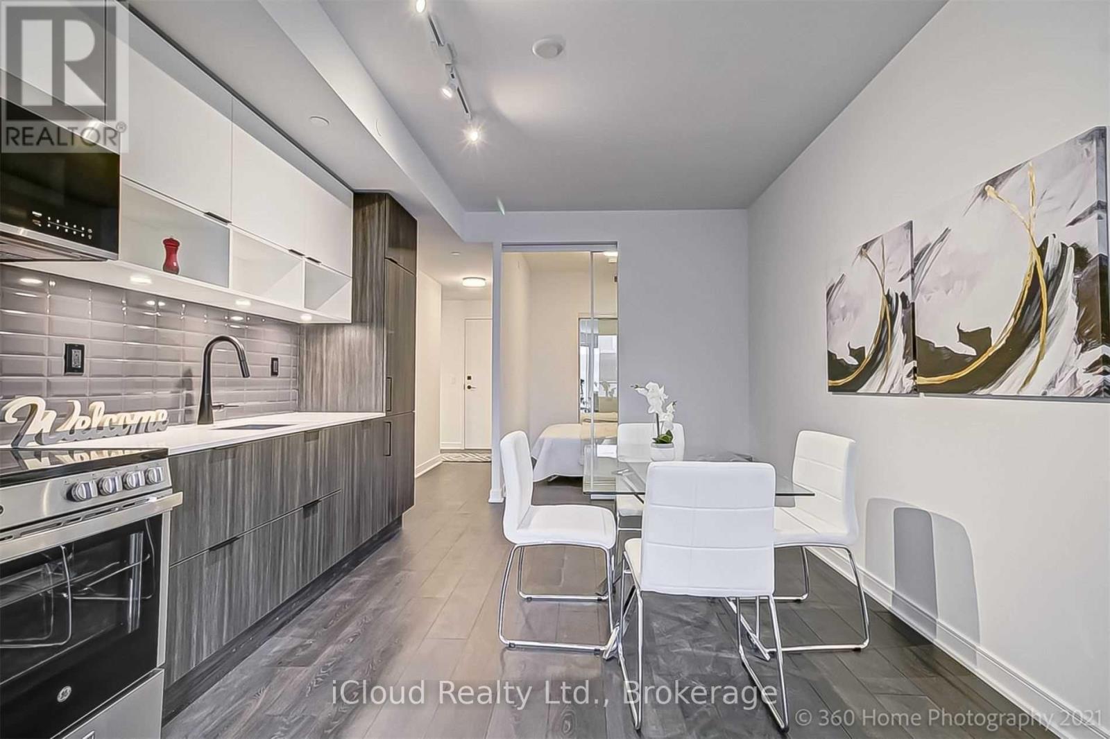 Two bedrooms plus den, two washroom unit! 685 sqft split BR floor plan with zero wasted space, plus 100 sqft balcony. Upgraded finishings in modern kitchen with backsplash. Tons of natural light, kitchen with B/I appliances, open concept, spacious living/dining area and large bedrooms. Second BR features sliding door, great for a roommate or kids room. Floor to ceiling windows. Canary Commons is the exciting next phase of the canary district. Parking available at additional cost. Steps to Corktown Common park, TTC, highways, restaurants, Distillery District, Underpass Park, mins to financial district. (id:64974)