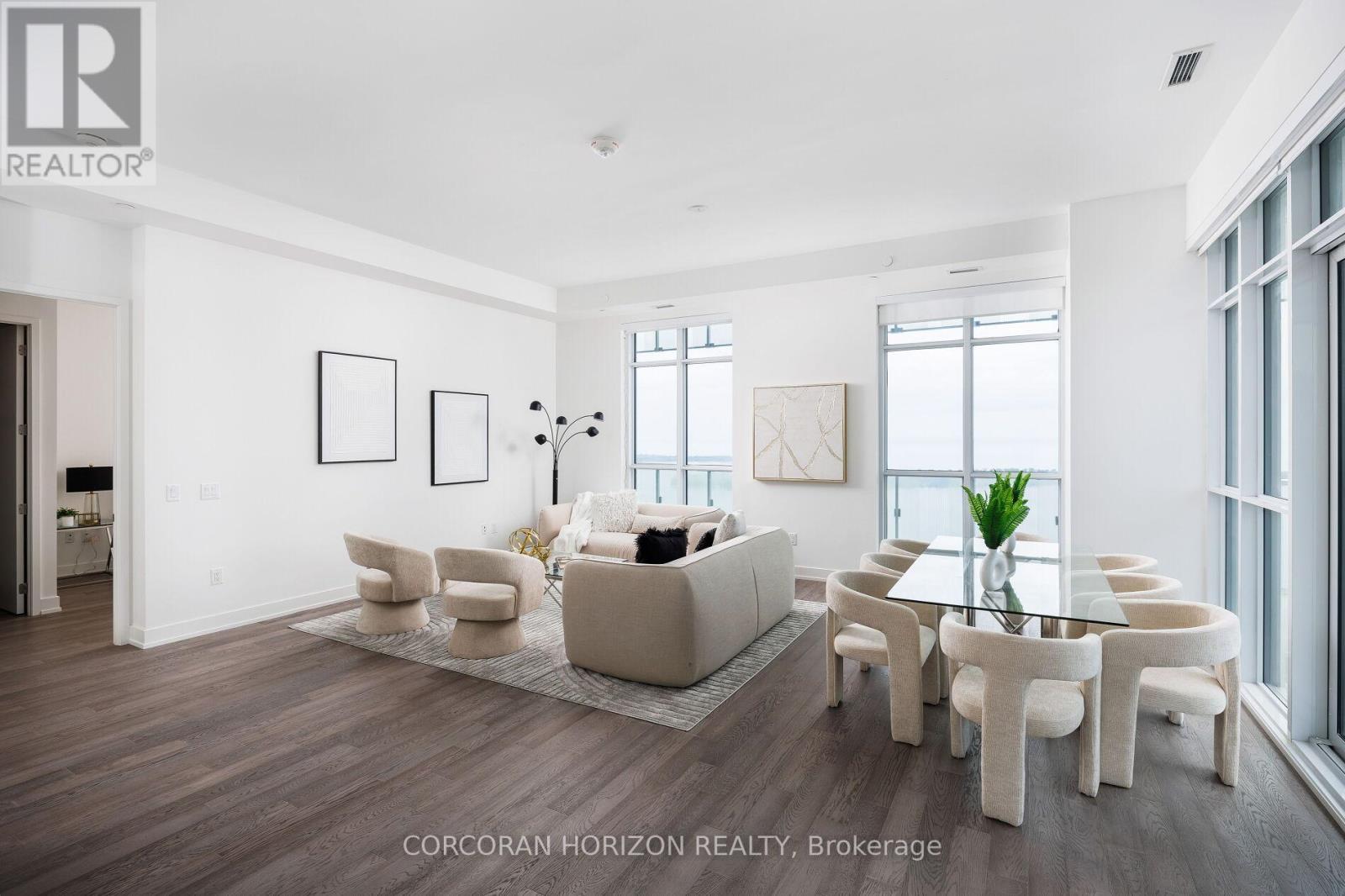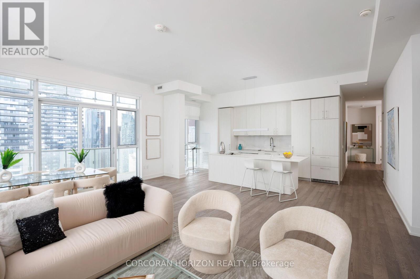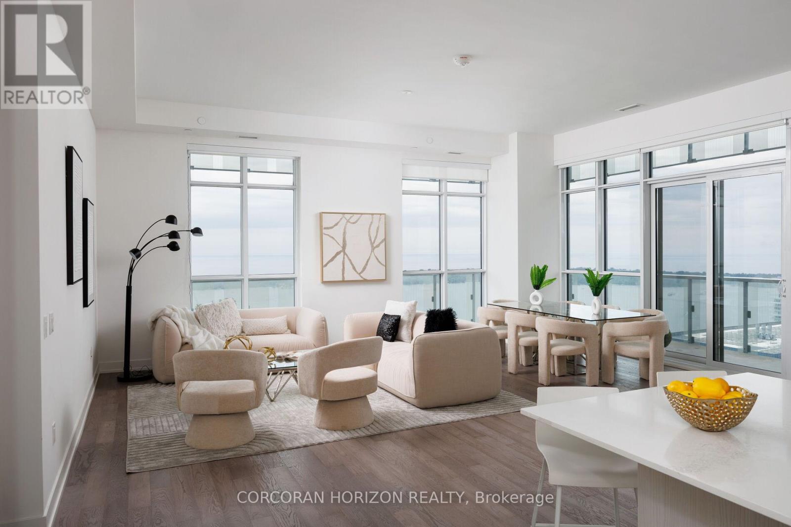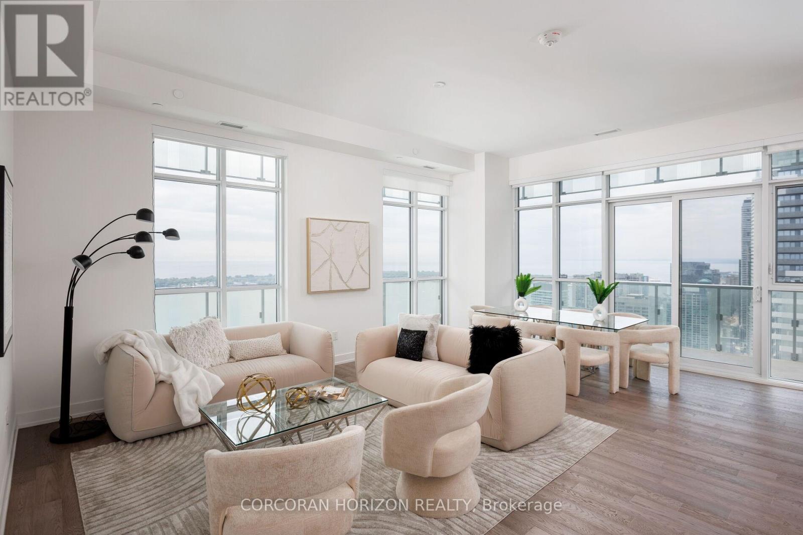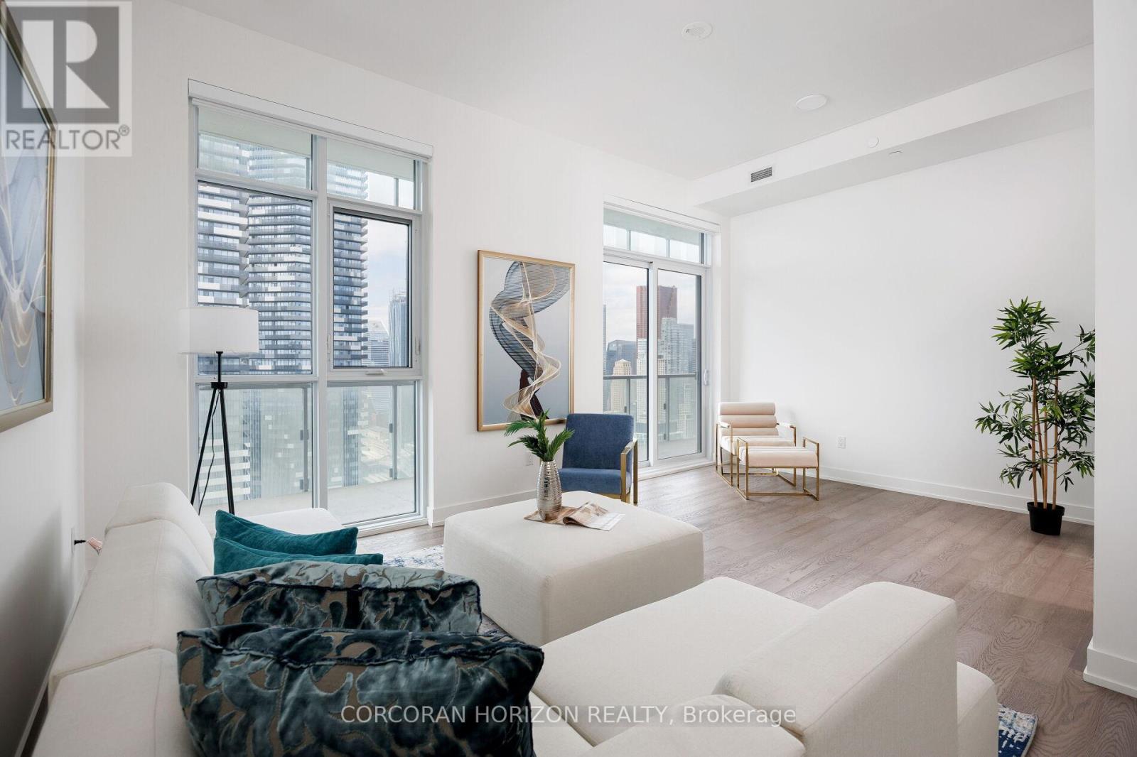 Peeking over top of Sugar Beach, this 4 bedroom Sub-penthouse boasts almost 2,400 square feet of shimmering lakefront views! With 11 foot ceilings, you'll step into a stunning space with an incredibly airy floor plan. The open concept living, dining and kitchen are surrounded by floor to ceiling windows and open to the expansive wrap around balcony. The primary bedroom is very private and features a 5 piece ensuite & his and her closets with plenty of storage. The second bedroom has a walk out to the balcony and a large walk-in closet and the third bedroom can be used as a large family room or office. The fourth bedroom has incredible south facing views and is equipped with a 5 piece ensuite and large walk in closet. A 4 piece washroom and large laundry room complete this spectacular unit. Live a lifestyle of luxury in a waterfront sub-penthouse with amenities that rival 5-star hotels. Outdoor pool, Sports lounge, Gym, Basketball/Tennis court, Jam studio with access to instruments, Arts & Crafts studio, Family/Kids playroom, Steam sauna, Yoga room, Garden blocks, BBQ, Party room and Movie lounge. Minutes to water taxis, Sugar beach, groceries, entertainment, Scotiabank Arena, Union Station, Parks, Transit & More! (id:64974)