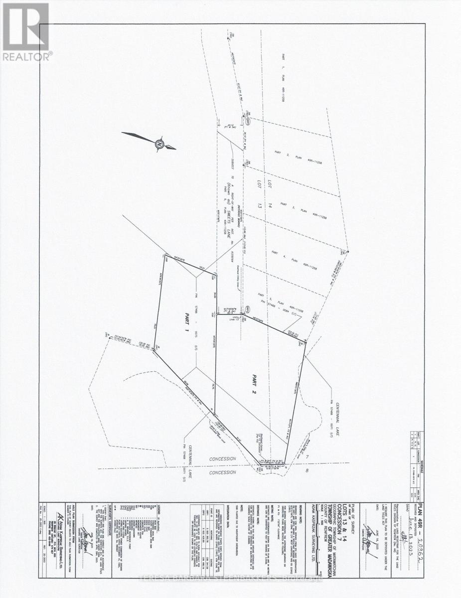 This is a newly approved lot severance with 183' of PRIME stunning, peaceful WATERFRONT on Centennial Lake, accessed by a private road with a deeded R.O.W, off a well-maintained county road. This is a unique opportunity to enjoy recreational living on this highly desirable, clean, large lake, offering miles of great boating for both large and small watercraft, ready to explore countless bays and inlets for great fishing and scenic terrain in a natural setting. Enjoy year round activities including the Calabogie Peaks Ski Hill, Highlands 18 Hole golf course, world-class Calabogie Motorsports Events and yes, hundreds of kms of public trails for hiking, biking and snowmobile trails for families of all ages to enjoy. The lot is just over an Acre with Hydro available, and the waterfront features outstanding views of the lake. The village of Calabogie offers lots of local shopping incl groceries, pharmacy, hardware store, gas stations as well as a local school and library. This property does not have pin or roll numbers yet and is not yet assessed for taxes. Seller requests that interested parties do not walk on the property without an appointment through their Realtor. The Listing Broker is related directly to the Seller and requests that you have your Realtor contact the Listing Broker for full information on visiting the property. See Offer remarks following including that the Buyer's deposit shall be held by the Seller's lawyer and that all offers require a minimum 48 hours irrevocable, HST is in addition to the sales price. Survey is in photos but can send separately upon request . (id:64974)