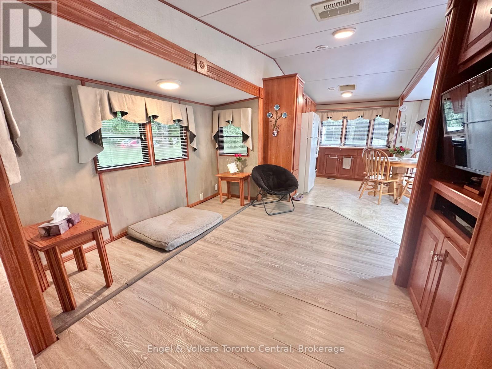Get ready for your 2026 summer! This 1-bedroom 2006 General Coach 38 1BFK park model, a very roomy and bright unit, is the perfect place to spend next season. The extra-wide kitchen with a vaulted-ceiling eating area tip-out offers lots of cabinets for all your storage needs and a roomy place to seat your dinner guests. The living room offers a built-in entertainment area with a TV and a pull-out couch for your guest to comfortably stay. The bedroom also has a wall-to-wall closet with built-in shelves. Sit under the hard awning and listen to the nature that surrounds you on this great lot located on a dead-end street, or enjoy a campfire in the evenings with friends. This unit is located in the SEASONAL section of Spring Valley Resort and opens the second weekend of May and closes the third weekend of October. The resort offers 2 pools (1 adult and 1 family), mini-putt, a horseshoe club, a beach area, a lake to swim in, a rec center, and rec programs for both children and adults. Call to book your viewing today! The fees for the 2026 season are $4,595.00. Note: Includes everything but your propane, hydro, and Internet if you choose to install it. There are no additional fees for water, property, taxes, visitors to the resort, etc. (id:64974)
