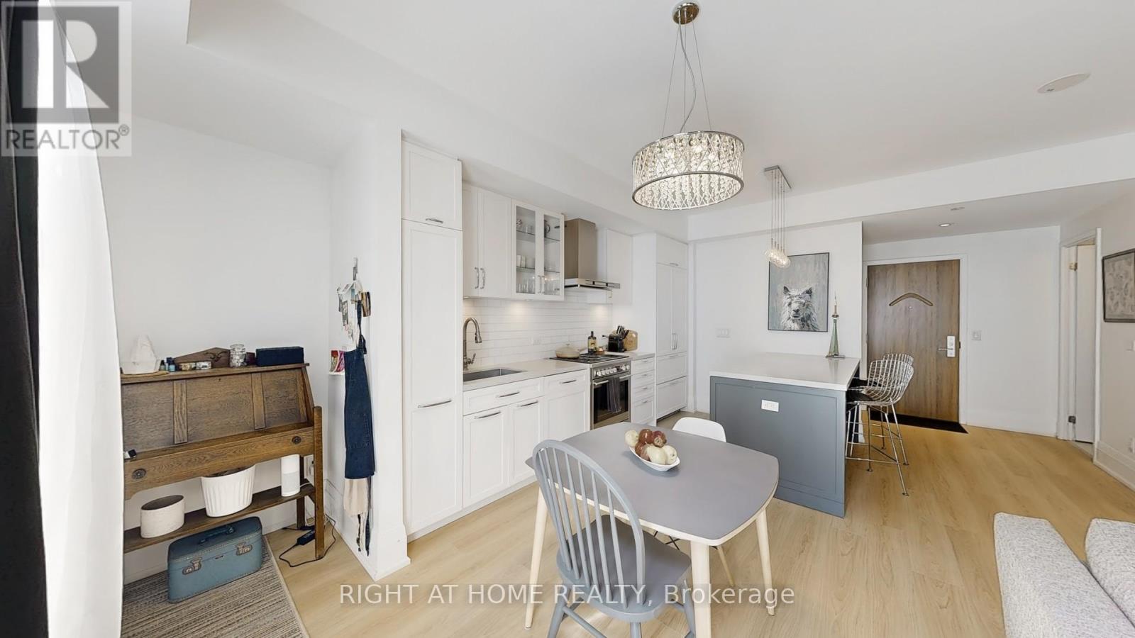 Elevated living at The Upper House in Leaside. This rare two-storey condo townhome offers 1,158 sq ft of refined interior space plus a 98 sq ft private terrace complete with a BBQ gas line and water hookup. Soaring 10 ft ceilings and a thoughtfully designed open-concept layout create a bright, expansive feel throughout. The chef-inspired kitchen features stone countertops and a built-in wine fridge, perfect for entertaining or elevated everyday living. Two spacious bedrooms, three spa-like bathrooms, and one parking space with an EV charger provide both comfort and convenience. Enjoy premium building amenities including 24-hour concierge, fully equipped fitness centre, elegant party room, and a dedicated dog spa. A sophisticated lifestyle awaits in the heart of Leaside, steps to shops, dining, and transit. (id:64974)