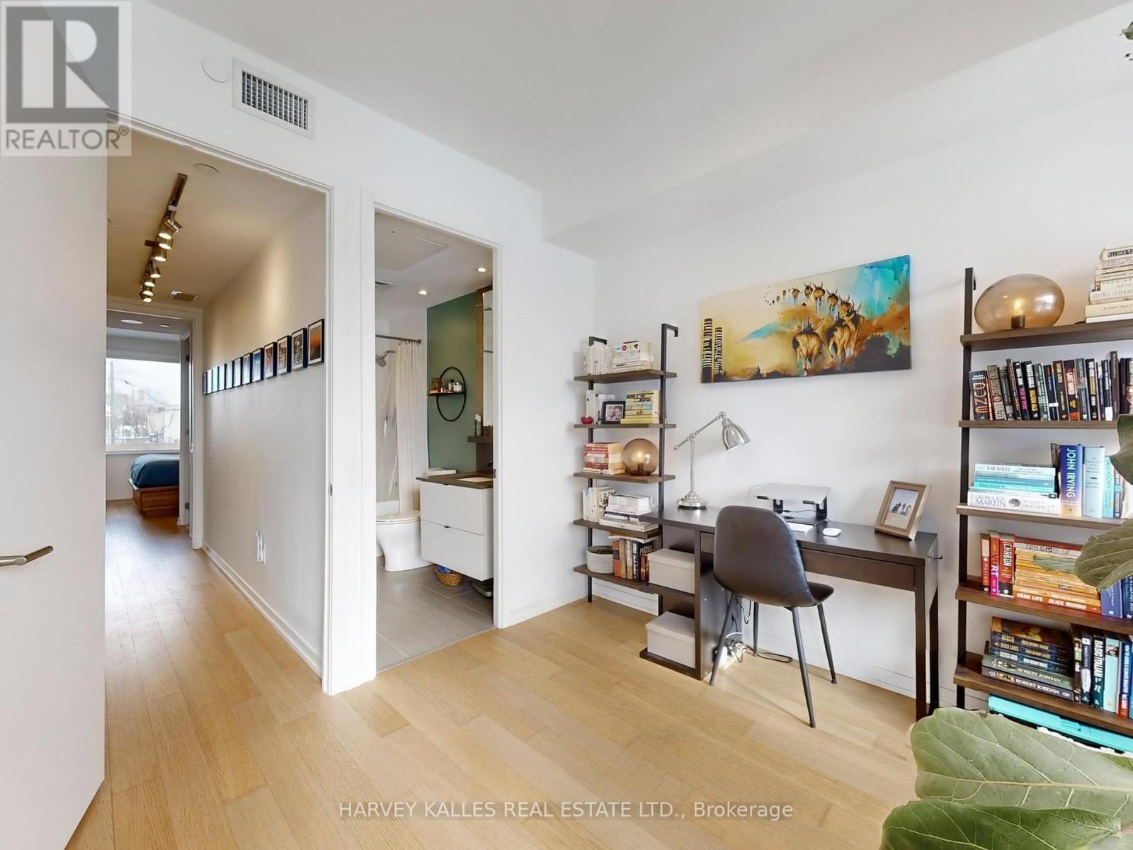 Welcome to Enigma on the Park, a stylish townhouse in the heart of trendy Brockton Village. This bright and beautifully designed 2-bedroom, 3-bathroom home offers 1,115 sq ft of thoughtfully planned living space with an open-concept layout, 9' ceilings, and hardwood flooring throughout. A striking reclaimed brick feature wall adds character and warmth, while the sun-filled south exposure and serene views of MacGregor Park create an inviting atmosphere. Enjoy exceptional outdoor living with an inviting main level patio and a spacious second-level terrace, perfect for entertaining or relaxing. Just steps to TTC transit, Dundas West, Roncesvalles, Parkdale, Sorauren Park, Dufferin Mall, and the UP Express, with vibrant bars and restaurants at your doorstep. Parking and locker included. A rare opportunity offering style, space, and location, you won't want to miss this one. (id:65010)