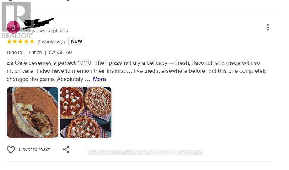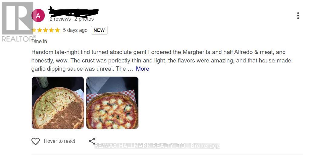 A rare, highly profitable pizzeria opportunity has just hit the market - this one won't last! This turnkey gourmet pizzeria in the heart of Mississauga is a well-established, fully operating business known for its authentic Italian, stone-oven pizzas crafted with true Neapolitan quality. With exceptional online ratings - 4.5 on Google (600+ reviews), 4.4 on Uber Eats (4,000+ reviews), and 4.5 on TripAdvisor - the restaurant enjoys a loyal customer base, steady daily sales and high annual gross revenue with strong profit margins. The current owner is selling only due to leaving the country, making this a smooth takeover for a new owner, family operator, or investor seeking a low-risk, profitable business. Ideally located on busy Derry Road, it benefits from heavy foot traffic, excellent visibility, and constant exposure from the neighboring Esso Gas Station, while being surrounded by residential neighbourhoods, commercial hubs, Pearson Airport, and major highways (410, 407, 401). The approx. 1,400 sq. ft. space, with 6+ outdoor parking spots at the back of the store, is fully equipped and includes all furniture, chattels, machines, and commercial kitchen equipment, allowing immediate operation. The layout supports dine-in, takeout, and high-volume delivery, with room to expand seating or enhance the menu for further growth, including catering and extended hours. Current monthly rent is $4,000 plus $1,000 TMI, with water included and tenant paying only hydro and gas. With 3 years remaining on the lease and a 5-year renewal option, this is a stable, long-term opportunity to own a top-rated, in-demand, turnkey pizzeria in a prime Mississauga location. Whether you're looking to operate hands-on or hire staff and run it semi-passively, this is the perfect opportunity to take over a top-rated, in-demand, high-performing pizzeria in Mississauga with proven success, strong brand recognition, and remarkable growth potential. (id:64974)