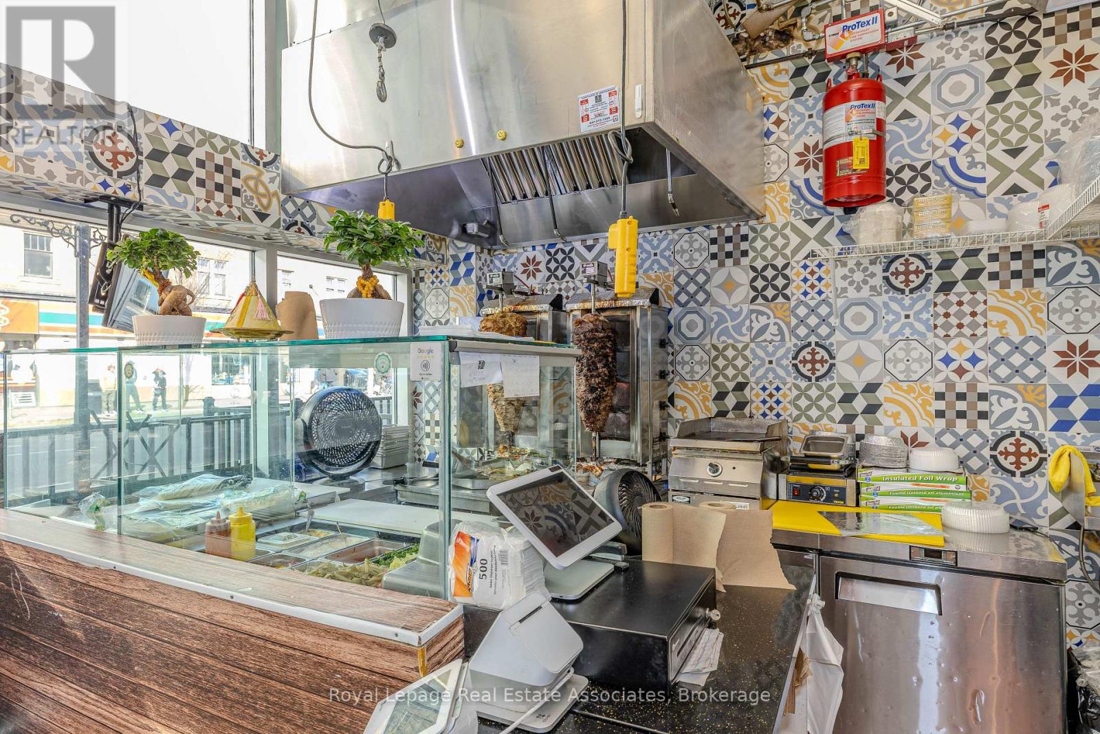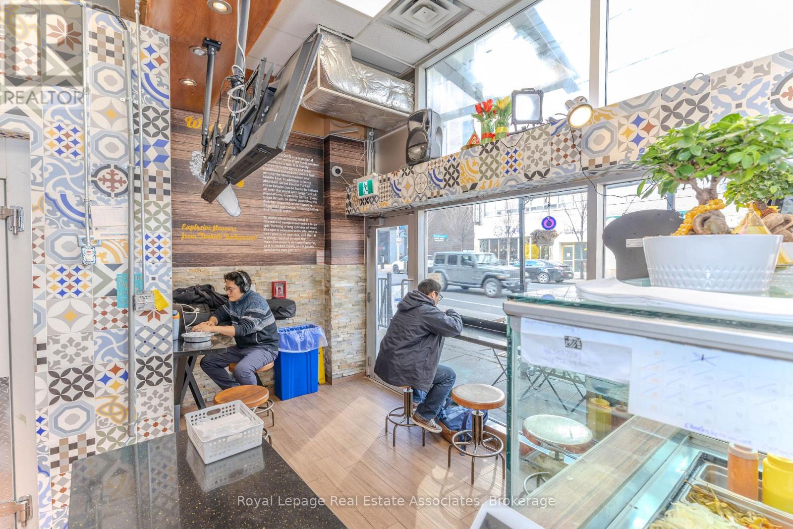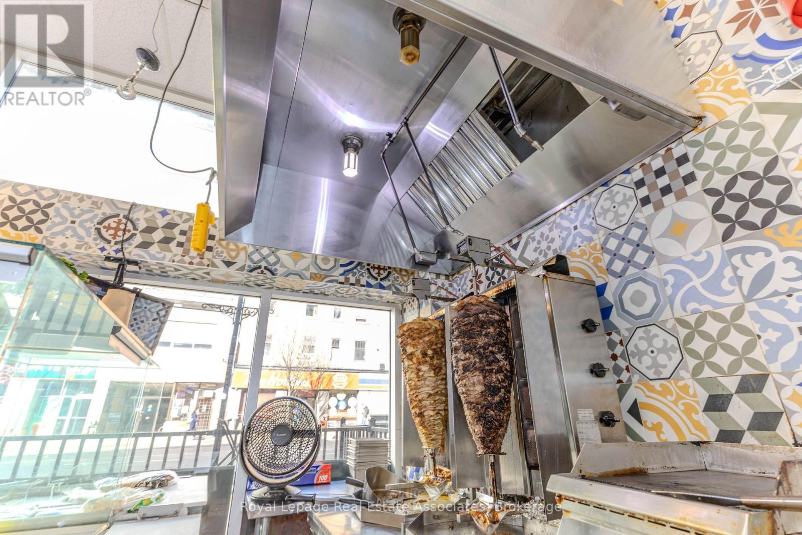 Prime turnkey fast-food opportunity in one of Toronto's busiest high-foot-traffic corridors, surrounded by nonstop university pedestrian flow-ideal for a flagship location or an operator looking to expand. Currently a shawarma shop but fully adaptable to any cuisine, the space comes equipped with two commercial hoods, a walk-in cooler, ample storage, and a patio with potential to extend. Utilities include hydro and gas, with daily garbage pickup provided, making operations smooth and efficient. A rare, high-visibility opportunity to launch or expand your brand in a thriving Toronto hotspot. (id:64974)