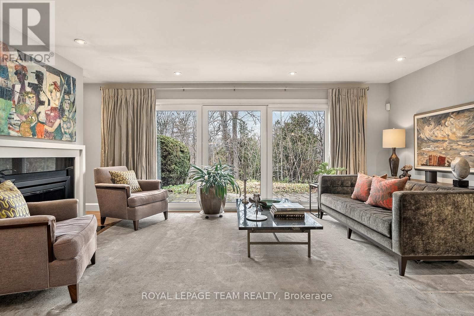 Welcome to Park House, an exclusive enclave within Rockcliffe Park's Carter-Caldwell Conservation Area. Meticulously designed by an Australian architect of extraordinary thought and precision, this one-level residence balances refined design with natural serenity. A grand entry, crowned by a sculptural chandelier and mirrored wall, opens to luminous living and dining spaces of quiet elegance, anchored by a wood-burning fireplace. Maple floors, halogen-quartz lighting, and premium dimmers shape ambiance at every hour. The beloved family room and adjoining terrace - with interlock stone and under-patio lighting - invite long evenings beneath the trees beside The Pond. The kitchen is a study in function and beauty with pull-outs, layered lighting, multiple deep sinks and expansive counter space. A tranquil library/office, generous guest suite, and vast primary offer calm and comfort. Distinguished residents of Whitemarl enjoy a private conservation-area enclave minutes from Beechwood Village, within Rockcliffe Park - refined living at its most effortless and serene. (id:64974)