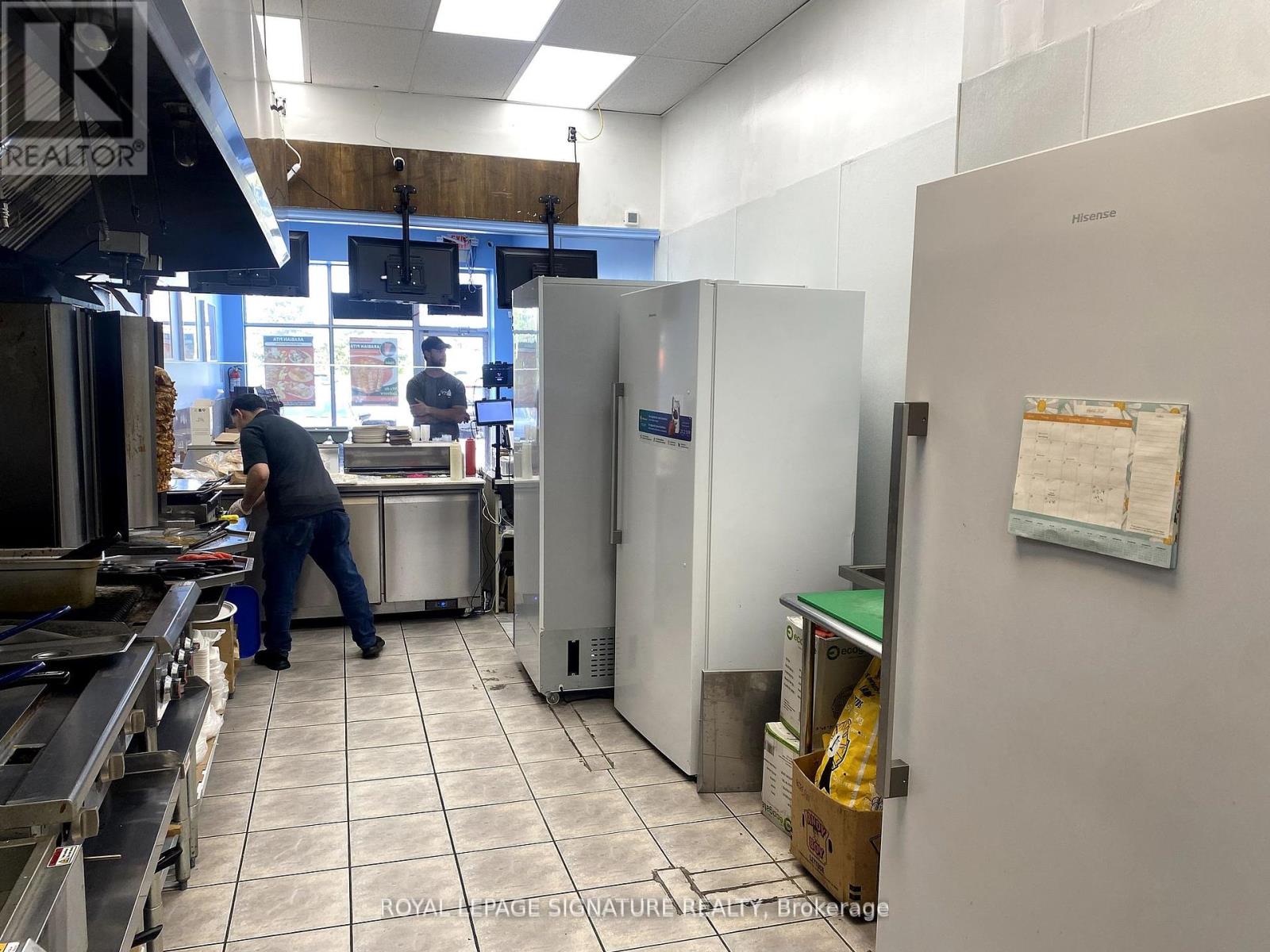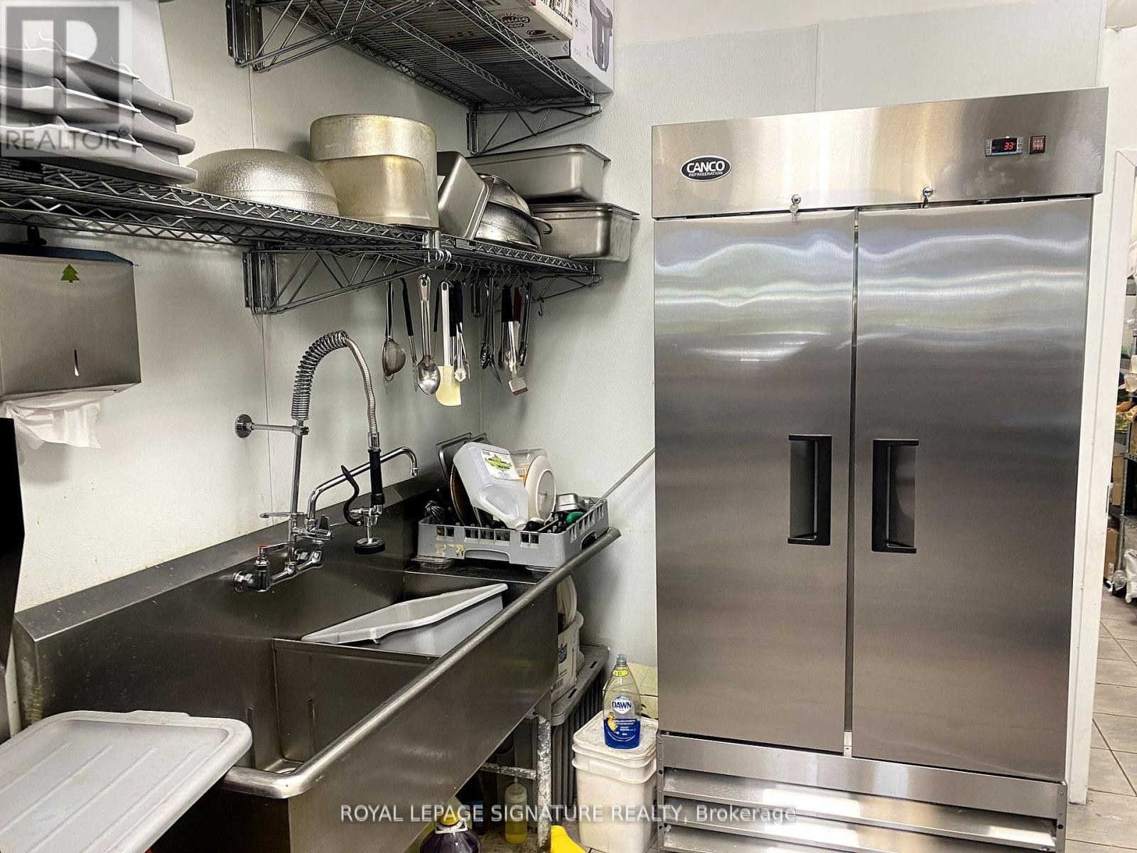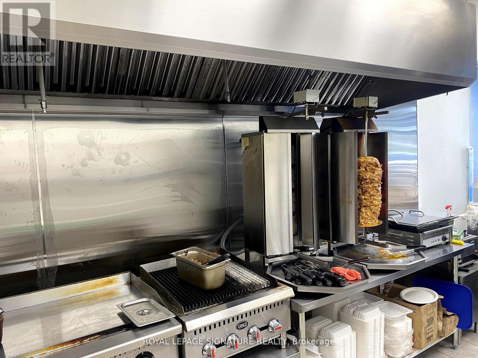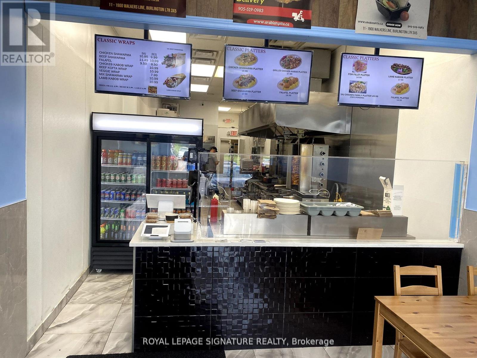 Turnkey ~878.27 sq ft restaurant available in a high-traffic Burlington plaza with prime exposure both within the plaza and direct visibility to the street. Built out in 2024 with a fully equipped kitchen and all chattels installed mid-2024, this unit is ready for immediate operation. Rebranding is permitted, making it ideal for launching your own concept or bringing in a franchise. The current lease runs until 2027 with two additional 5-year renewal options, and the monthly rent is ~$3,290 (TMI included). Surrounded by residential and commercial density, this is a rare and affordable opportunity for a professional food service setup in a rapidly growing area. (id:64974)