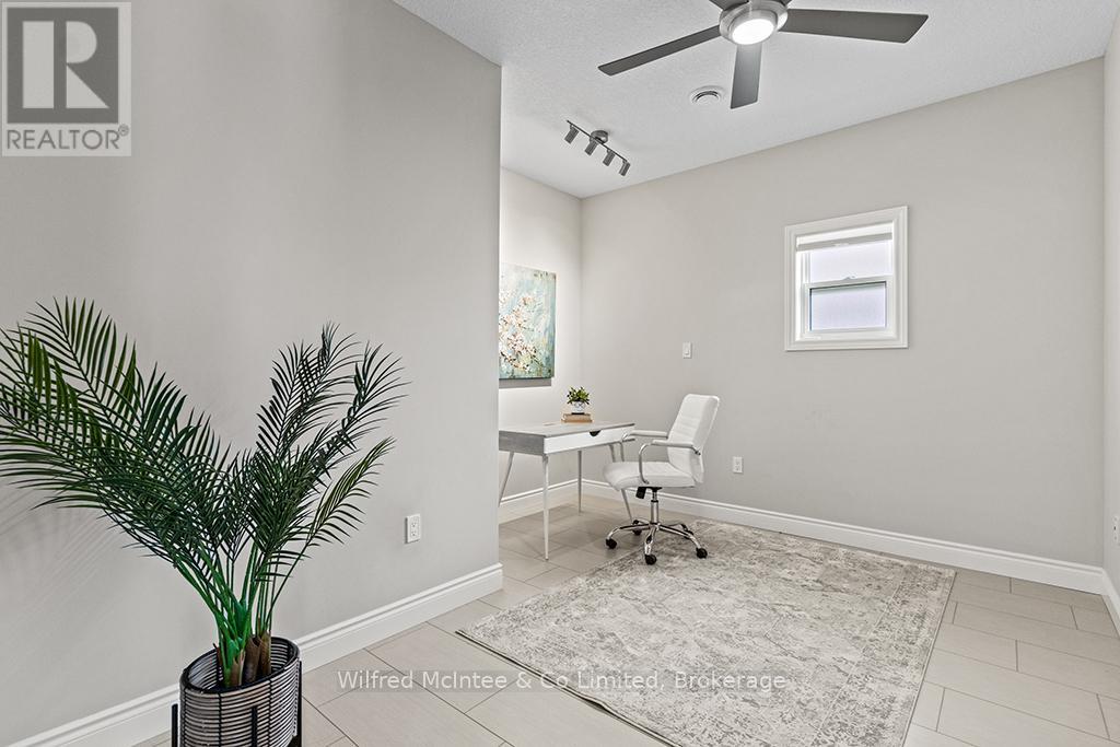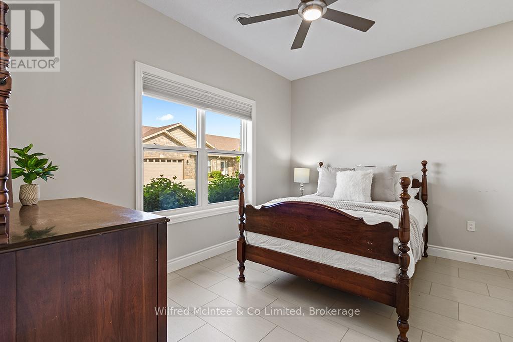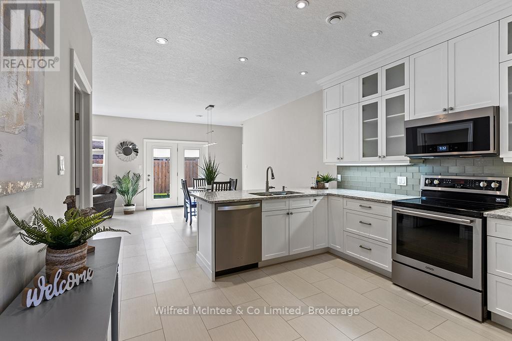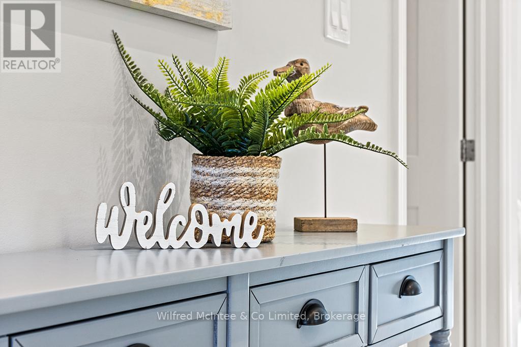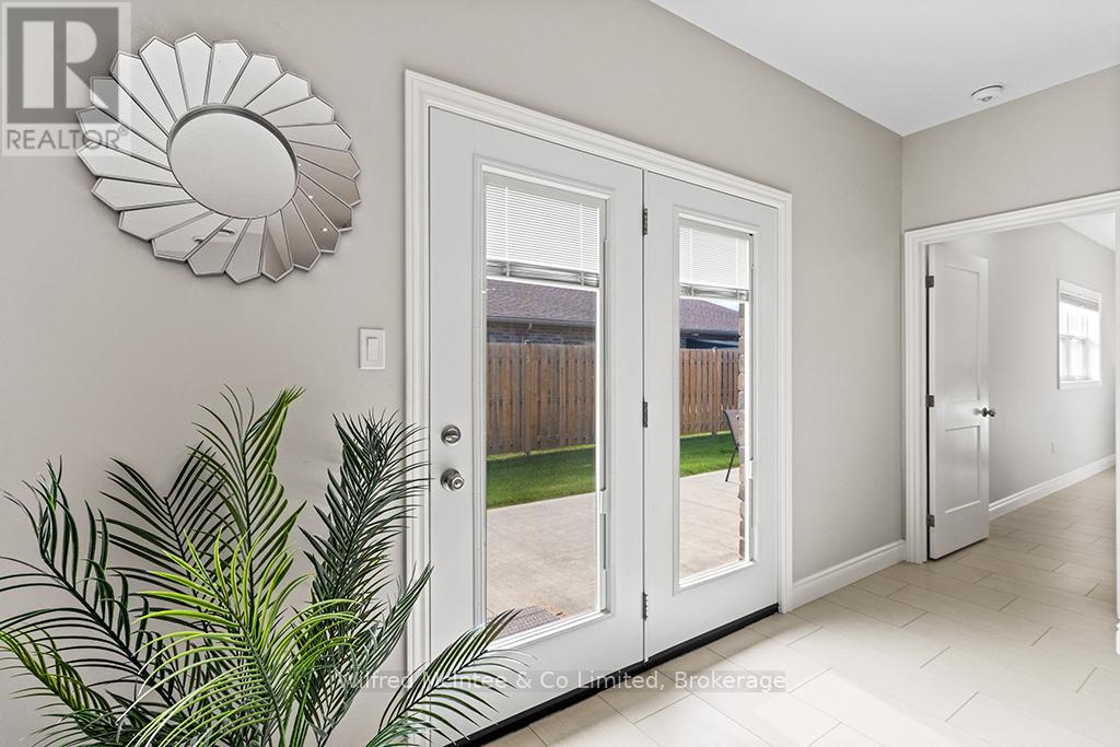 Enjoy refined living at 246 Grey St - Unit 32, a stunning end-unit townhome in the sought-after Grenville Estates condo community in Southampton. This single-level bungalow seamlessly blends modern features with thoughtful design, offering a spacious one level layout perfect for relaxed low maintanance living. The open-concept main living area welcomes you with 9-foot ceilings, recessed lighting, and plenty of windows that flood the space with natural light. The heart of the home is an elegant kitchen, featuring timeless white shaker cabinets to the ceiling, luxurious quartz countertops, stainless steel appliances (with hook up for a gas stove), and a breakfast peninsula ideal for casual dining. The adjacent dining area comfortably accommodates a larger dining set and hutch, while the living room exudes warmth with a contemporary wall-mounted gas fireplace, creating a cozy yet modern ambiance. Patio doors lead to an impressive 10ft x 48ft concrete patio, complete with gas BBQ and fire bowl hookups. The primary bedroom offers his-and-hers closets and a generous ensuite bathroom with a spacious shower, ample cabinetry, matching quartz countertops, and in-suite laundry. A bright second bedroom, a versatile den/studio, 3-piece bathroom, and foyer with large closet and convenient access to the double-attached garage complete the living space. This condo was built with many upgrades in mind and has plenty of noteworthy features, including a heated double garage with a utility sink and extra insulation, a concrete driveway with parking for two vehicles, in-floor radiant heat throughout, central air conditioning, and a stylish long lasting stone/brick exterior. This lovely condo community is tucked away in quiet area of town yet close enough to all the towns amenities, whether it be a short bike ride downtown or a leisurely stroll to the beach. You will appreciate the pride of ownership that is shown throughout the home and the community. (id:64974)