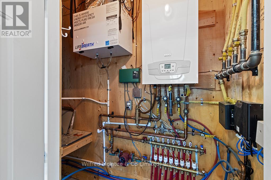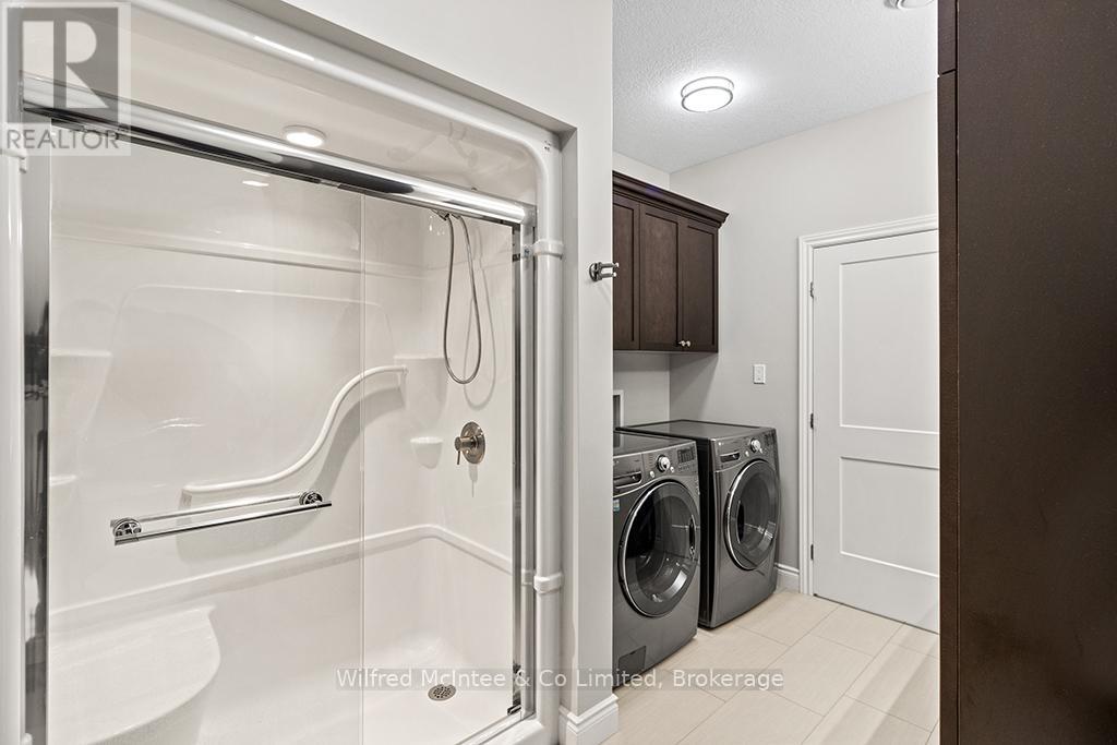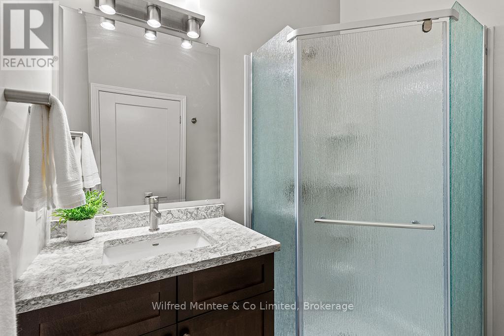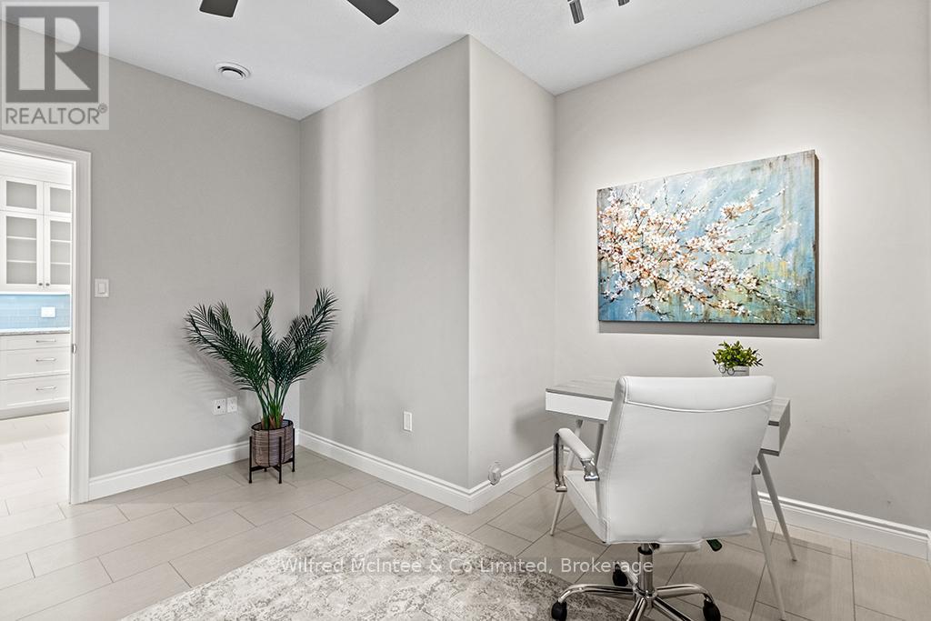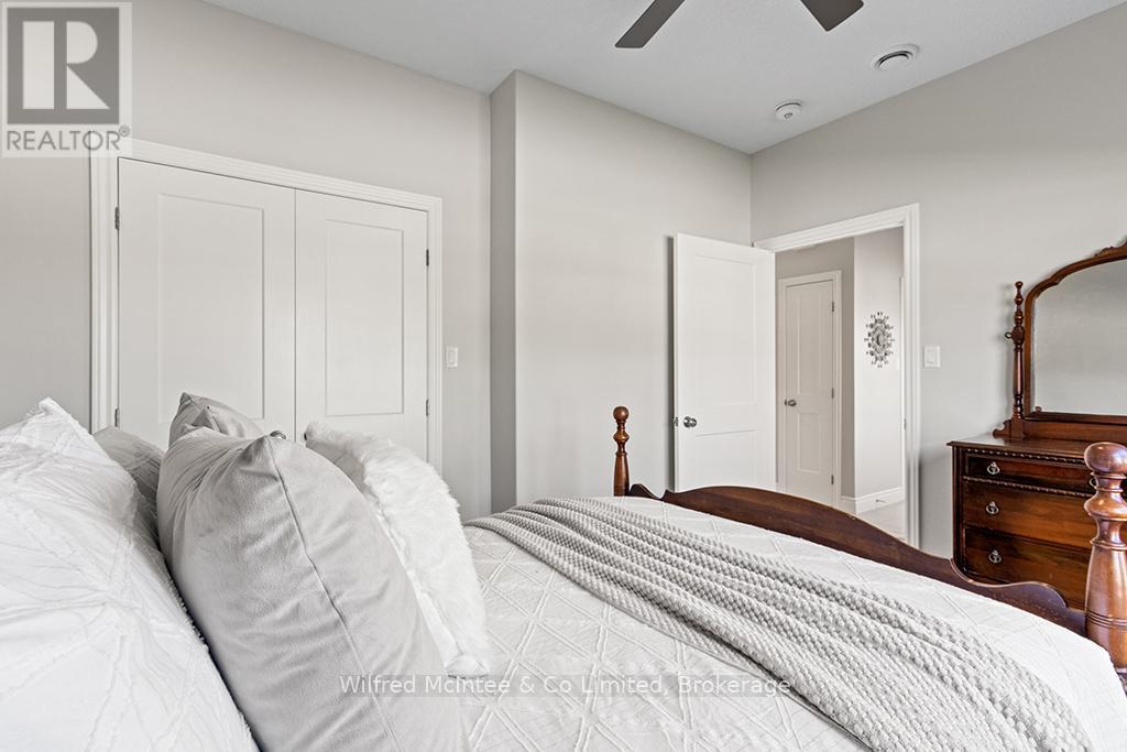 Enjoy refined living at 246 Grey St - Unit 32, a stunning end-unit townhome in the sought-after Grenville Estates condo community in Southampton. This single-level bungalow seamlessly blends modern features with thoughtful design, offering a spacious one level layout perfect for relaxed low maintanance living. The open-concept main living area welcomes you with 9-foot ceilings, recessed lighting, and plenty of windows that flood the space with natural light. The heart of the home is an elegant kitchen, featuring timeless white shaker cabinets to the ceiling, luxurious quartz countertops, stainless steel appliances (with hook up for a gas stove), and a breakfast peninsula ideal for casual dining. The adjacent dining area comfortably accommodates a larger dining set and hutch, while the living room exudes warmth with a contemporary wall-mounted gas fireplace, creating a cozy yet modern ambiance. Patio doors lead to an impressive 10ft x 48ft concrete patio, complete with gas BBQ and fire bowl hookups. The primary bedroom offers his-and-hers closets and a generous ensuite bathroom with a spacious shower, ample cabinetry, matching quartz countertops, and in-suite laundry. A bright second bedroom, a versatile den/studio, 3-piece bathroom, and foyer with large closet and convenient access to the double-attached garage complete the living space. This condo was built with many upgrades in mind and has plenty of noteworthy features, including a heated double garage with a utility sink and extra insulation, a concrete driveway with parking for two vehicles, in-floor radiant heat throughout, central air conditioning, and a stylish long lasting stone/brick exterior. This lovely condo community is tucked away in quiet area of town yet close enough to all the towns amenities, whether it be a short bike ride downtown or a leisurely stroll to the beach. You will appreciate the pride of ownership that is shown throughout the home and the community. (id:64974)