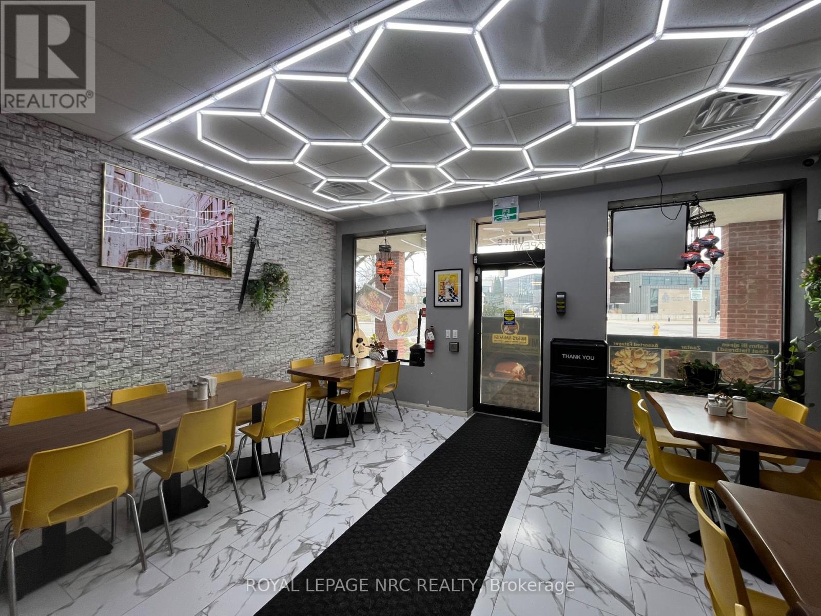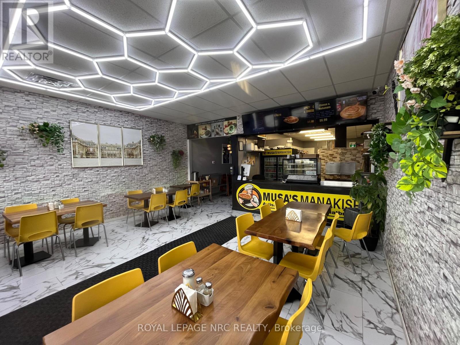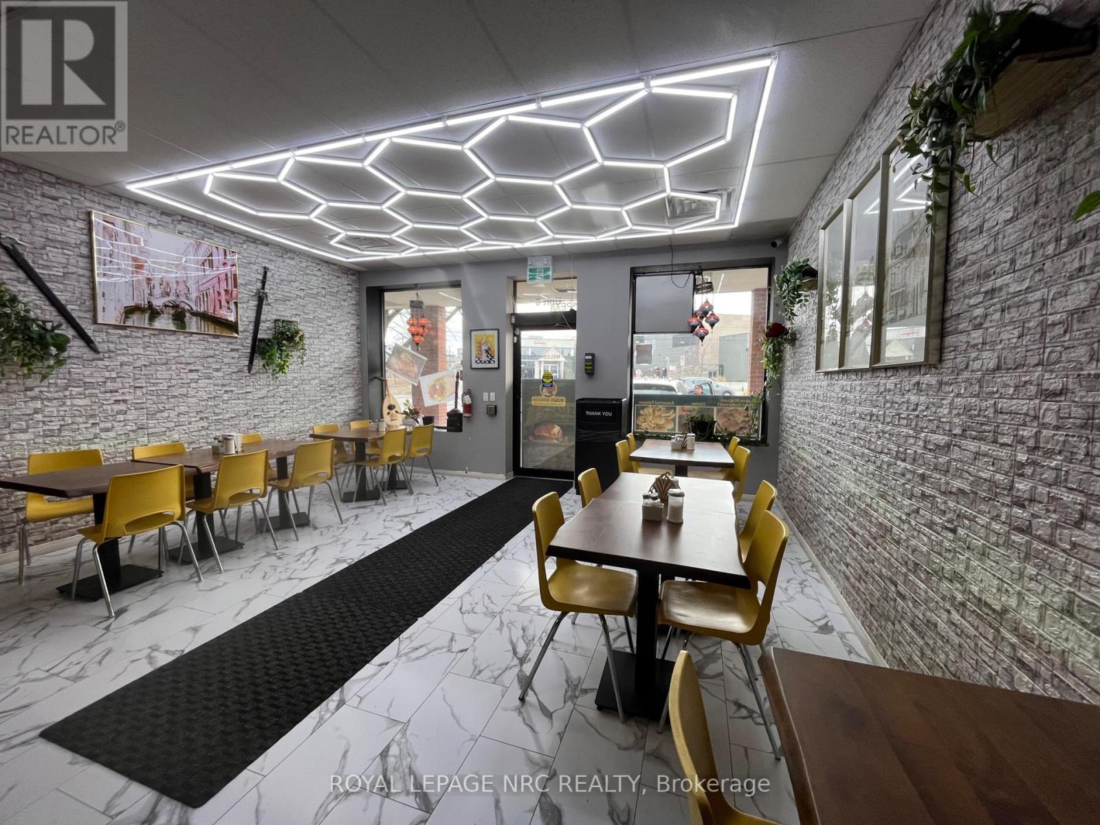 Excellent opportunity to acquire a well established Middle Eastern restaurant in a busy commercial plaza in St. Catharines. This turnkey operation specializes in authentic Middle Eastern cuisine including freshly baked manakish, flatbreads, and traditional Mediterranean dishes, attracting both dine in and takeout customers.The restaurant features a beautifully finished dining area with modern lighting, stylish seating, and a welcoming atmosphere, along with a fully equipped commercial kitchen highlighted by a stone Middle Eastern oven ideal for baking fresh manakish and flatbreads.Efficient layout with storefront exposure and ample plaza parking for customers. Excellent visibility and steady traffic make this an ideal opportunity for an owner operator or experienced restaurateur looking to continue or expand a successful concept. (id:64974)