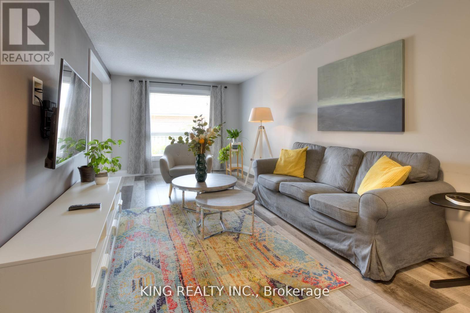 This fully finished freehold home is located just minutes from shopping, transit, and the University of Waterloo. It offers a generous parking area and stands out from other properties. Inside, you'll find a stylish foyer with modern farmhouse flooring and neutral colors. The kitchen is sleek, with white cabinets, subway tile, and newer appliances. The spacious living room connects to the dining area and has a sliding door leading to a covered back porch, ideal for relaxing outdoors. Upstairs, there are three bright bedrooms and an updated bathroom with a deep soaker tub. (id:64974)
