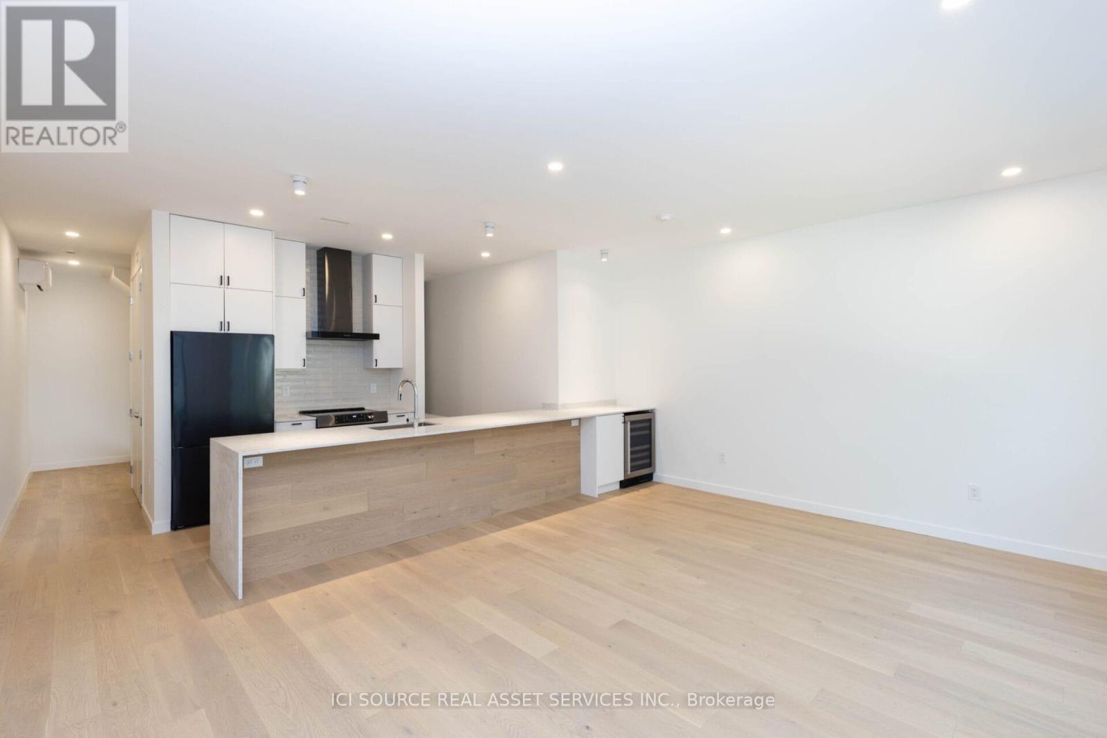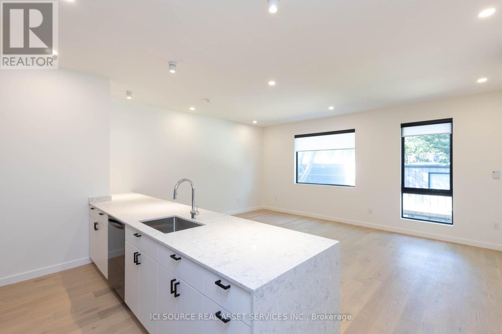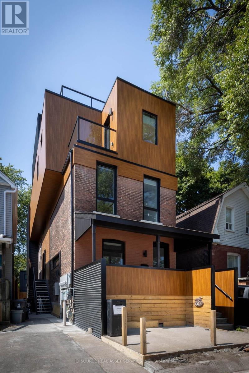 Spanning approximately 1,550 square feet across multiple levels, this newly built (2023) residence at 60 Jones offers a rare balance of architectural design and genuinely livable space. Developed by Bicycle Properties as a purpose-built rental, the home is thoughtfully laid out to provide both openness and separation. The main level features a generous open-concept living and kitchen area with an oversized island, full-height cabinetry, and integrated storage. Clean lines, wide-plank flooring, and 10' ceilings create a calm, cohesive interior, while large west-facing windows bring in soft afternoon light and treetop views. Upper levels provide well-defined bedroom spaces with built-in storage and a refined ensuite, all culminating in a private rooftop terrace that extends the living space outdoors. Features: Layout & Space. Approx. 1,550 sq ft across multiple levels. 2 bedrooms, 3 bathrooms. Designed for both openness and privacy. 10' ceilings throughout. Kitchen: Oversized island with seating and integrated storage. Full-height cabinetry. Stone countertops. Undermount sink. Wine fridge. Full-size appliances. Living & Finishes: Wide plank wood flooring throughout. Clean, modern architectural detailing. West-facing exposure with treed outlook. Bedrooms: Both bedrooms include built-in closets. One bedroom with full wall of custom storage. Bathrooms: 3 bathrooms total. Ensuite with glass shower and freestanding tub. Additional full bathroom + powder room. *For Additional Property Details Click The Brochure Icon Below* (id:64974)