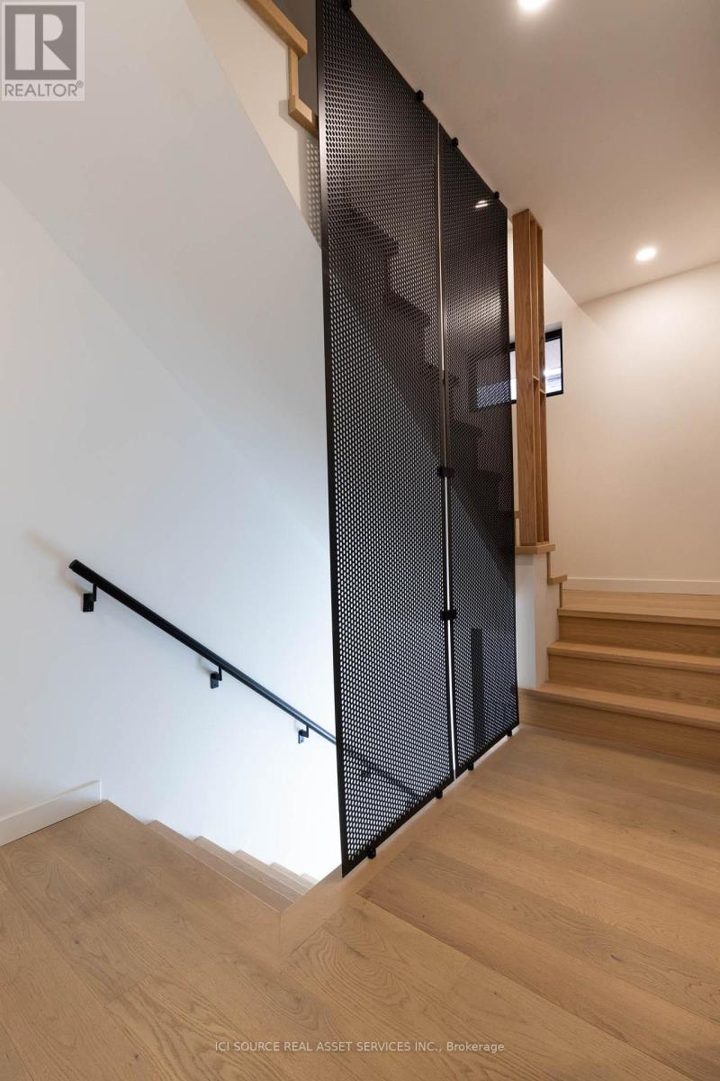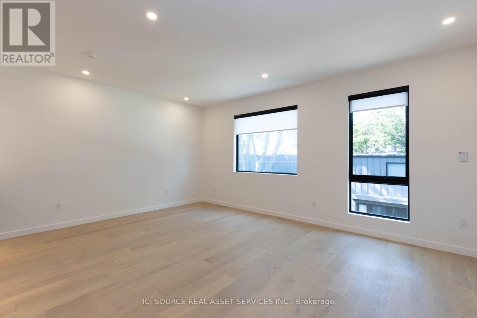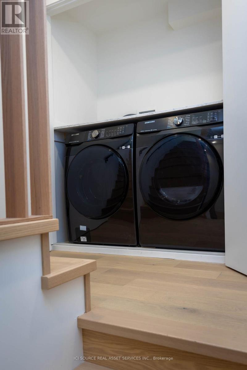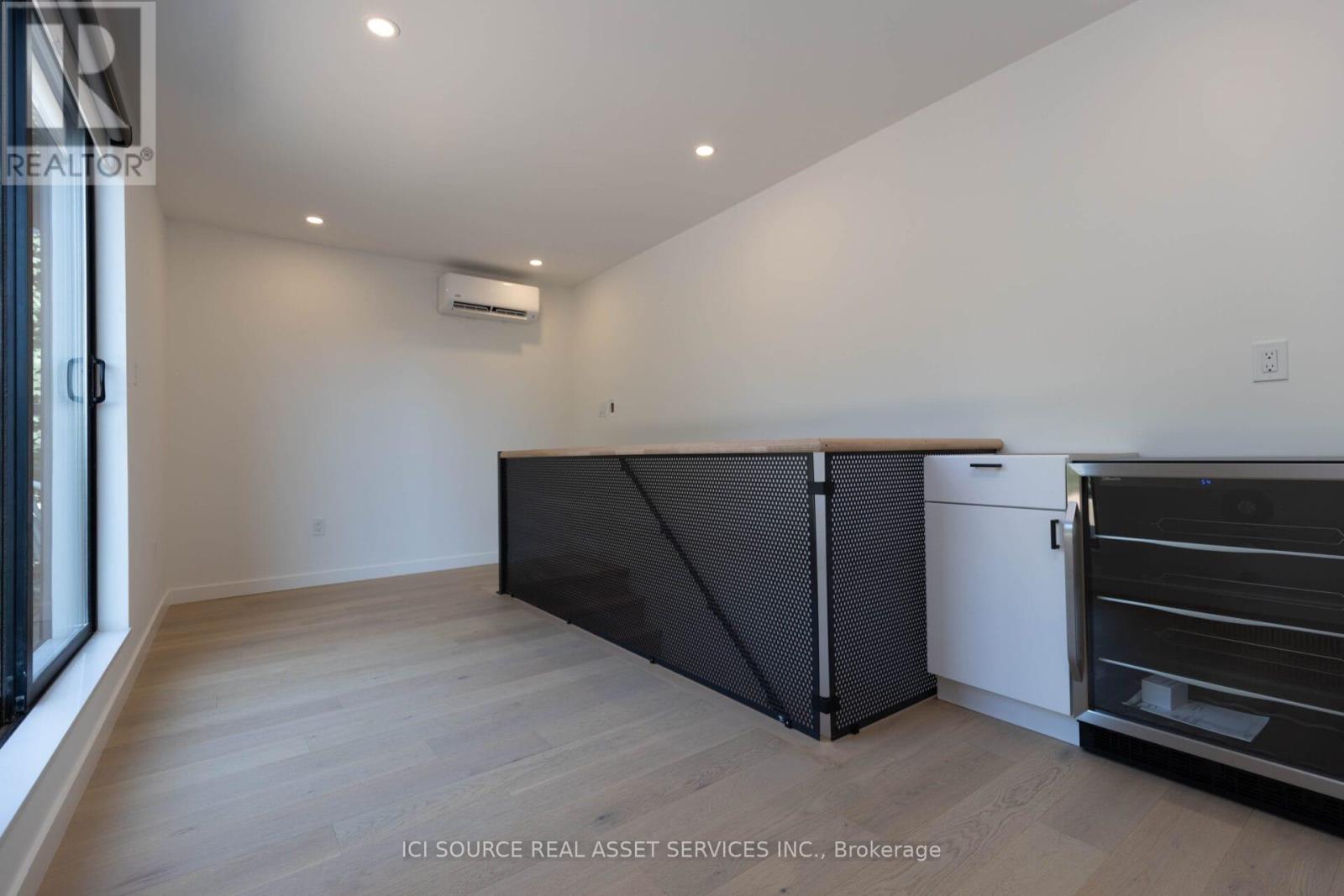 Spanning approximately 1,550 square feet across multiple levels, this newly built (2023) residence at 60 Jones offers a rare balance of architectural design and genuinely livable space. Developed by Bicycle Properties as a purpose-built rental, the home is thoughtfully laid out to provide both openness and separation. The main level features a generous open-concept living and kitchen area with an oversized island, full-height cabinetry, and integrated storage. Clean lines, wide-plank flooring, and 10' ceilings create a calm, cohesive interior, while large west-facing windows bring in soft afternoon light and treetop views. Upper levels provide well-defined bedroom spaces with built-in storage and a refined ensuite, all culminating in a private rooftop terrace that extends the living space outdoors. Features: Layout & Space. Approx. 1,550 sq ft across multiple levels. 2 bedrooms, 3 bathrooms. Designed for both openness and privacy. 10' ceilings throughout. Kitchen: Oversized island with seating and integrated storage. Full-height cabinetry. Stone countertops. Undermount sink. Wine fridge. Full-size appliances. Living & Finishes: Wide plank wood flooring throughout. Clean, modern architectural detailing. West-facing exposure with treed outlook. Bedrooms: Both bedrooms include built-in closets. One bedroom with full wall of custom storage. Bathrooms: 3 bathrooms total. Ensuite with glass shower and freestanding tub. Additional full bathroom + powder room. *For Additional Property Details Click The Brochure Icon Below* (id:64974)