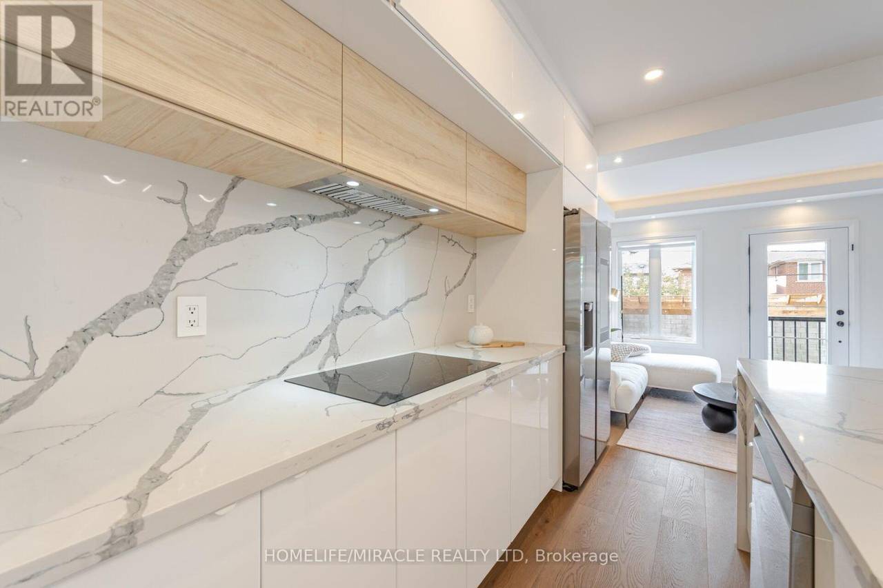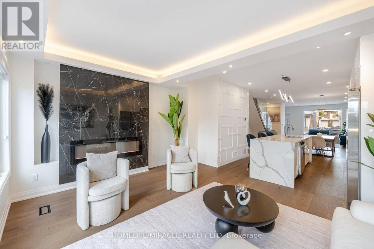 Nestled In The Heart Of Vibrant Oakwood Village Community, This Stunning Fully Custom Designed and Renovated Detached house is available for Lease. Top Quality Finishes And Meticulous Attention To Every Detail. High-End Custom Light & Plumbing Fixtures, Smooth Ceilings Thru-Out and Pot Lights Galore! Heated Washroom Floors upstairs. Main Floor Well Equipped With Spacious Living, Linear Custom Fireplace & Sun-Filled Family Area. Dream kitchen with High end Stainless Appliances Including Electric Range, Built-In Oven, Microwave, Oversized Custom Island With Breakfast Seating, Great Living Functionality With Open Layout, Accent walls in the Dining Area. High Ceilings on Main Floor. Custom Millwork and fireplace, Wide Oak Flooring. (id:64974)
