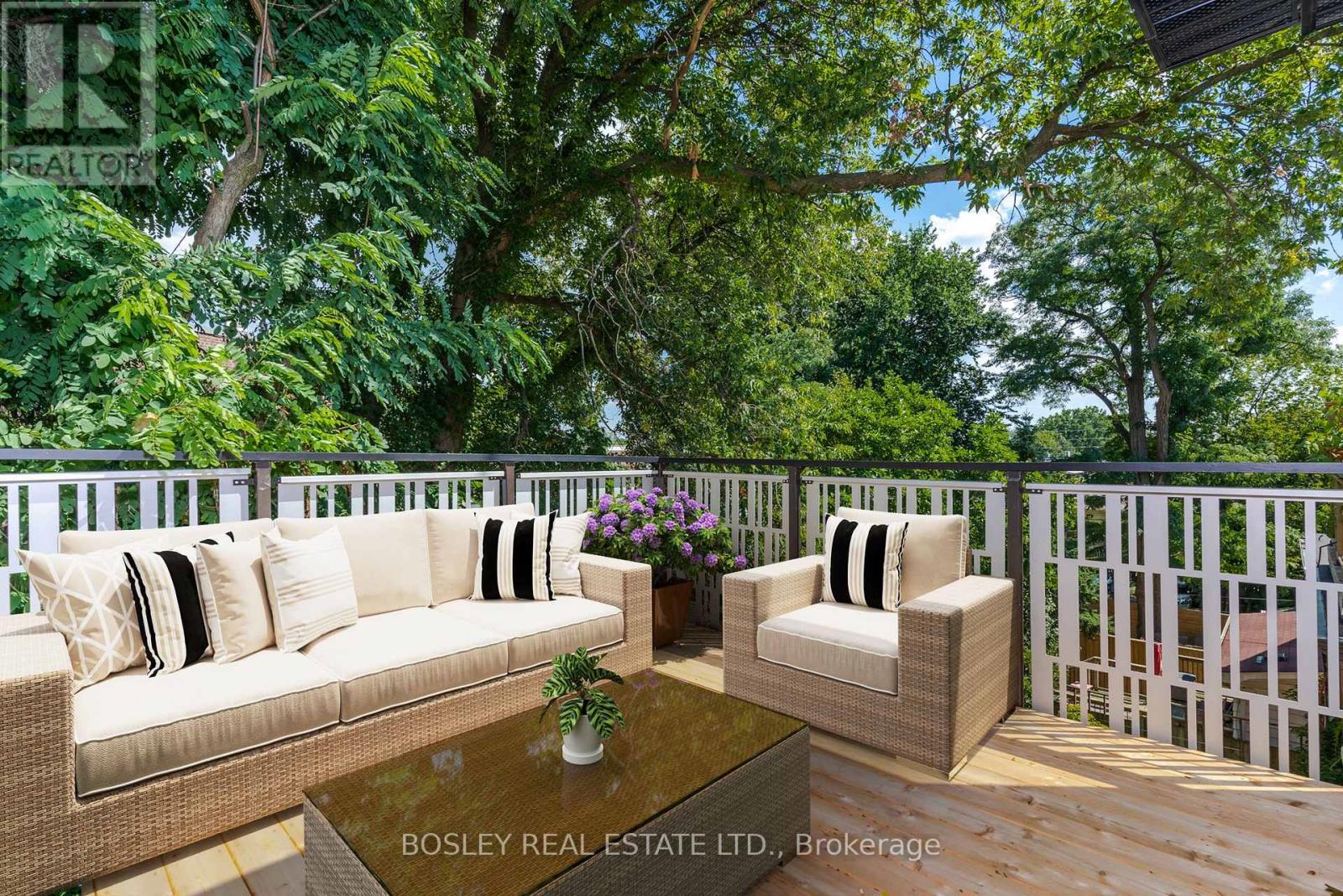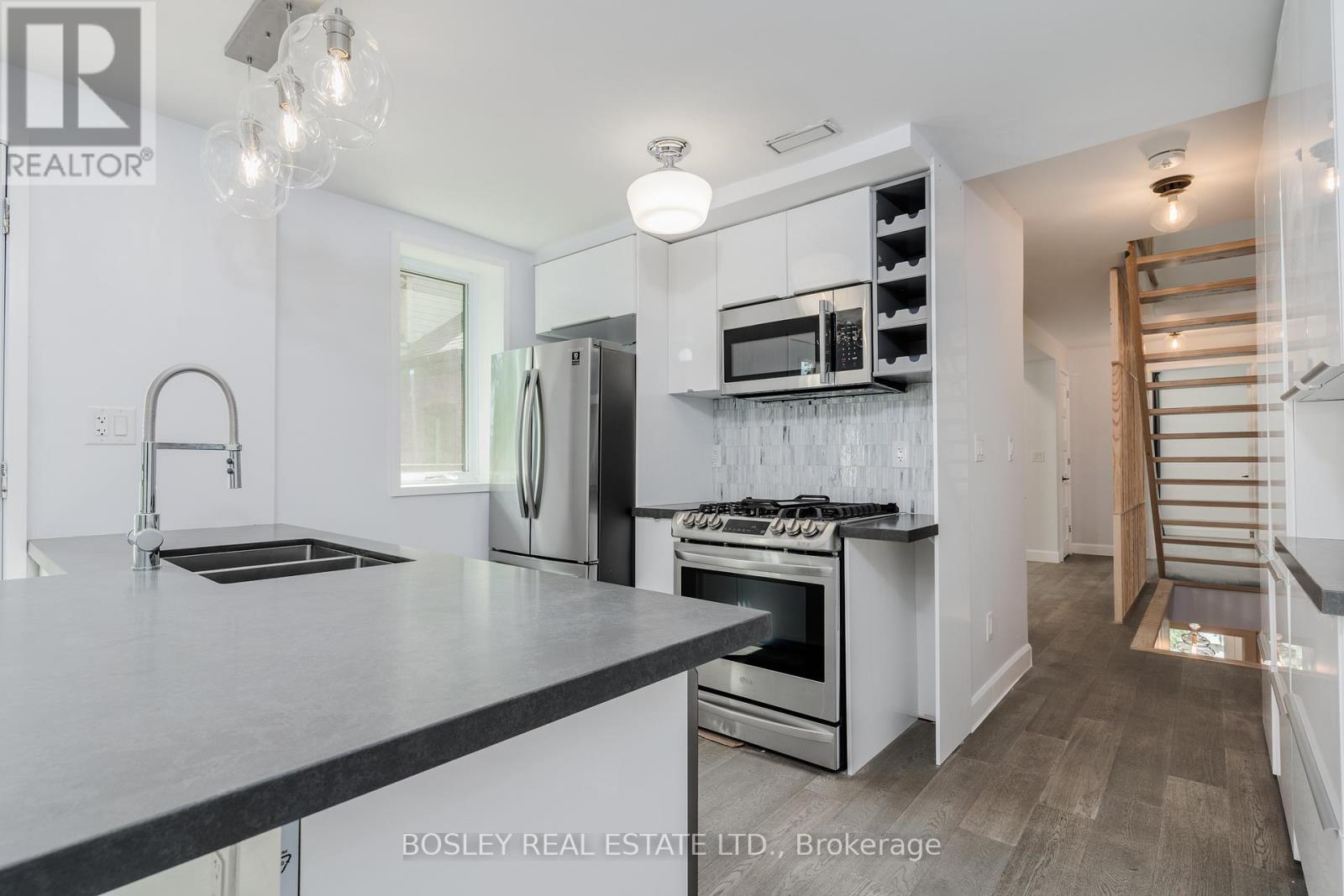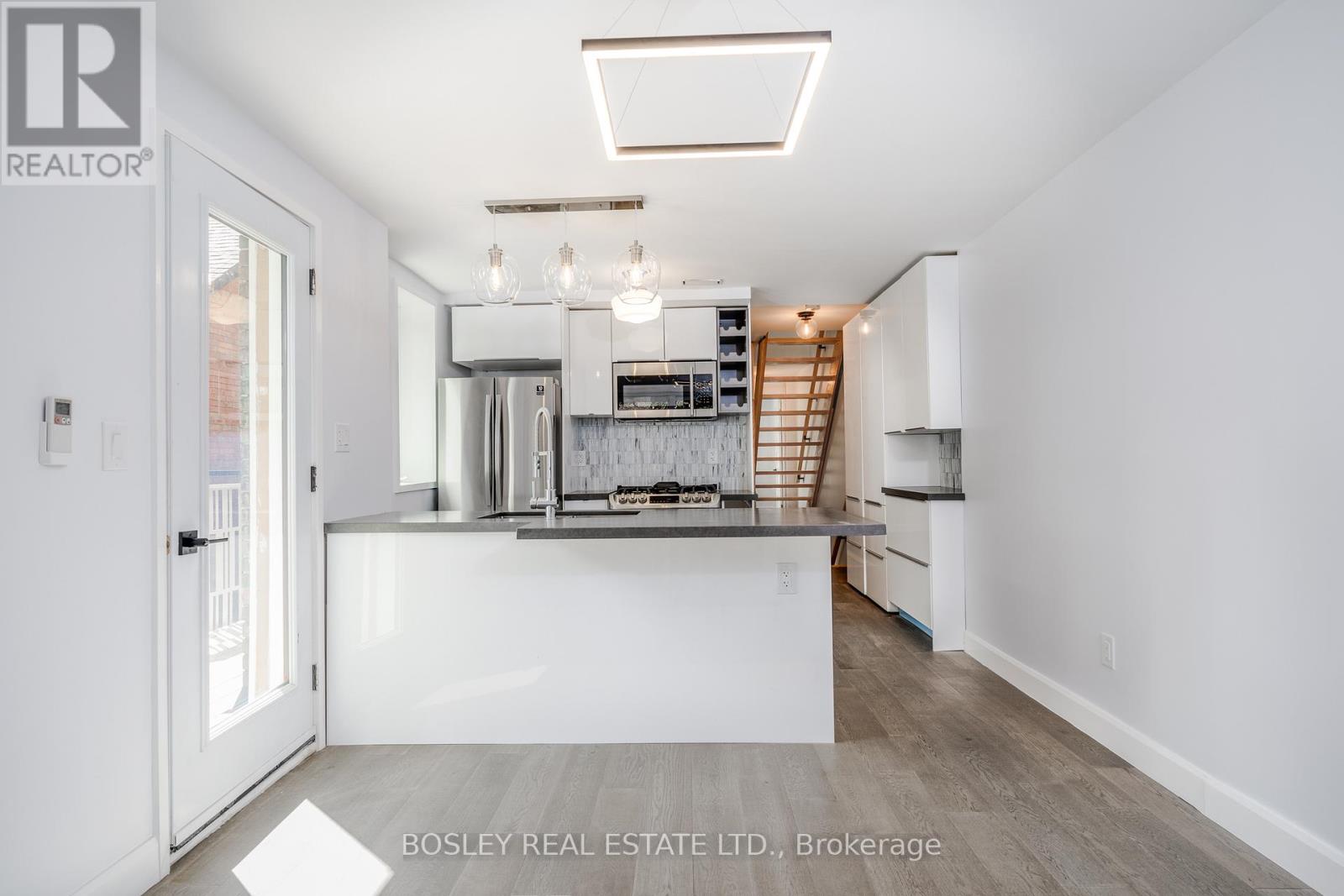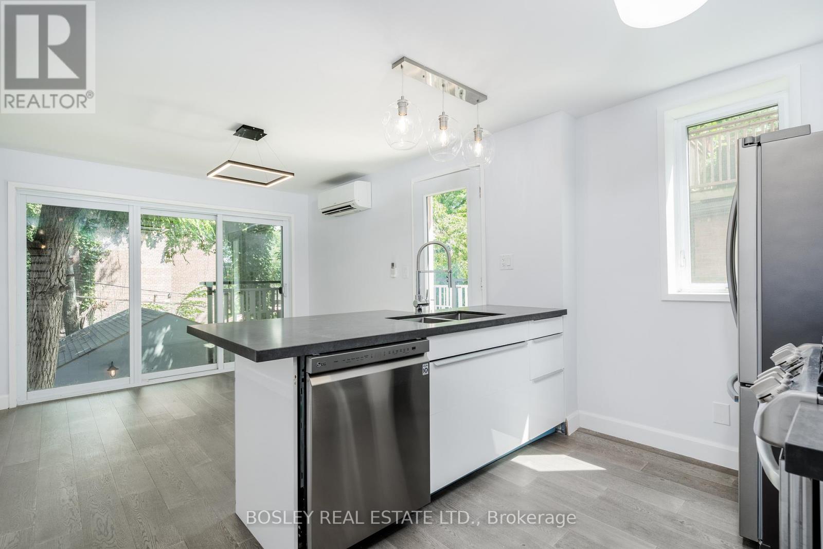 Architecturally designed and masterfully renovated in 2022, this 1,503 sq ft, 2-storey home seamlessly blends clean Scandinavian lines with Mid-Century modern luxury. You'll stay comfortable with 4 Air Conditioning & Heat Pump units (2 per floor),and breathe easier with the Heat Recovery Ventilation (HRV.) Radiant heated floors throughout will keep your feet toasty-warm when it's chilly out. Up the 2nd Floor, the bright eat-in kitchen welcomes the morning sun on two sides, with east-facing floor-to-ceiling windows and Juliette balcony, plus a south-facing walkout balcony. Your inner chef will appreciate the stainless steel gas stove, family-sized fridge, built-in dishwasher and over-the-range microwave oven. The cozy central living room beckons you to relax and unwind, which also walks out to the balcony connected to the kitchen. A lovely 3-piece bath is located next to the living room. At the far end, the primary bedroom is graced by a delightful west-facing bay window to catch the evening sunsets. Up the floating stairs to the 3rd Floor, discover a 4-piece bath with a double sink and shower, a convenient stacked laundry closet in the hall, and two additional bedrooms - perfect for kids, a home office or weekend guests. The lofty open den is the ideal spot to curl up with a book; from the den, walk out the glass balcony doors to a sun-soaked private rooftop terrace. An electric vehicle charger is available and sub-metered to the hydro utility. Parking at the back of the property is available at an additional $100 (ideal for smaller vehicles, not over-sized SUVs.) Steps away to Kew Gardens, Kew Beach, the Boardwalk, Schools, Recreation Centre, Library, and all of the vibrant shops, cafés & restaurants along Queen Street. This culturally rich, beachside neighbourhood offers a peaceful residential setting, with quick & easy access to the to the city's busy downtown core. This is it, come live your best life by the beach! (id:64974)