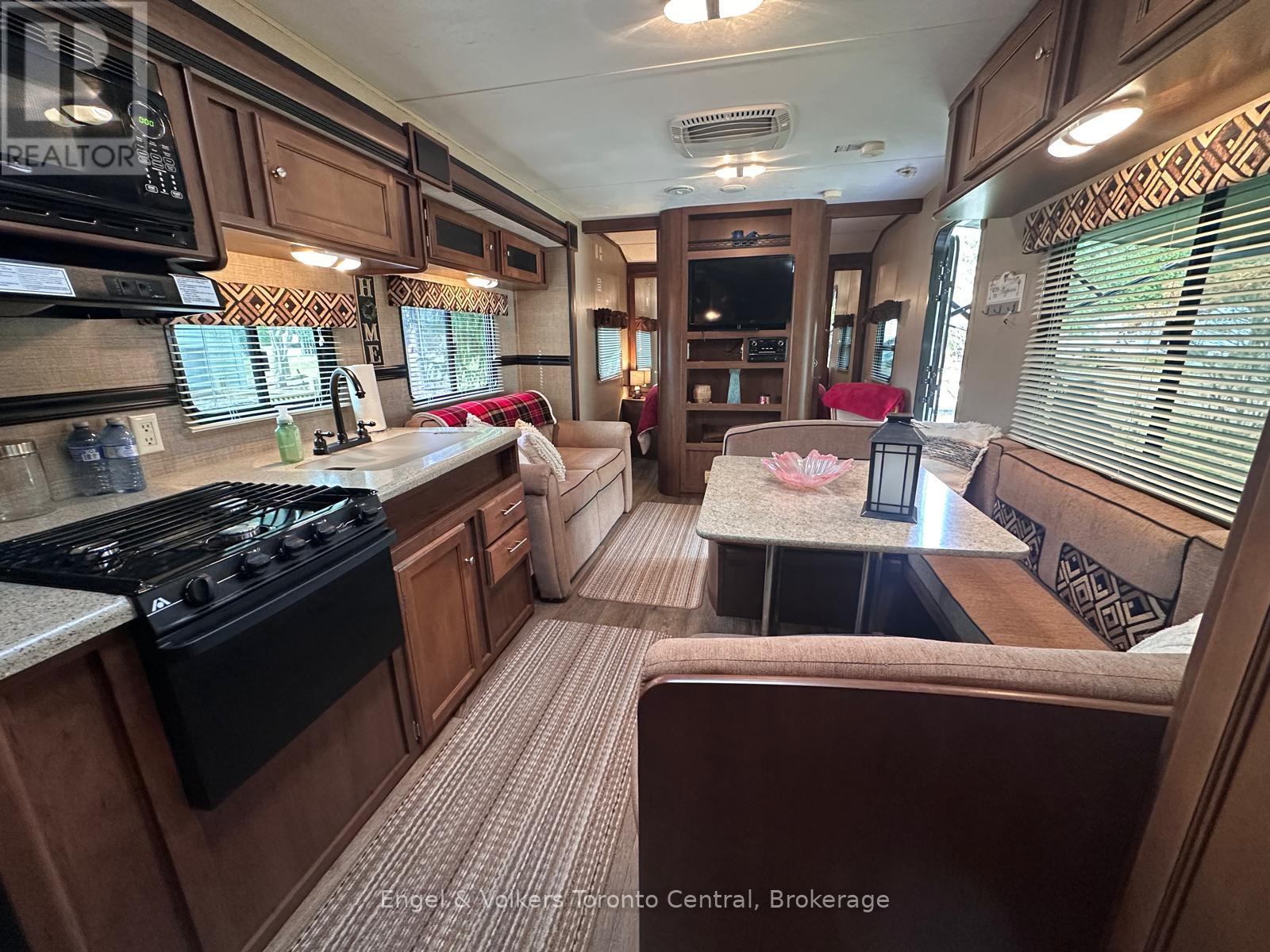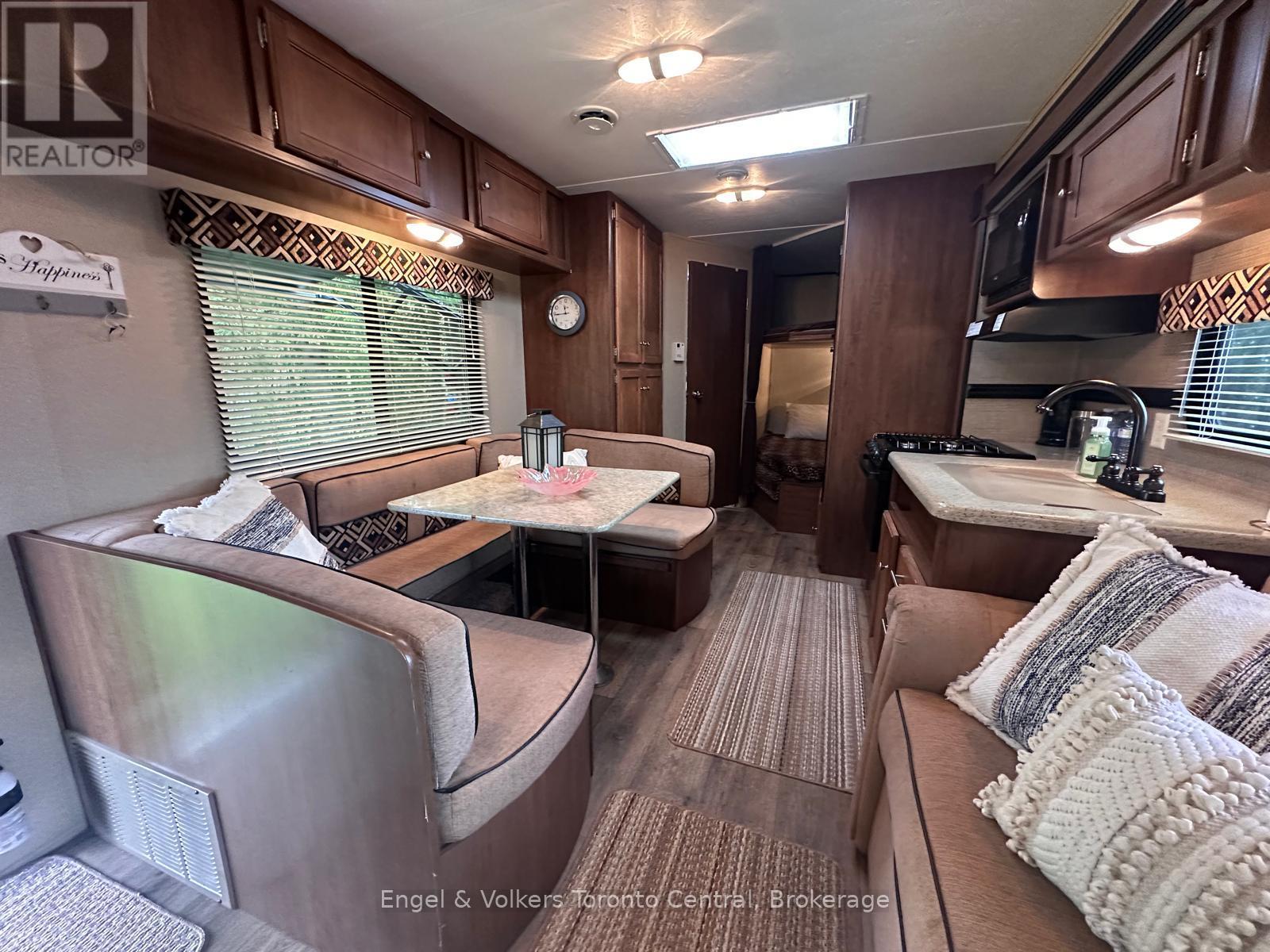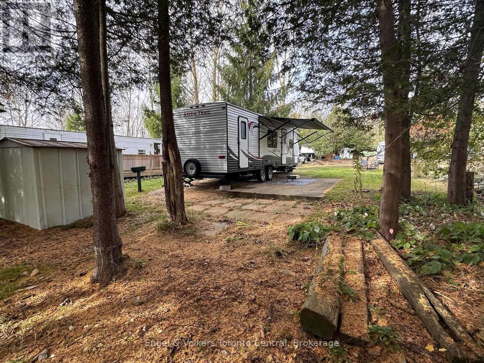 Don't miss out on this fantastic 2015 Aspen Trail AT2 model trailer located in SEASONAL ParkBridge Spring Valley Resort! Perfect for first-time buyers or anyone looking to upgrade their camping experience, this spacious 1 1/2-bedroom model offers much more room than you'd expect. The trailer features a private primary bedroom and a cozy nook with full-sized single bunk beds, making it ideal for families or hosting guests. The open layout maximizes living space and offers a large horseshoe dining table and a pull-out couch for extra sleeping space, creating a comfortable area for relaxing and entertaining. Situated on an oversized lot that backs onto a scenic forest, this property provides a private outdoor setting with a concrete patio, a new Weber BBQ, a firepit, and a handy storage shed for all your camping gear. Located in the popular Parkbridge Spring Valley Resort, the park is open from the second weekend in May to the third weekend in October, giving you plenty of time to enjoy the amenities and nearby nature. Parkbridge Spring Valley Resort is packed with amenities to enhance your stay, including two pools (one for adults and one for families), a mini-putt course, a horseshoe club, and a sandy lake beach/swimming lake with volleyball and basketball courts. For social gatherings and events, there's a recreation hall with activities geared to both children and adults. Don't wait; call to schedule your viewing today and be ready for your summer! The fees for the 2026 season are $4,765.00. Note: Includes everything but your propane, hydro, and Internet if you choose to install it. There are no additional fees for water, property, taxes, visitors to the resort, etc. (id:64974)