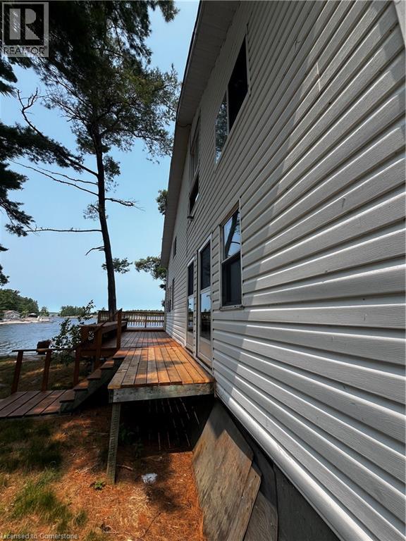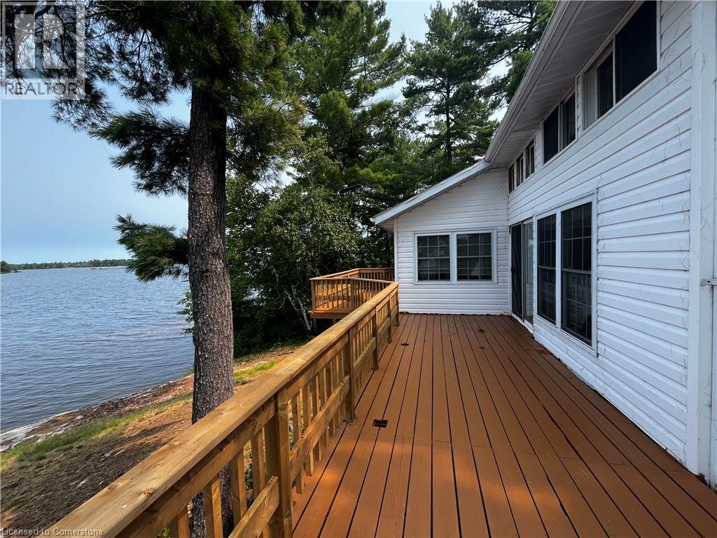 Welcome to your Piece of Paradise This beautiful Island and gorgeous 2 story home is nestled in a quiet Bay on the West End of Lake Nipissing. This home has 5 separate entries which is located high on the island with a sensational view of Mid West Bay on Lake Nipissing. The 3 bedrooms are wonderful for any size family or guests and enjoy your mornings or evenings in your own screened in sunroom. The main floor has a wonderful wood burning fireplace for those colder evenings. The wrap around deck has been recently renovated and the metal roof and elevated block foundation means little maintenance. This home is powered by Solar Energy and Propane and has an efficient Holding Tank. Enjoy the beauty of Lake Nipissing and all the water activities suited for your family. Only 3.5- 4 hour drive to the GTA. This home is ready for occupancy, but could use further refinements if desired. (id:64974)