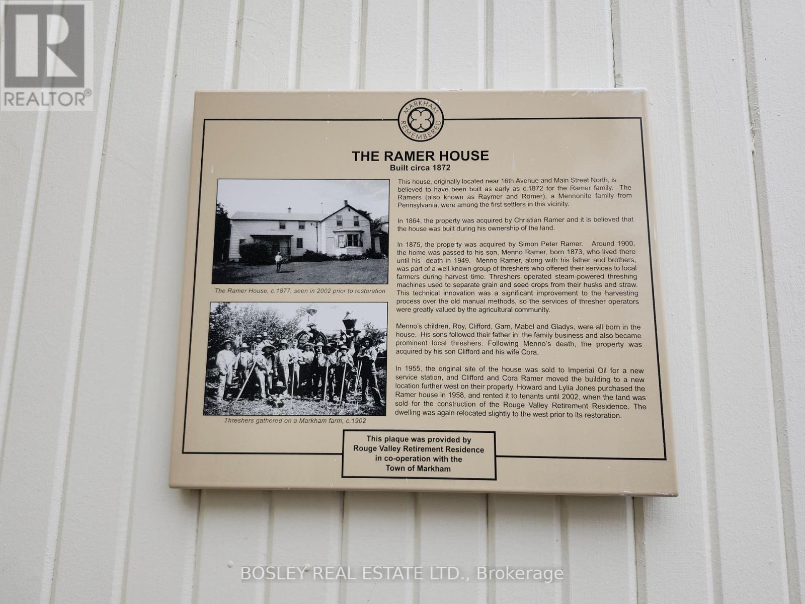 Welcome to a truly one-of-a-kind residence in the historic The Ramer House-an exquisitely restored heritage property that blends timeless elegance with modern luxury.This newly renovated suite is filled with natural light, highlighting the home's character and refined finishes. The spacious living room offers a warm and inviting setting, perfect for both relaxing and entertaining.The bedroom provides a comfortable and peaceful retreat, while brand new appliances add a sleek, contemporary touch to the thoughtfully updated interior.Ideally situated at 16th Avenue and Markham Road, this exceptional home offers both charm and convenience, with easy access to shops, transit, and everyday essentials.A rare opportunity to live in a distinguished heritage setting unlike anything else on the market. Utilities and 1 parking included. Come check it out-you'll fall in love with it. (id:64974)